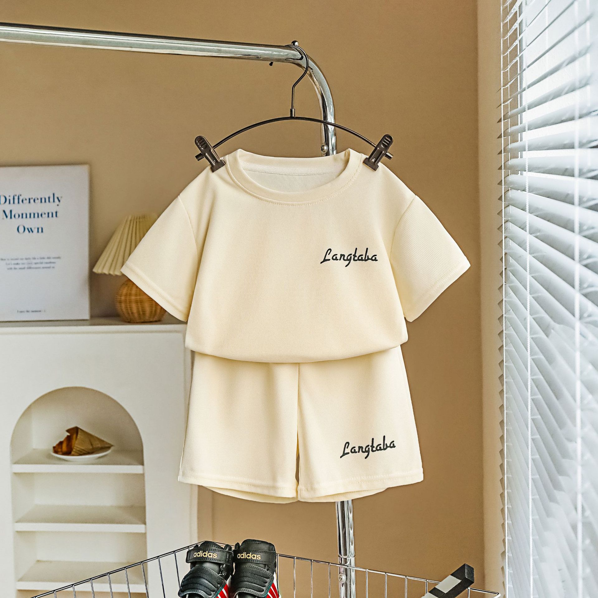 어린이 여름 세트 새로운 반팔 투피스 스포츠웨어 소년 캐주얼 느슨한 한국 아동복 제조 업체 도매스토어 가기