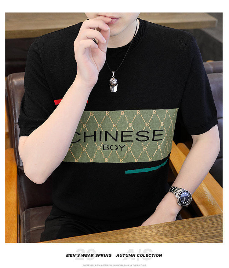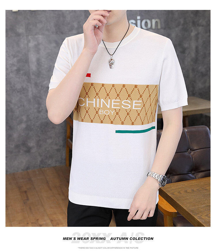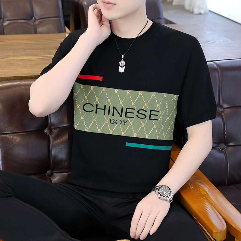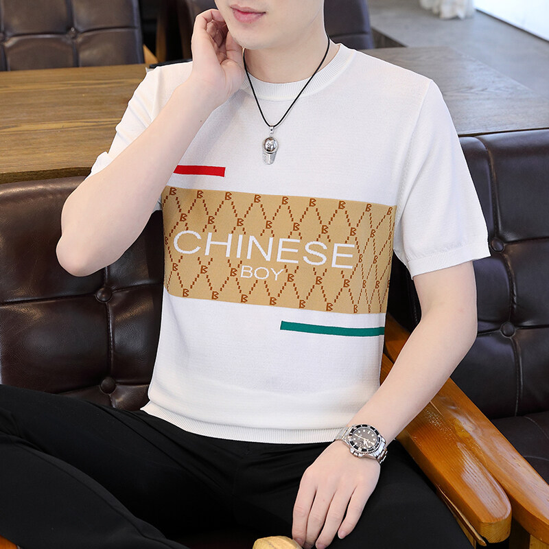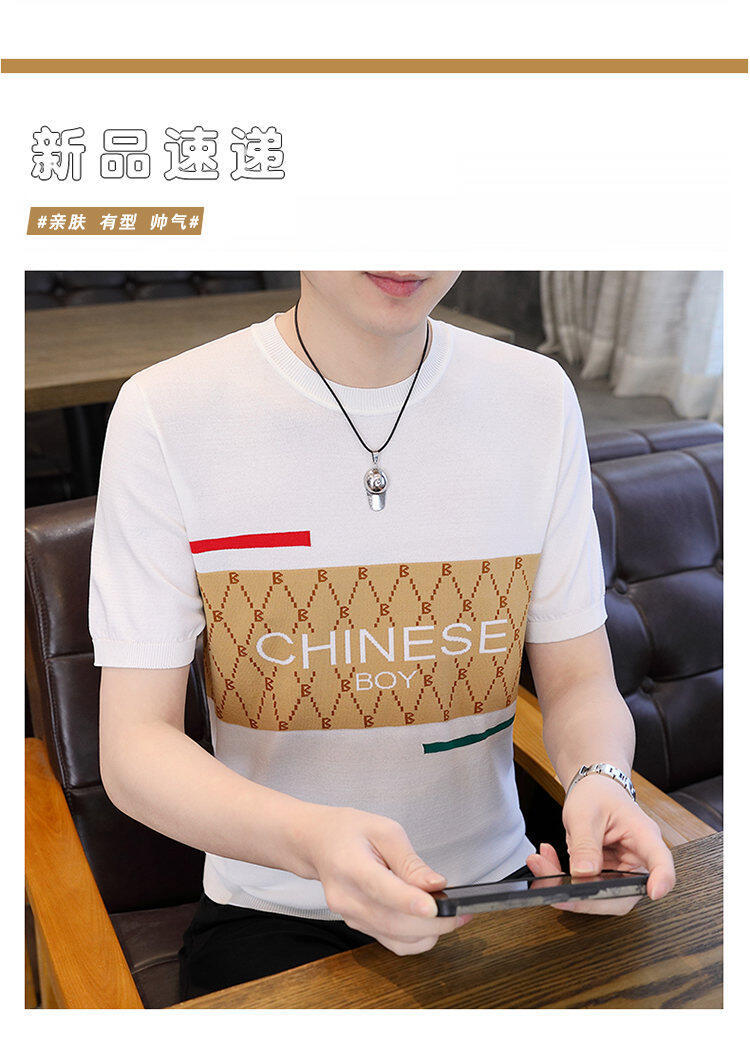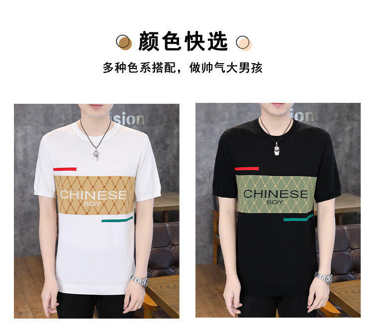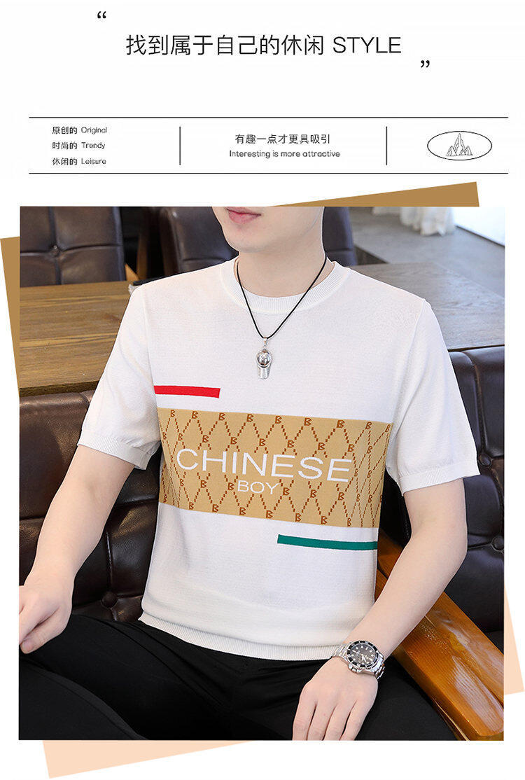 국경 간 대외 무역 AliExpress 새로운 남성 여름 티셔츠 새로운 니트 빙글 리넨 라운드 넥 반팔 티셔츠 남성용스토어 가기