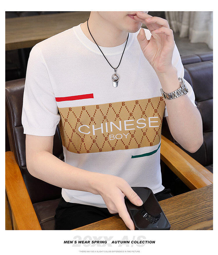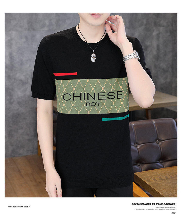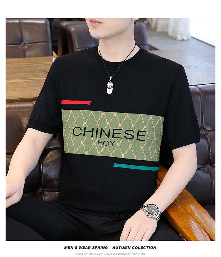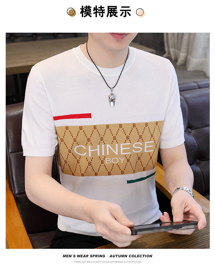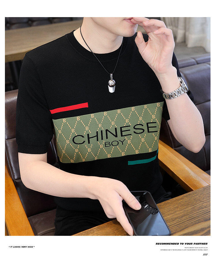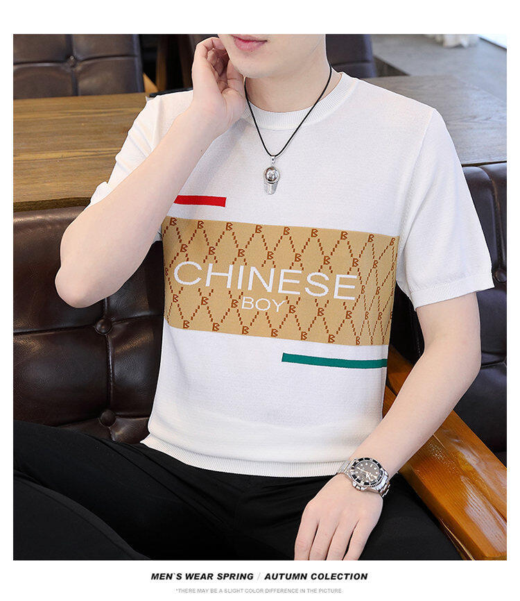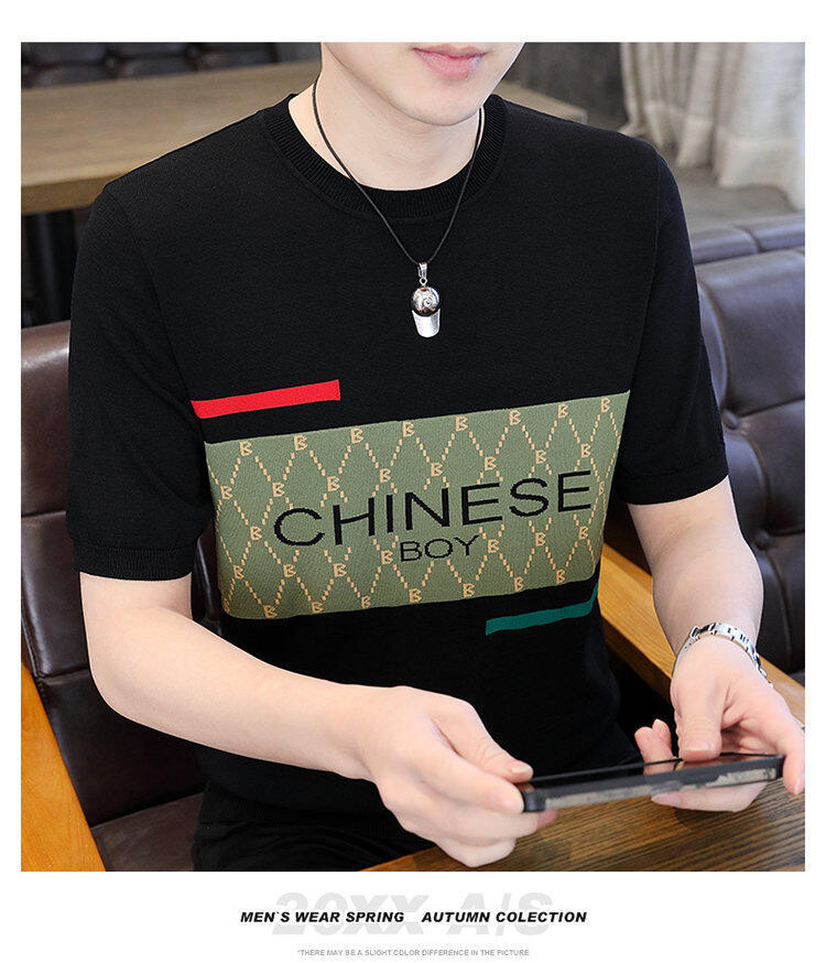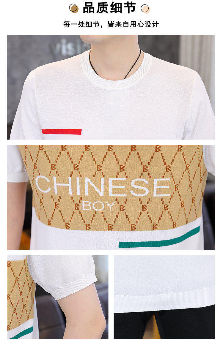 국경 간 대외 무역 AliExpress 새로운 남성 여름 티셔츠 새로운 니트 빙글 리넨 라운드 넥 반팔 티셔츠 남성용스토어 가기