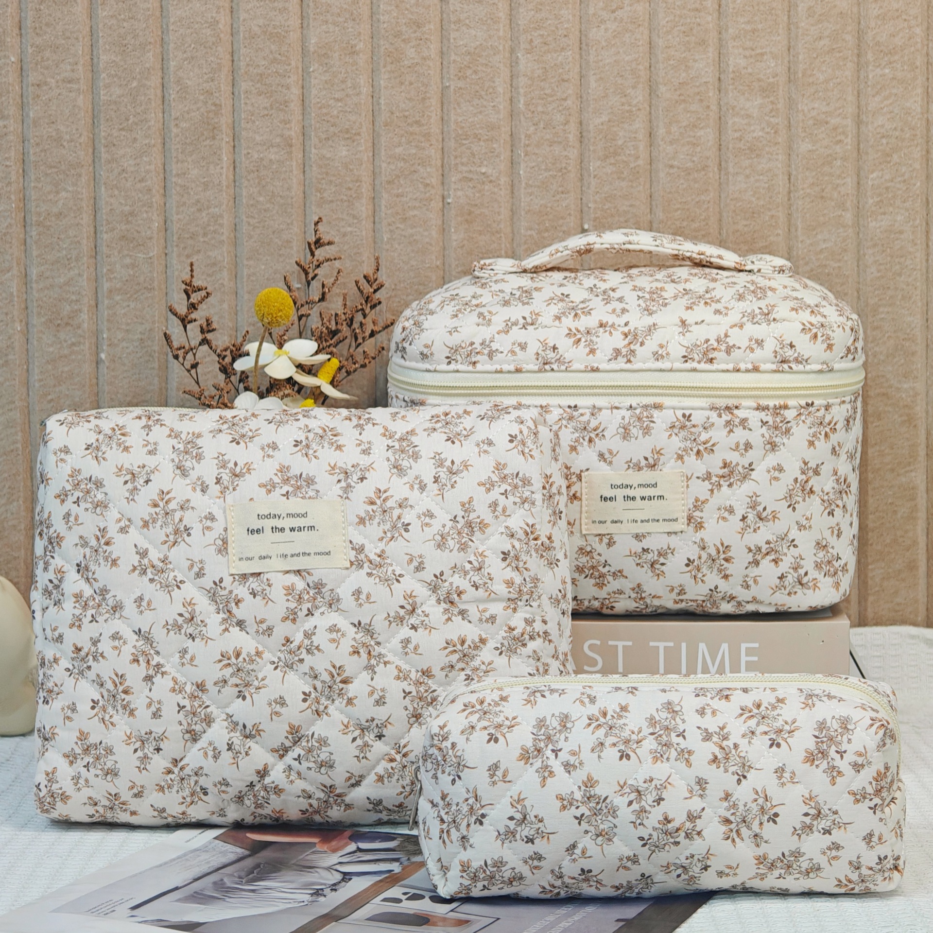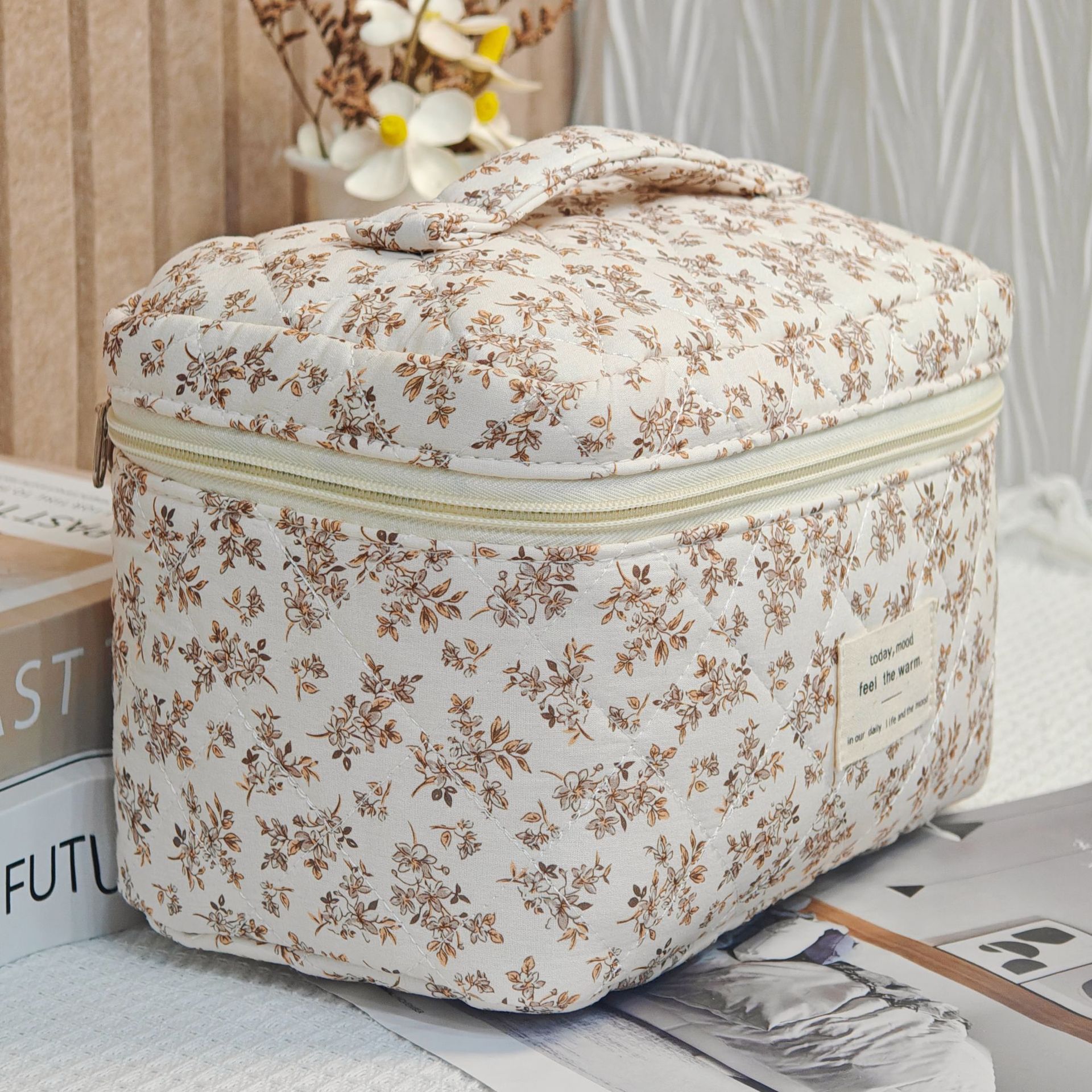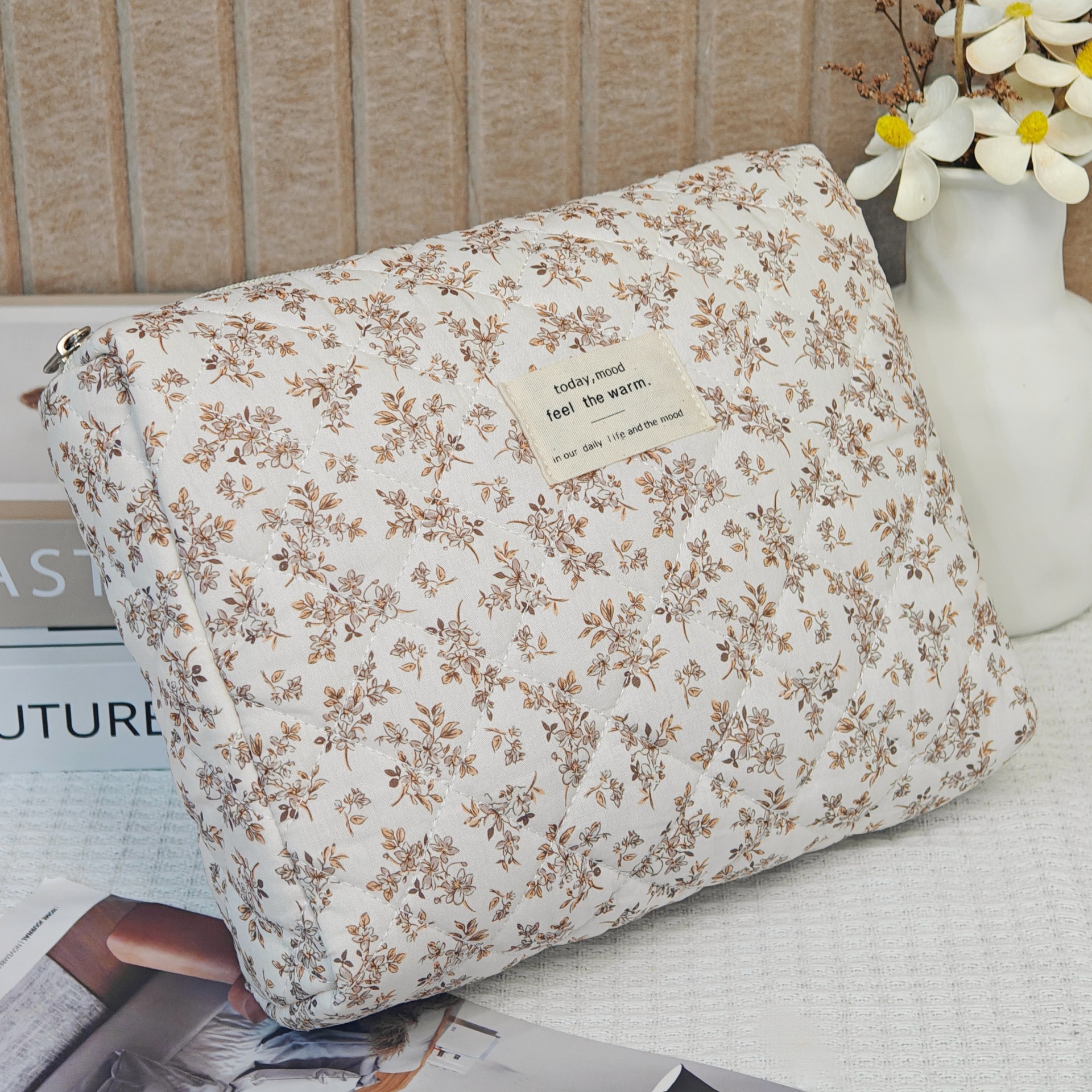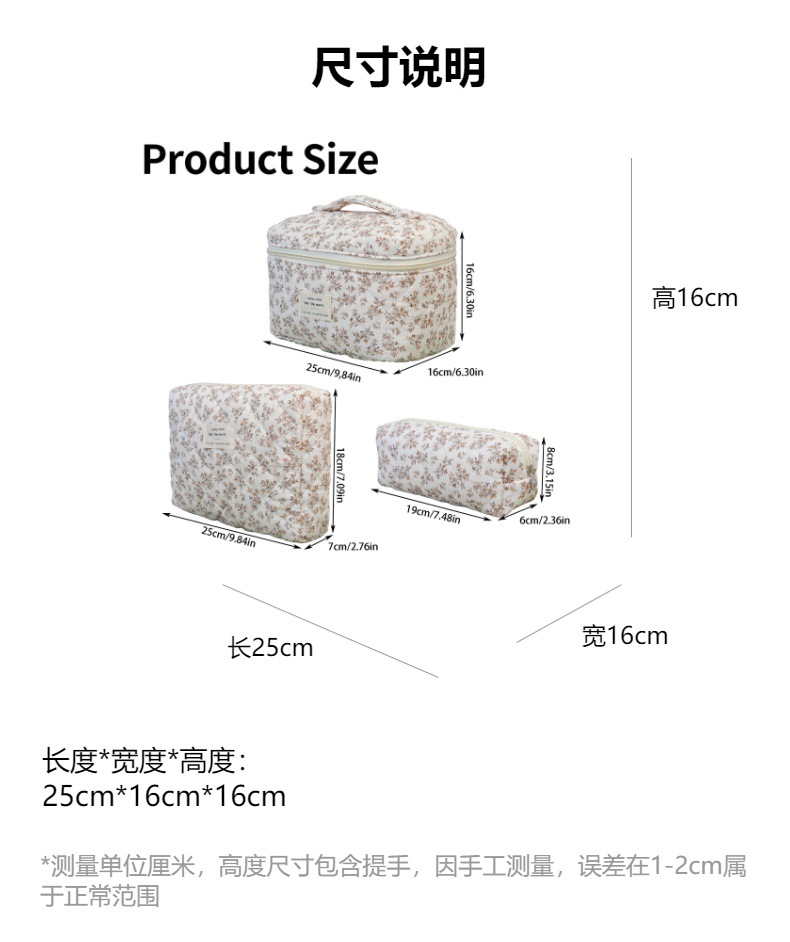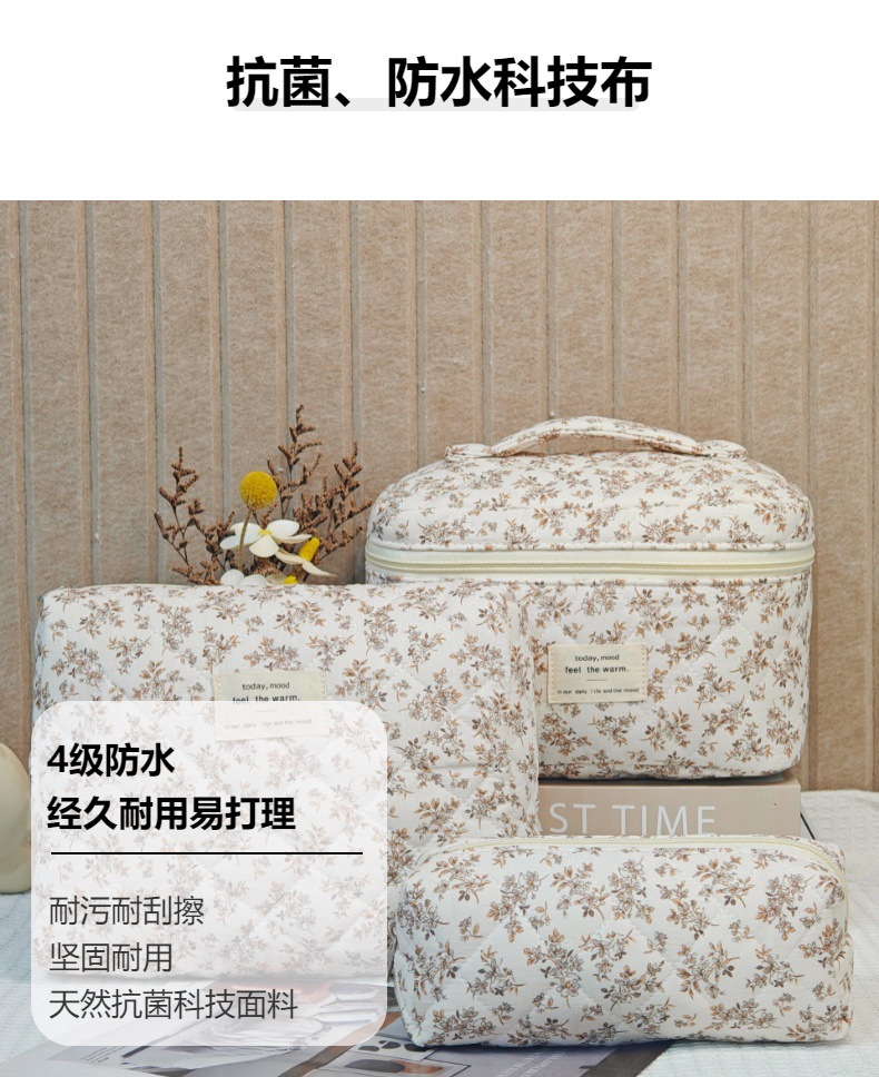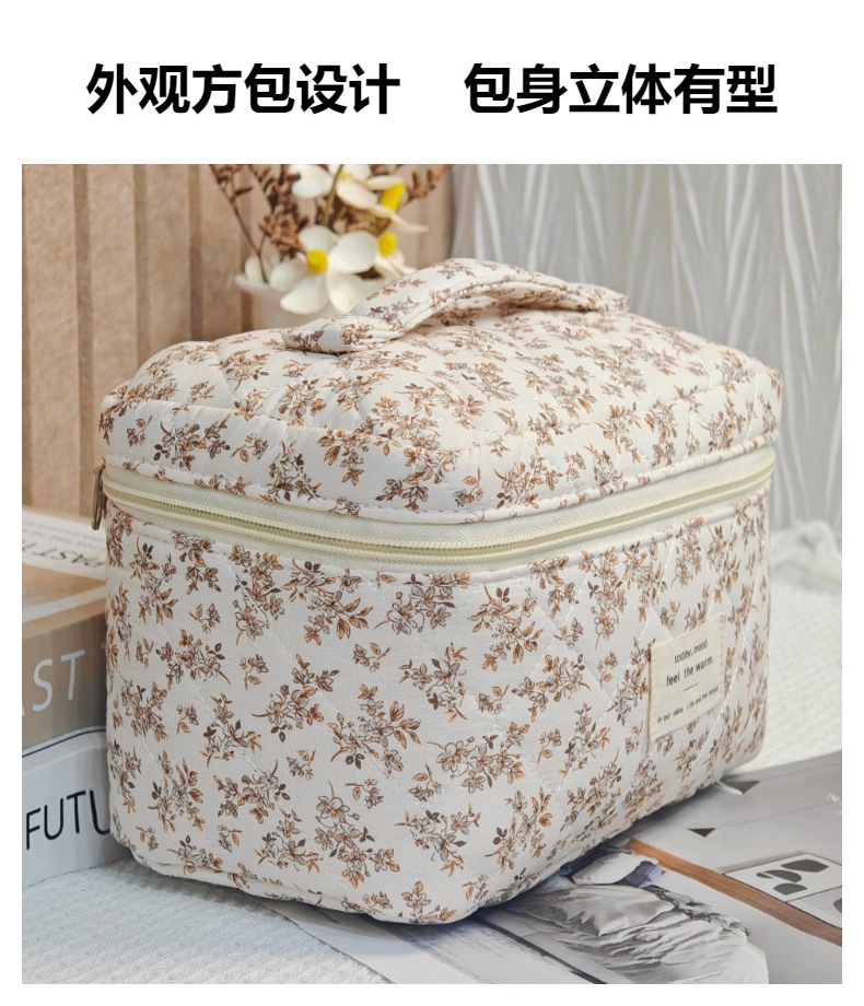 면 화장품 가방 여행 대용량 저장 가방 학생 작은 꽃 일본식 및 한국식 휴대용 퀼트 면화 가방