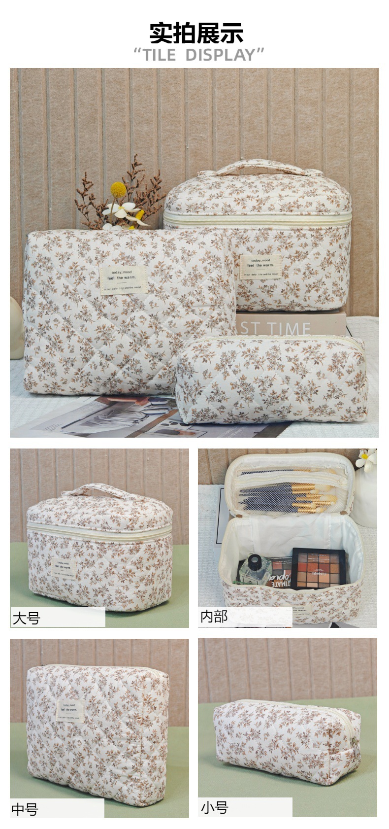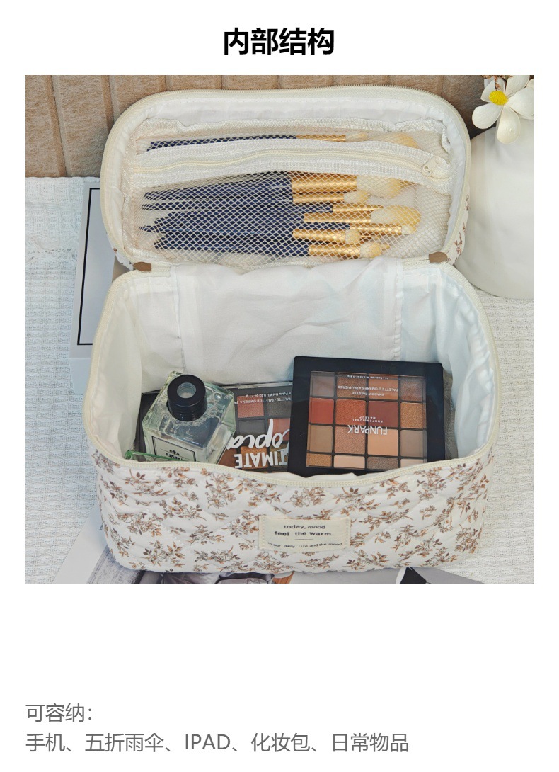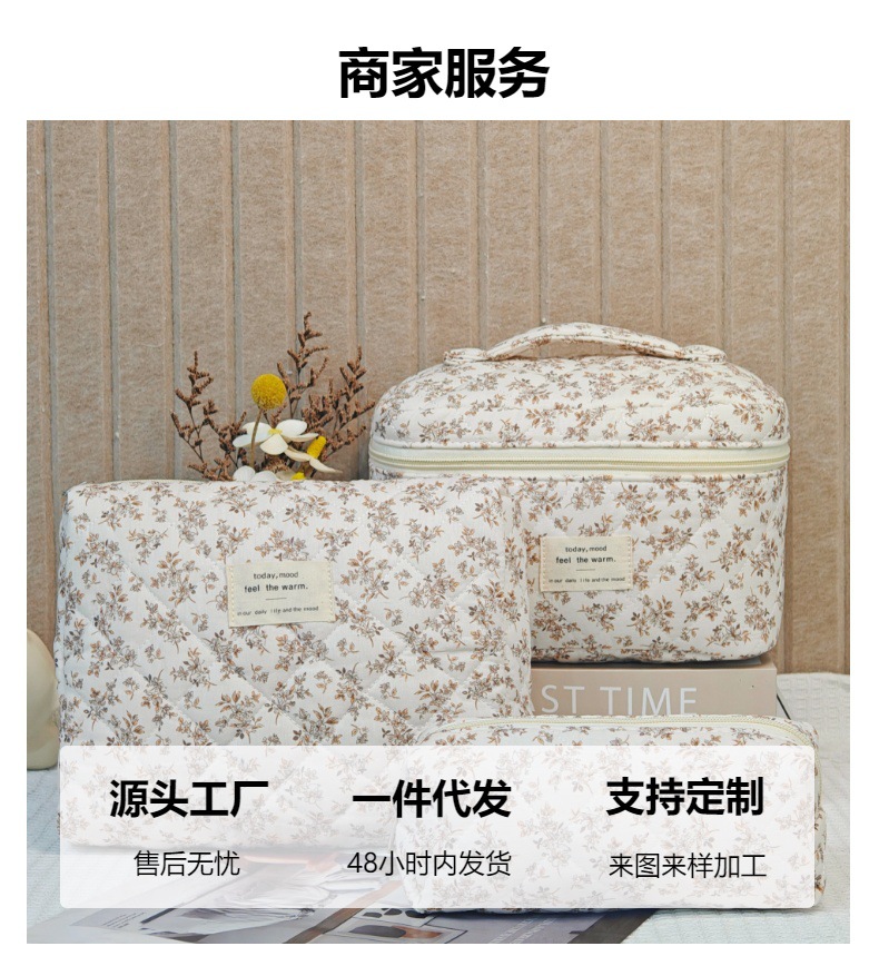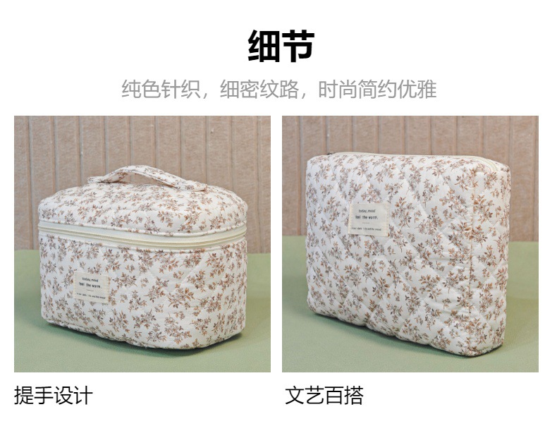 면 화장품 가방 여행 대용량 저장 가방 학생 작은 꽃 일본식 및 한국식 휴대용 퀼트 면화 가방스토어 가기
