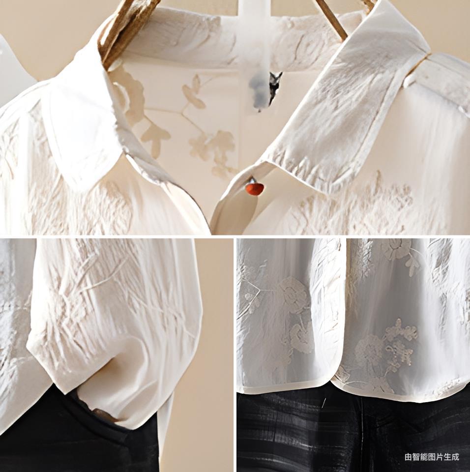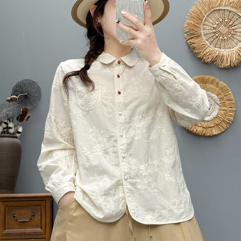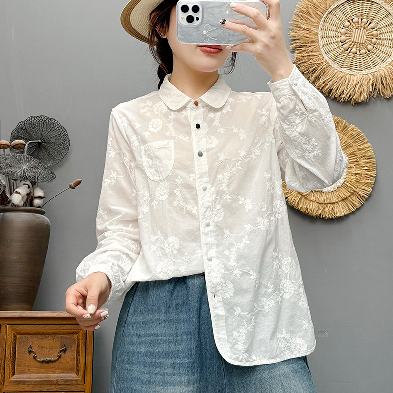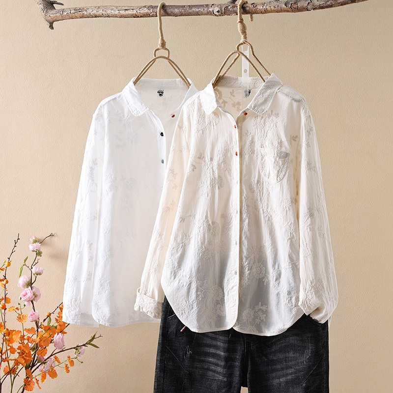 프랑스 스타일 예술적 자수 긴 소매 셔츠 여성의 봄과 가을 새로운 느슨한 올매치 스택 셔츠 캐주얼 탑