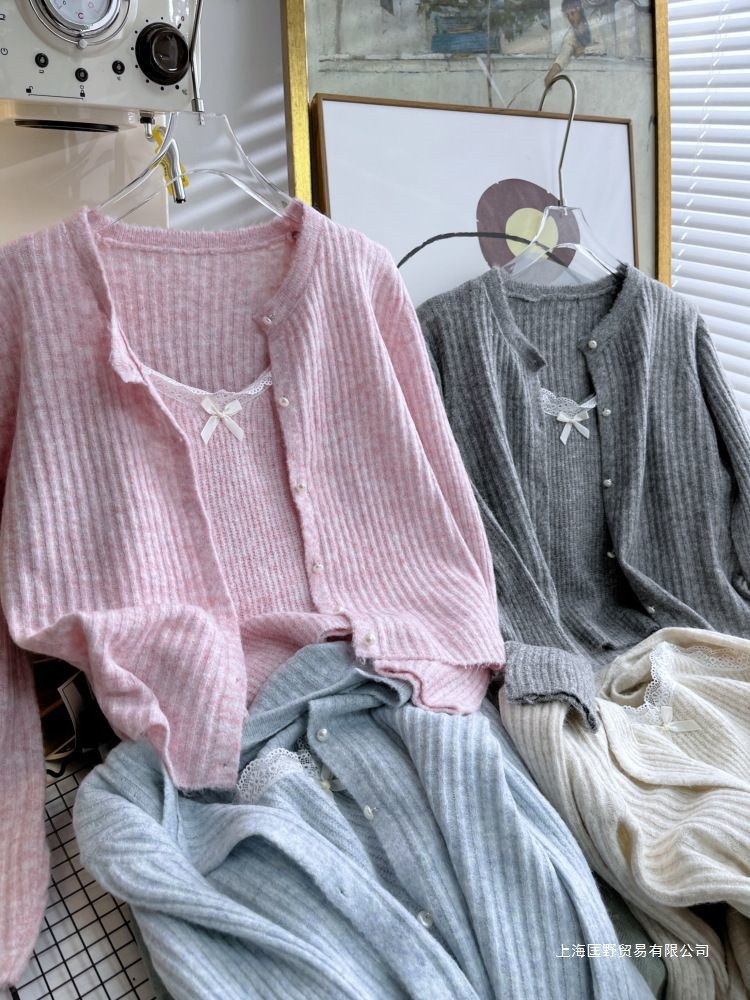 달콤한 활 니트 카디건 여성 2025 가을 새로운 슬림 핏 슬리밍 카미 솔 투피스 가을 4709스토어 가기