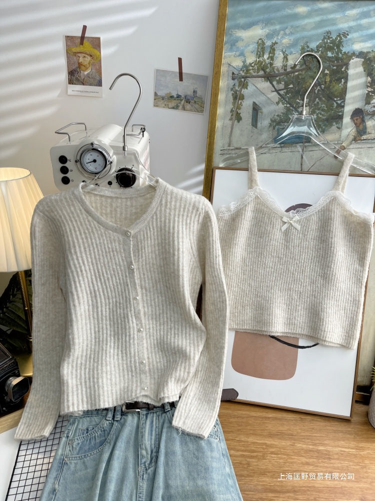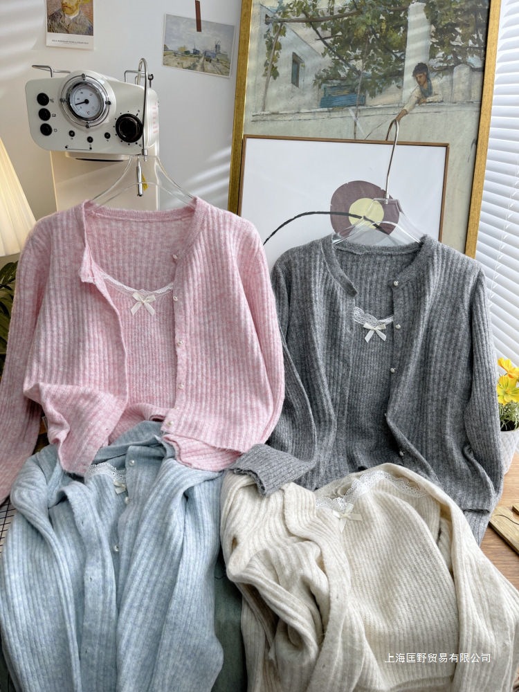 달콤한 활 니트 카디건 여성 2025 가을 새로운 슬림 핏 슬리밍 카미 솔 투피스 가을 4709