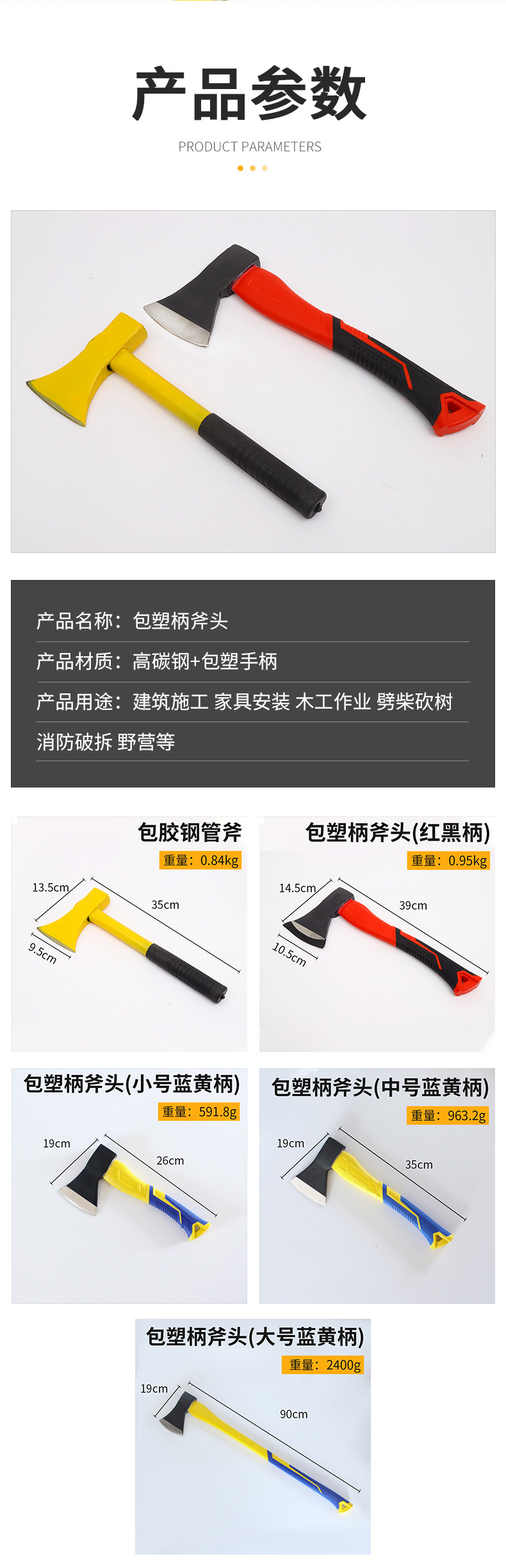 • 플라스틱 손잡이가 있는 도끼(중형 파란색 및 노란색 손잡이) {개당 40개}