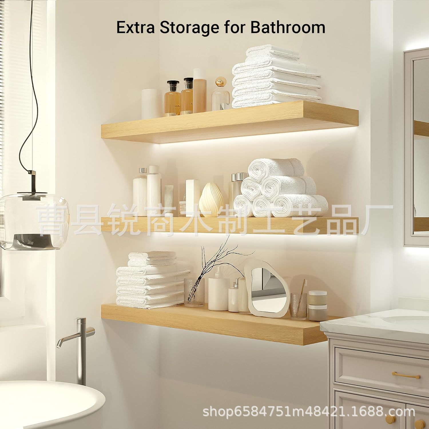 나무 벽 플로팅 파티션 랙 간단한 벽 장착 스토리지 랙 욕실 수건 화장실 보관 랙