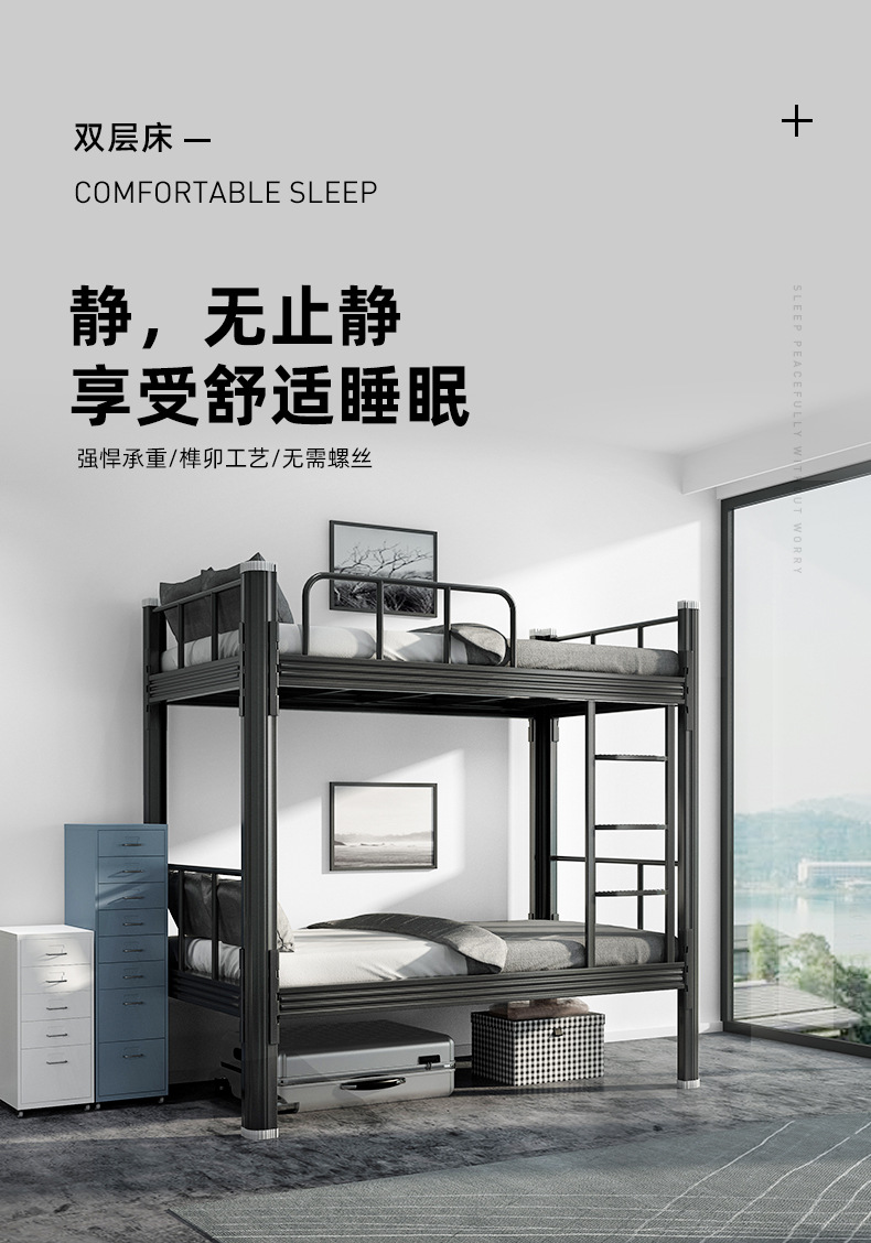 상하 이층 침대 학생 기숙사 이층 침대 직원 기숙사 높고 낮은 철 프레임 침대 성인 아파트 침대 철 더블 침대스토어 가기