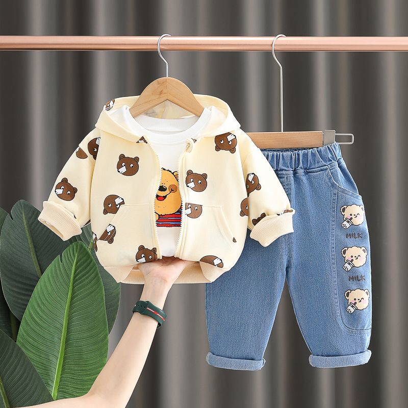 소년 아기 가을 세트 3 피스 세트 2025 새로운 아동복 아기 옷 어린이 코트 외국식 유행 조끼