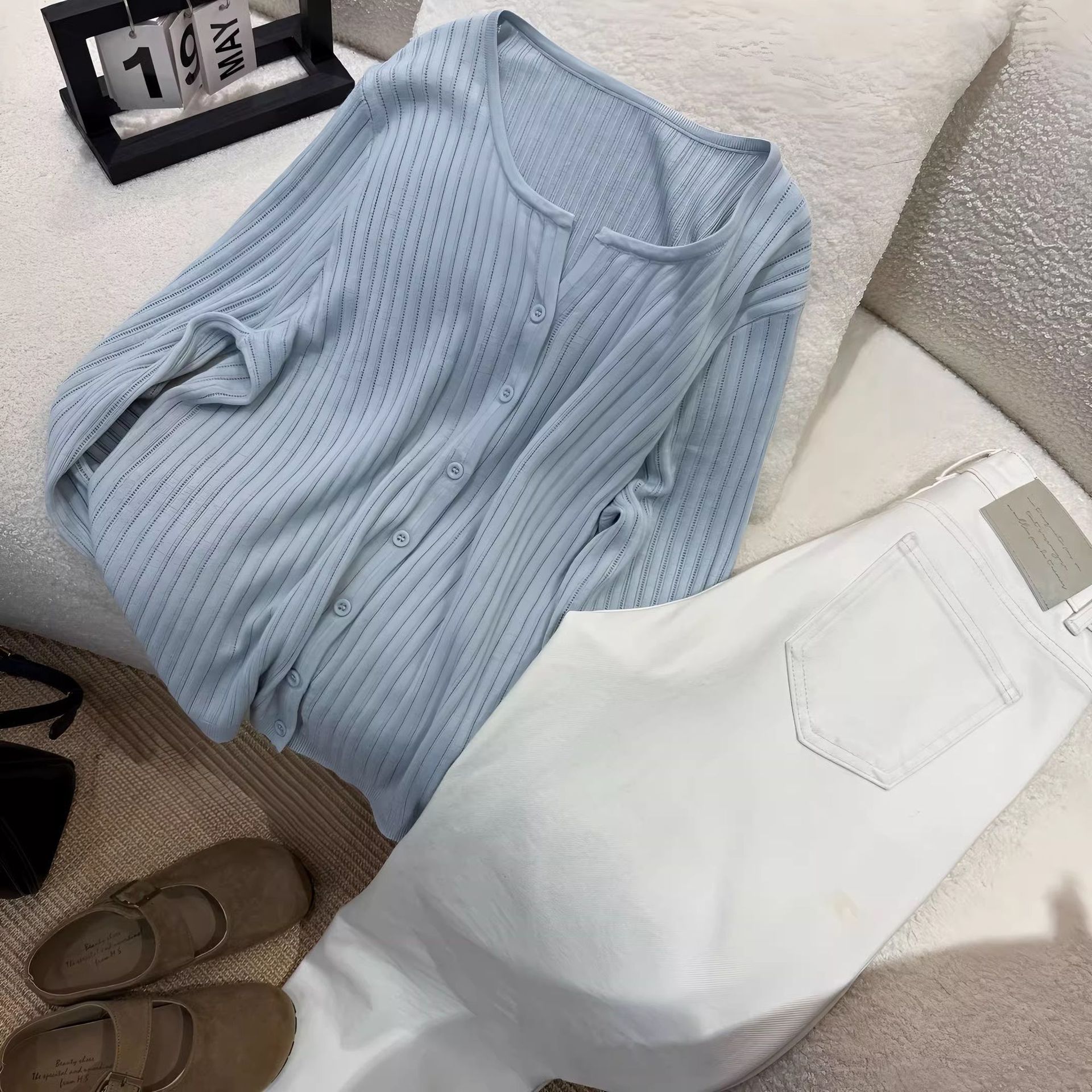 2025 새로운 부드러운 지적 한국 스타일 가위 칼라 디자인 긴팔 니트 가디건 여성 봄스토어 가기