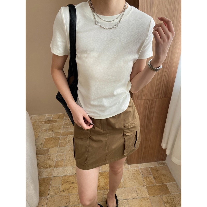 신안 종이 사람 작은 남자 허리 디자인 주름 허리 슬림 어깨 승무원 목 짧은 소매 티셔츠 SN7263스토어 가기