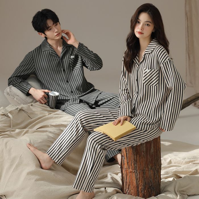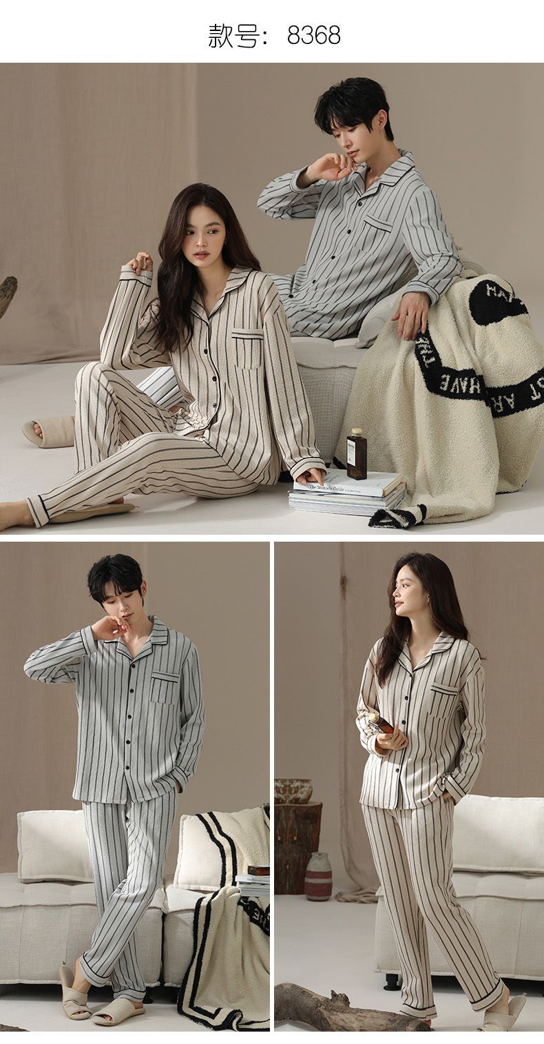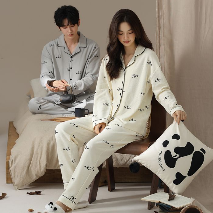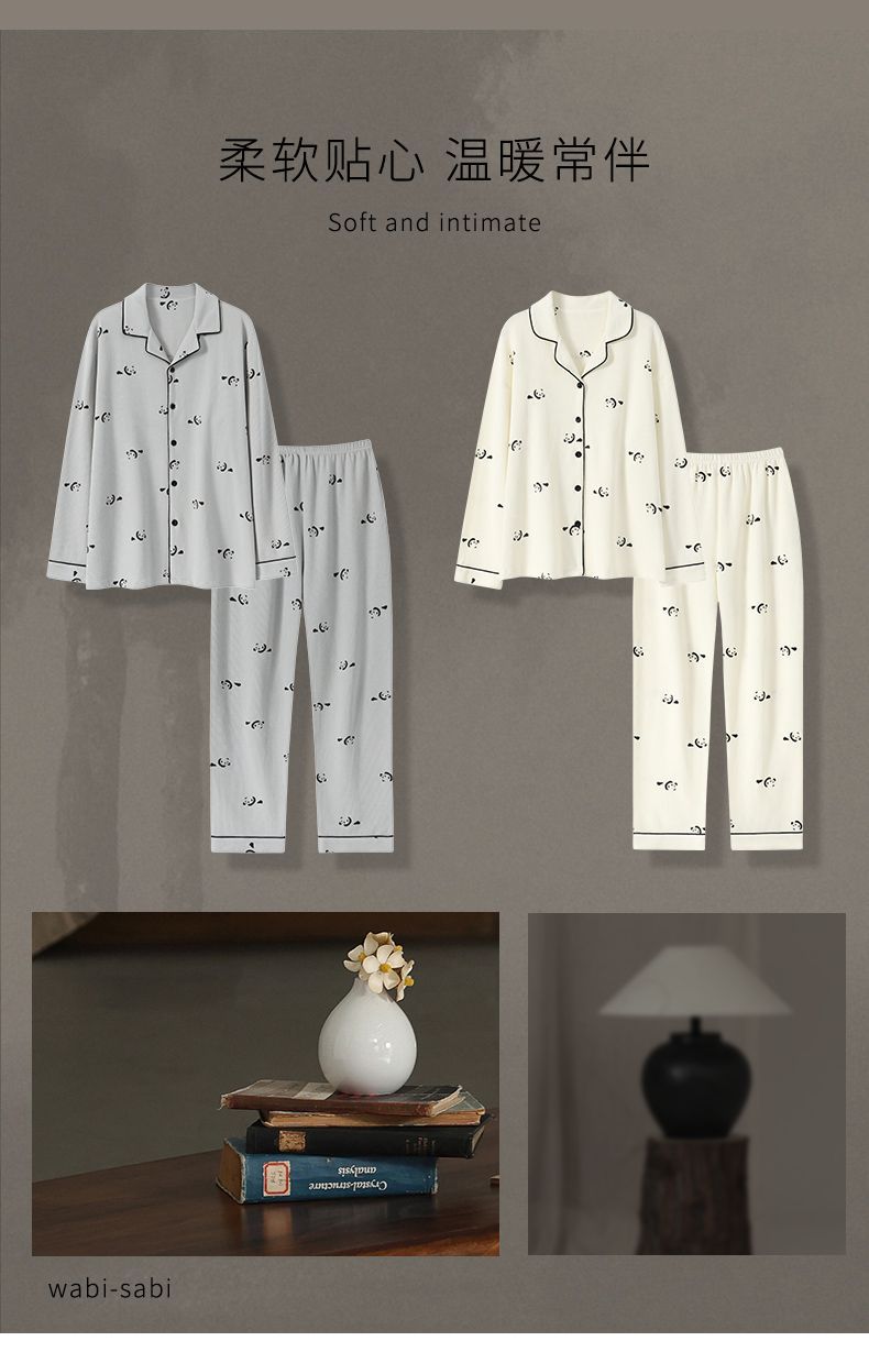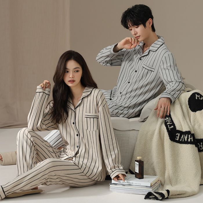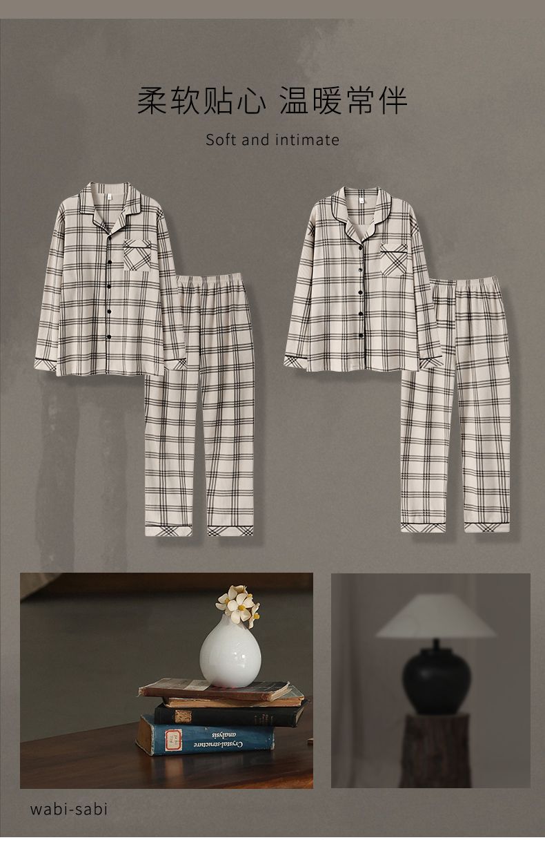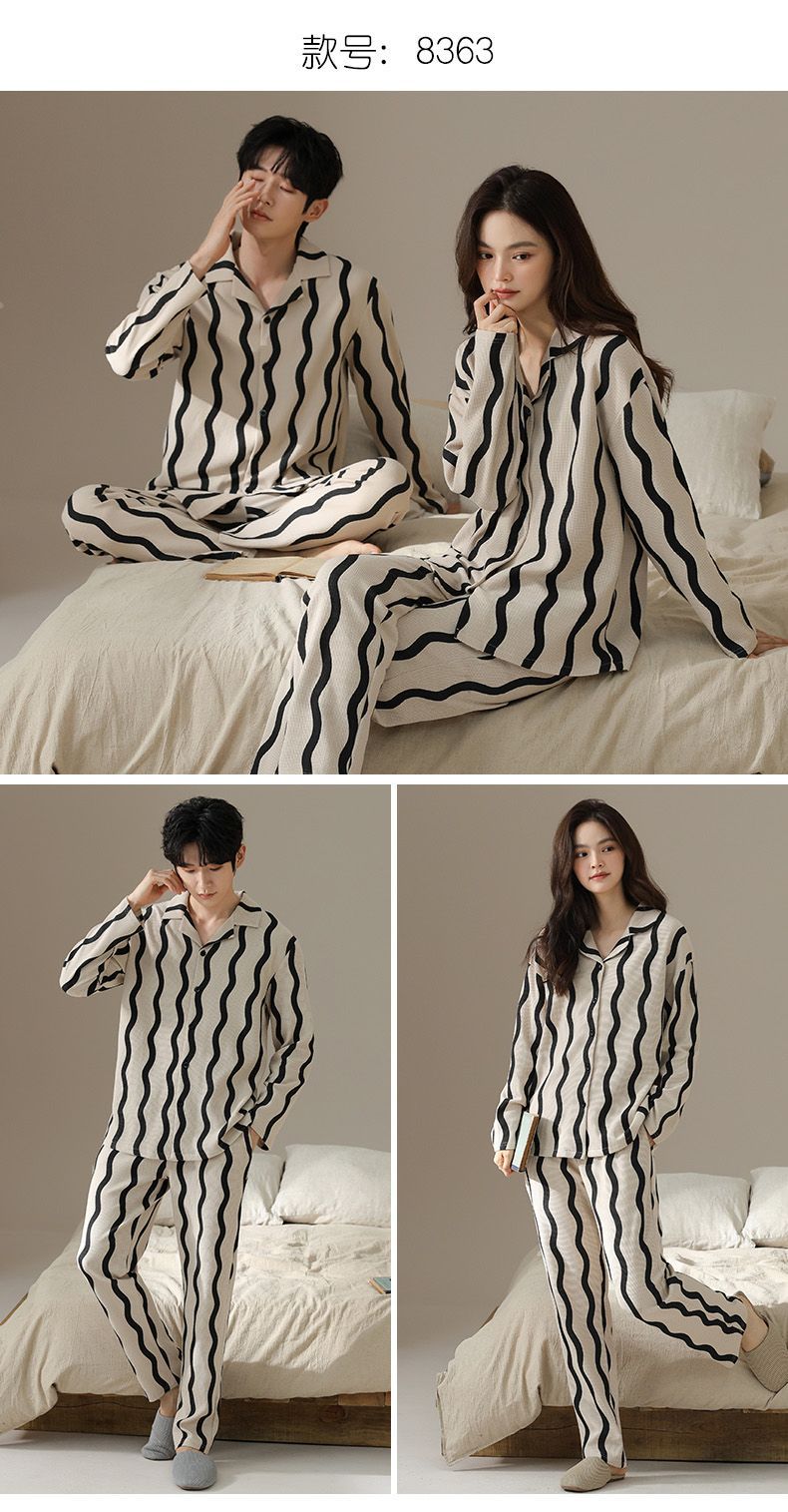 남성과 여성을위한 와플 퓨어 코튼 파자마 긴팔 부드러운 피부 친화적 인 봄과 가을 하이 엔드 커플 홈 의류 세트