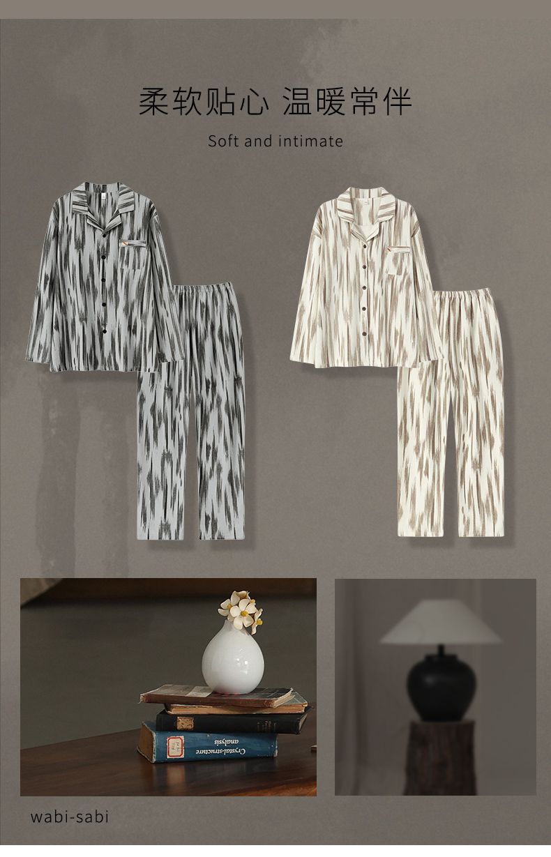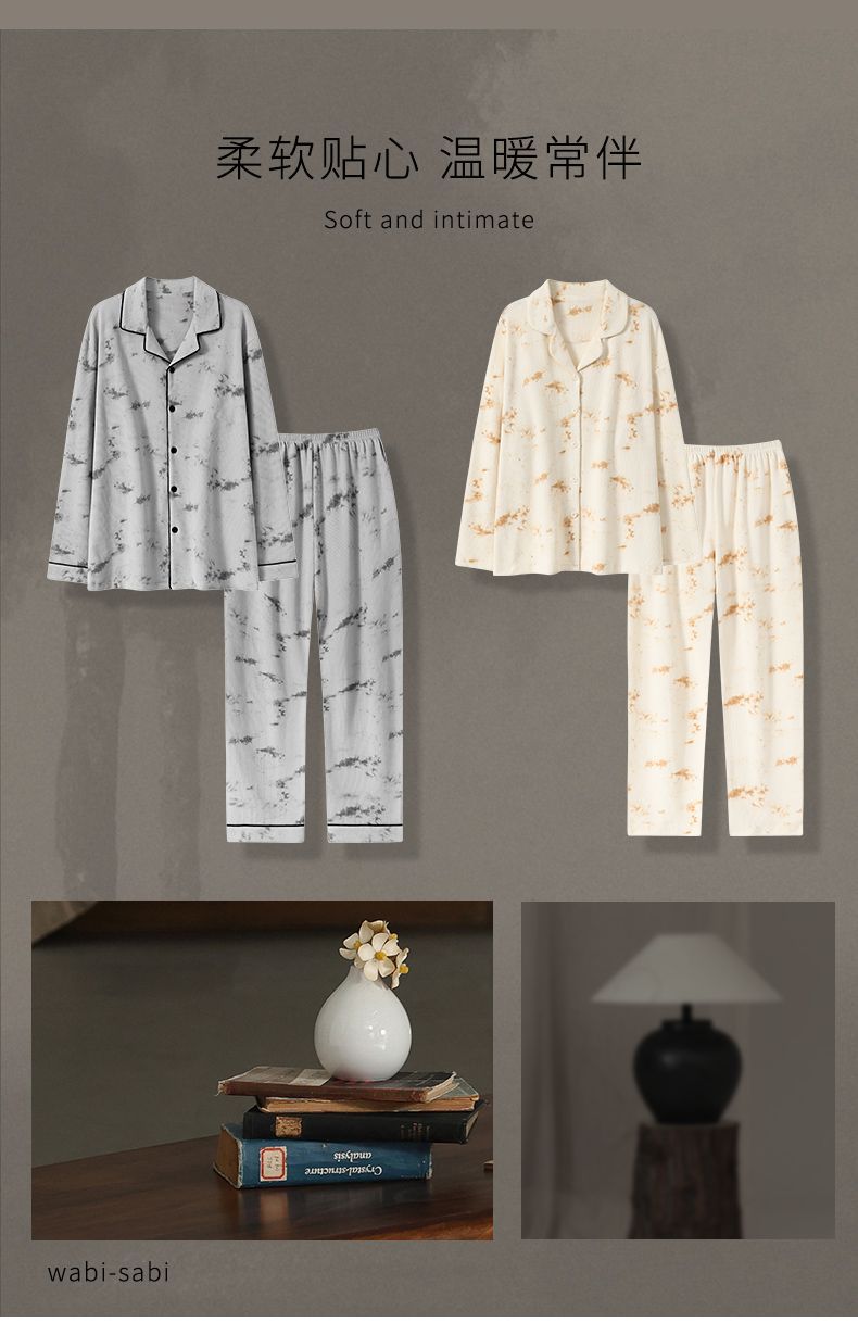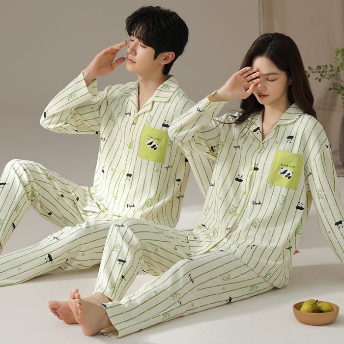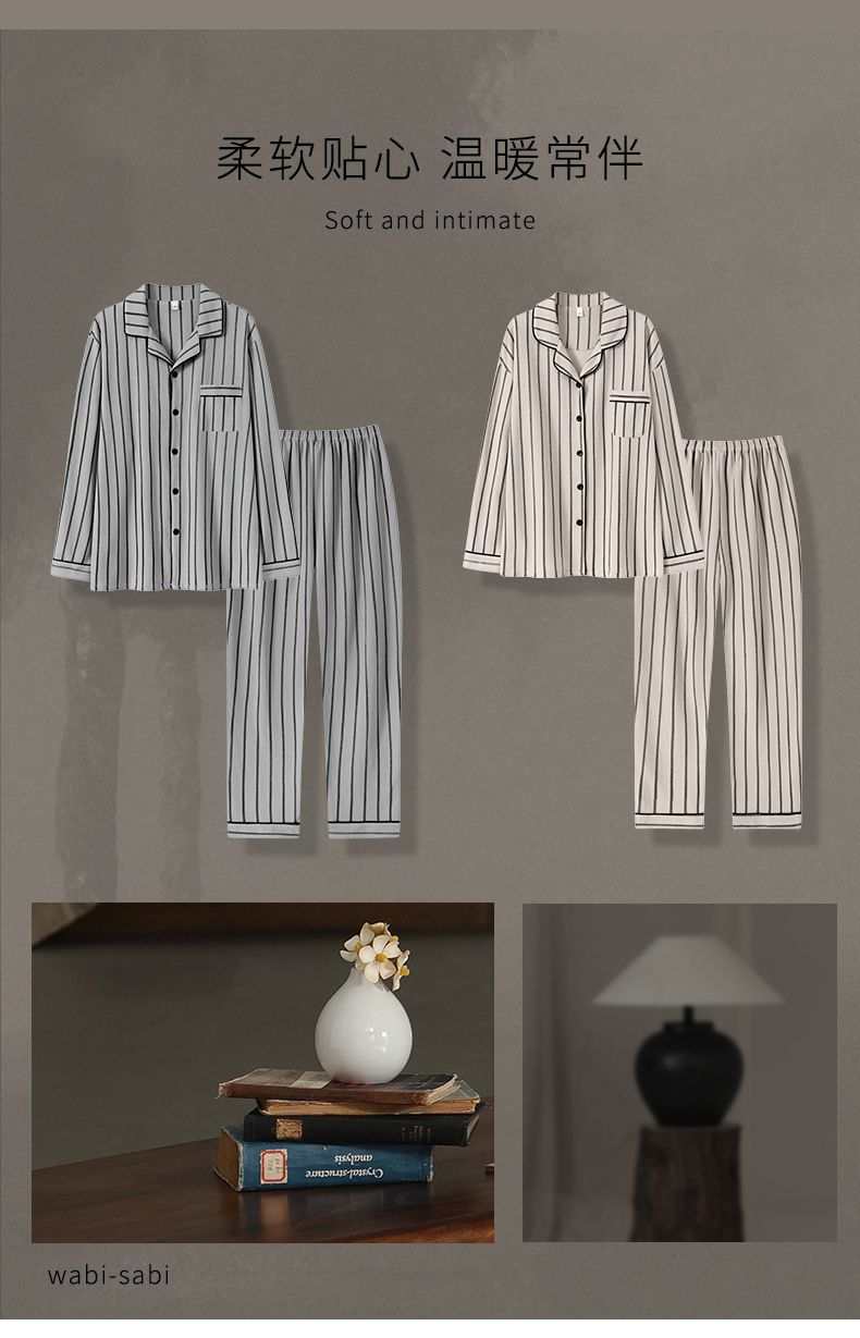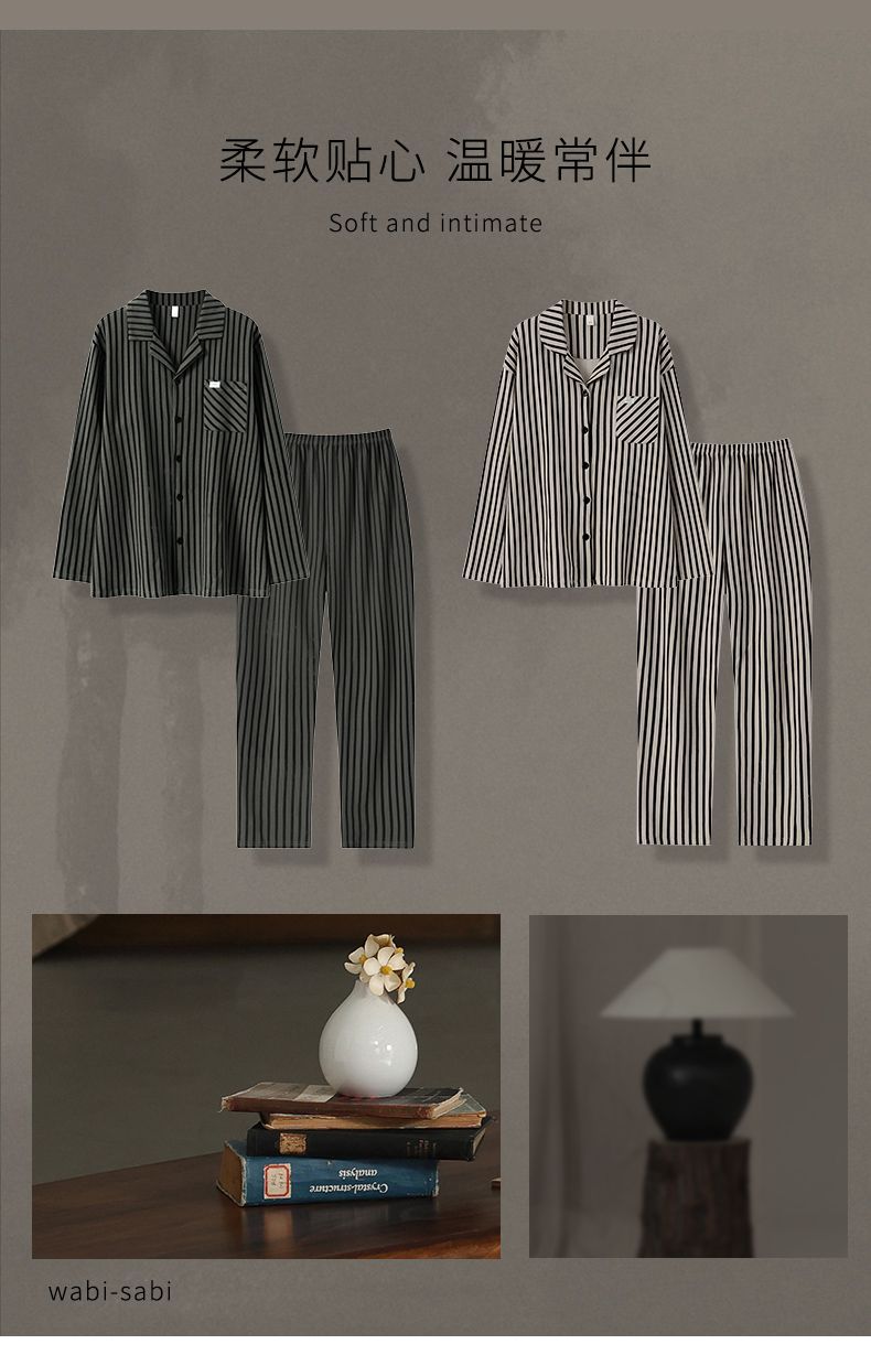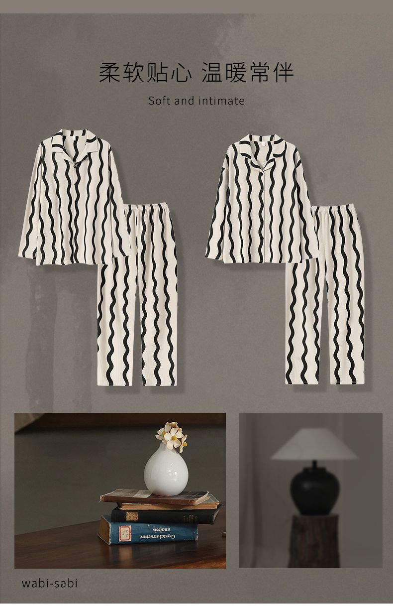 남성과 여성을위한 와플 퓨어 코튼 파자마 긴팔 부드러운 피부 친화적 인 봄과 가을 하이 엔드 커플 홈 의류 세트