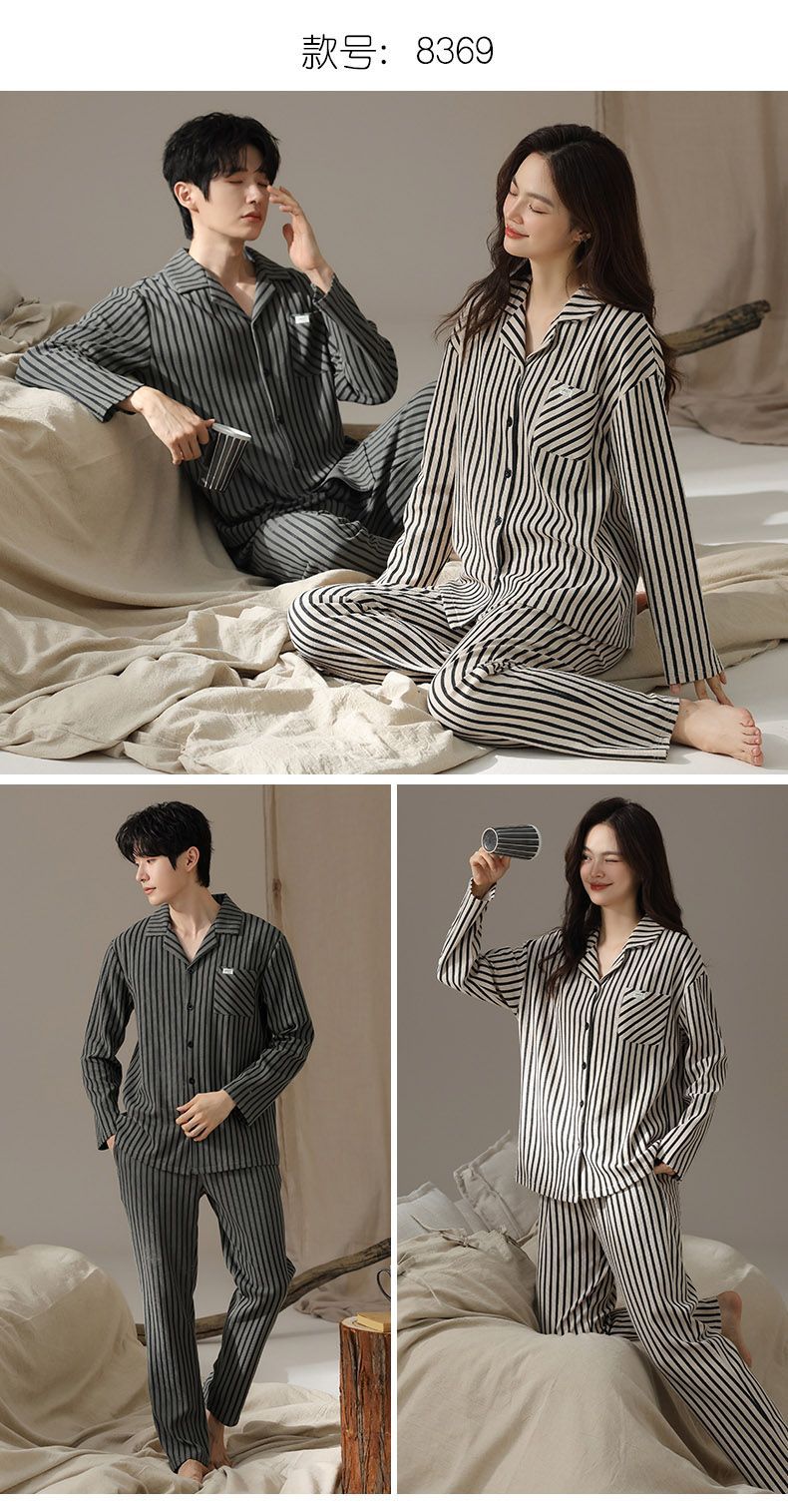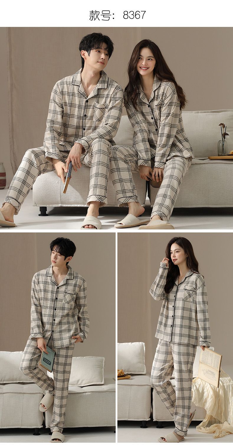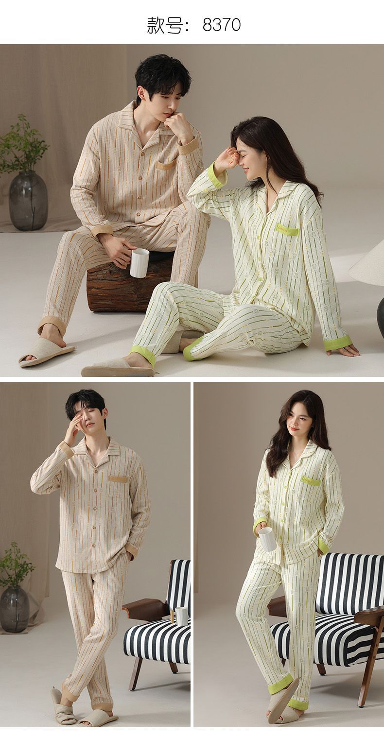 남성과 여성을위한 와플 퓨어 코튼 파자마 긴팔 부드러운 피부 친화적 인 봄과 가을 하이 엔드 커플 홈 의류 세트스토어 가기