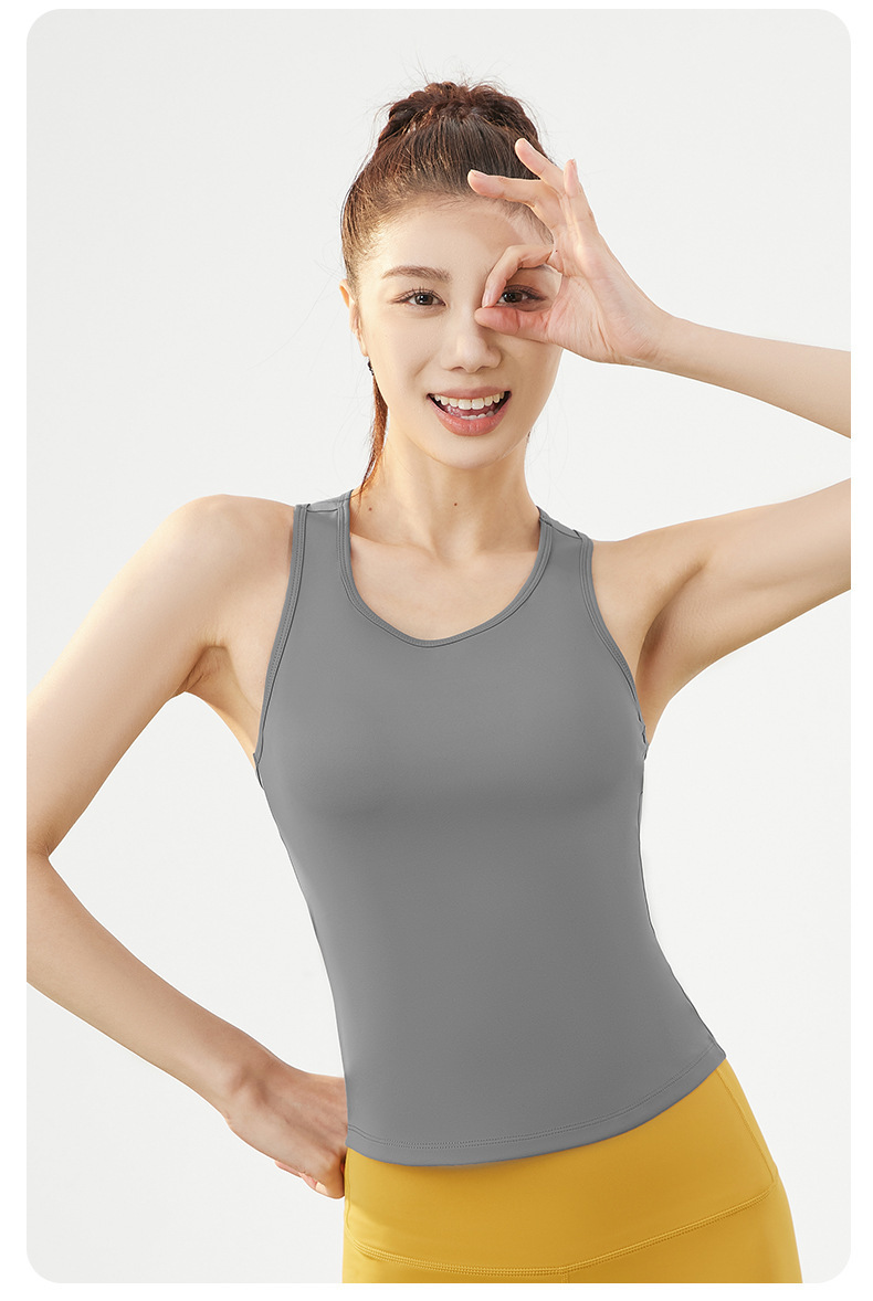 Juyitang 높은 탄성 원피스 가슴 패드와 고정 통기성 타이트핏 무 달리기 컵 스포츠 조끼스토어 가기
