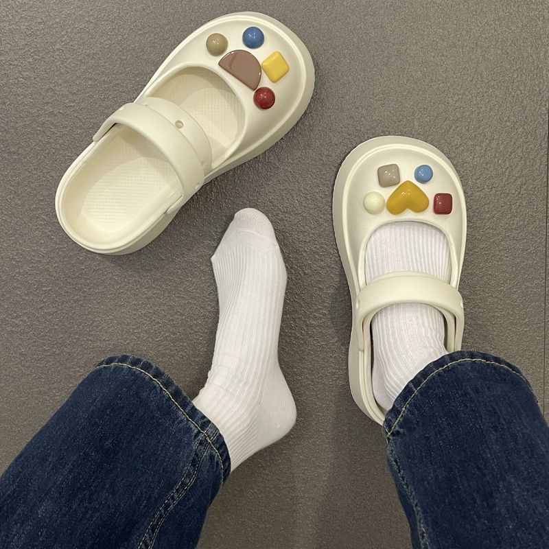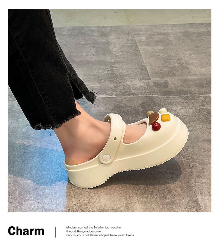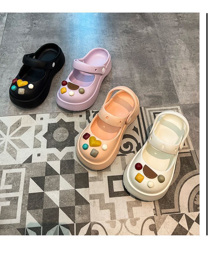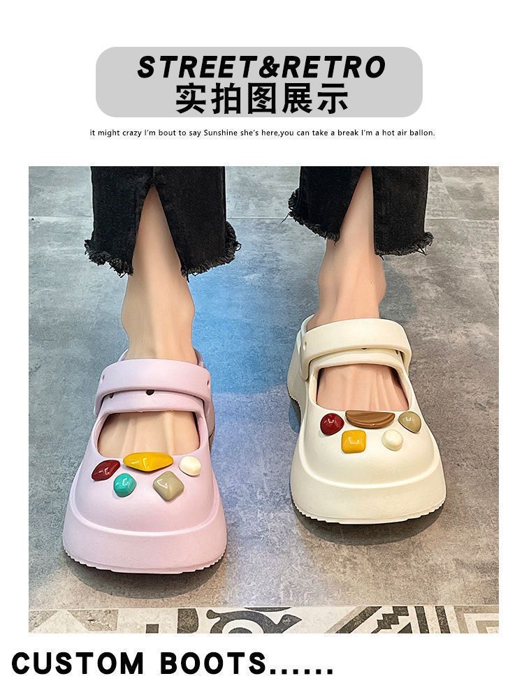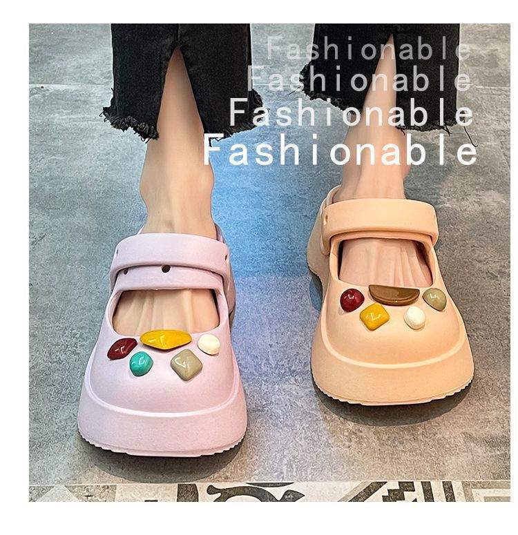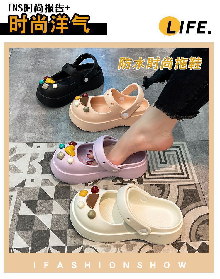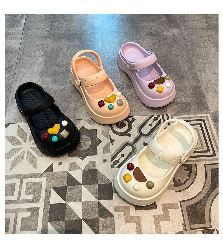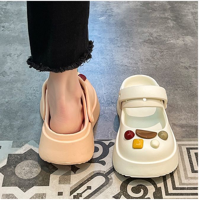 동굴 신발 바오터우 슬리퍼 여성 아우터 달콤한 패션 두꺼운 바닥 홈 미끄럼 방지 메리 제인 비치 슬리퍼 여름스토어 가기