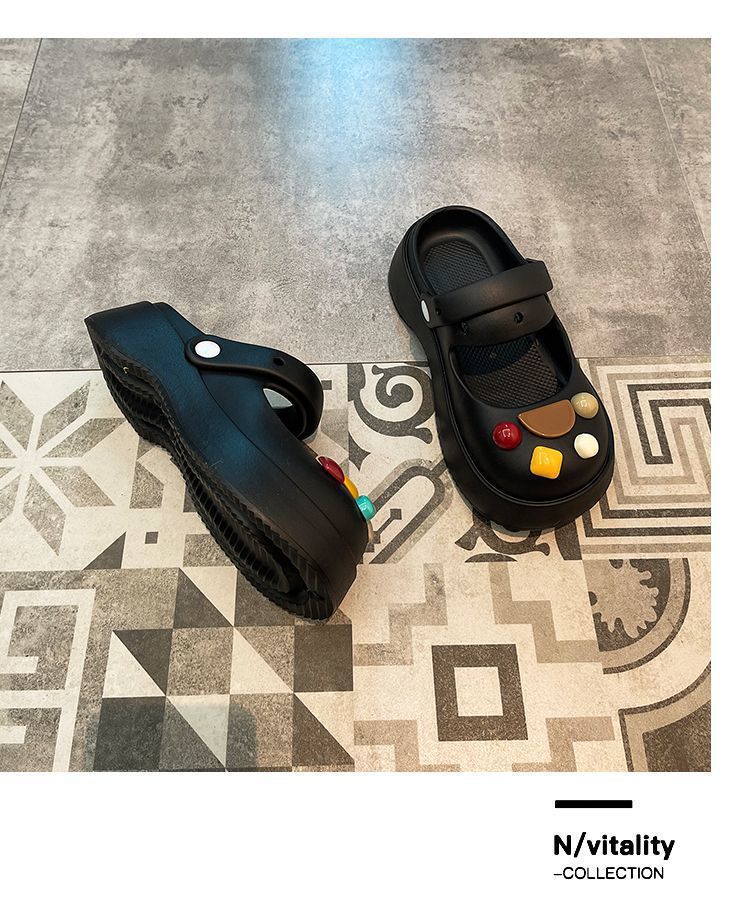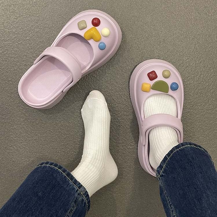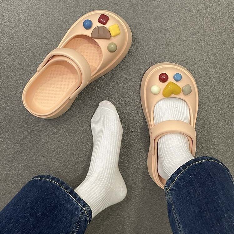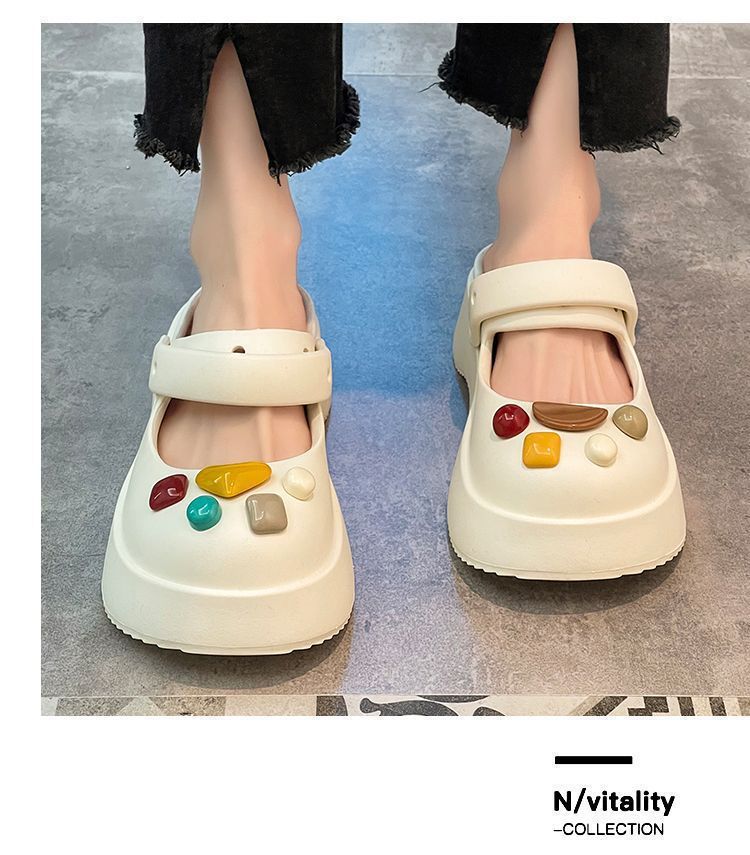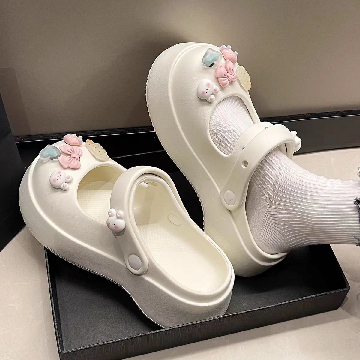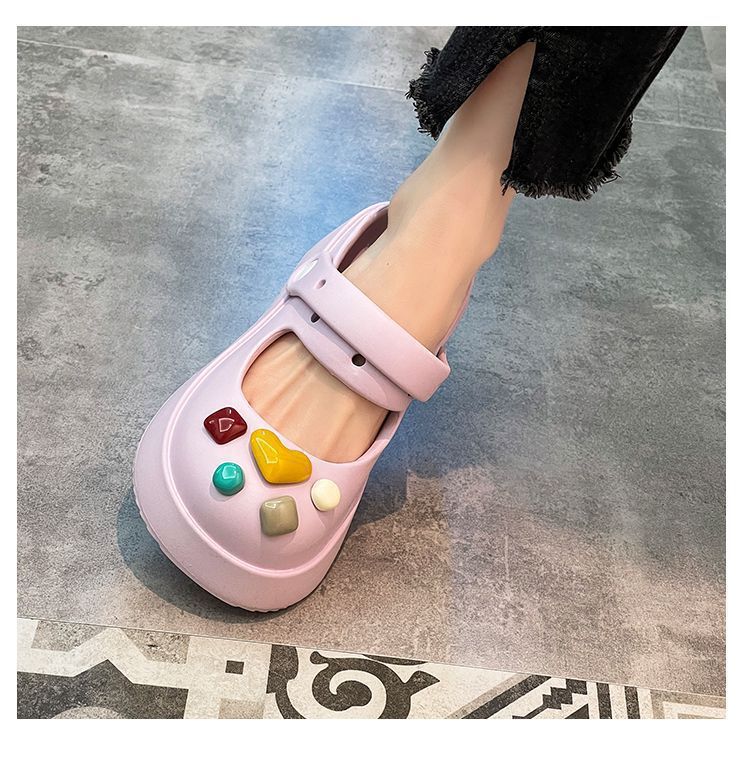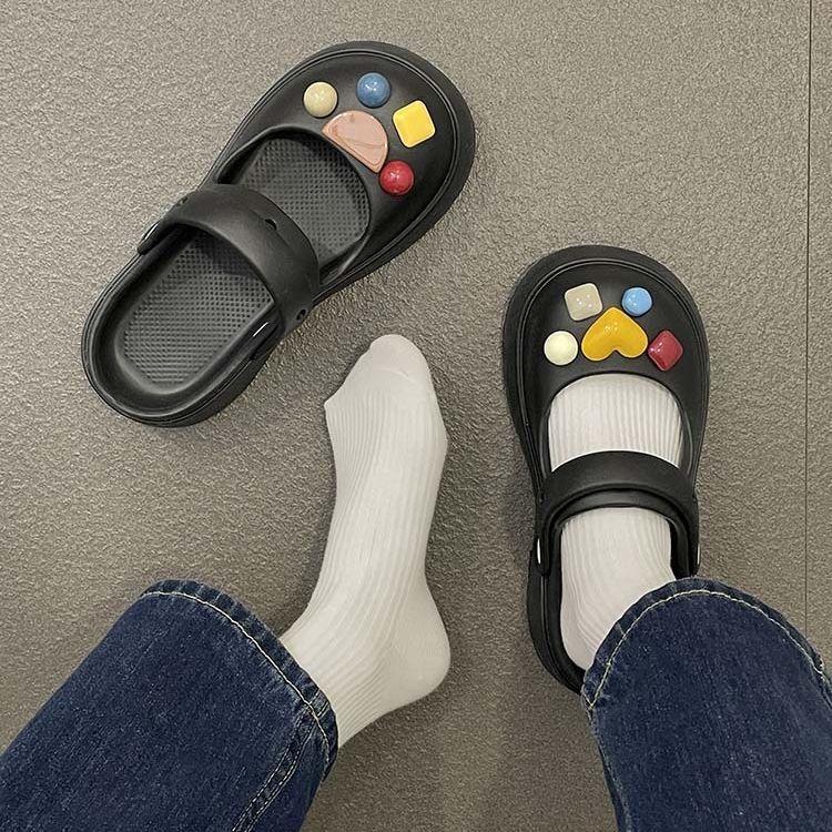 동굴 신발 바오터우 슬리퍼 여성 아우터 달콤한 패션 두꺼운 바닥 홈 미끄럼 방지 메리 제인 비치 슬리퍼 여름스토어 가기