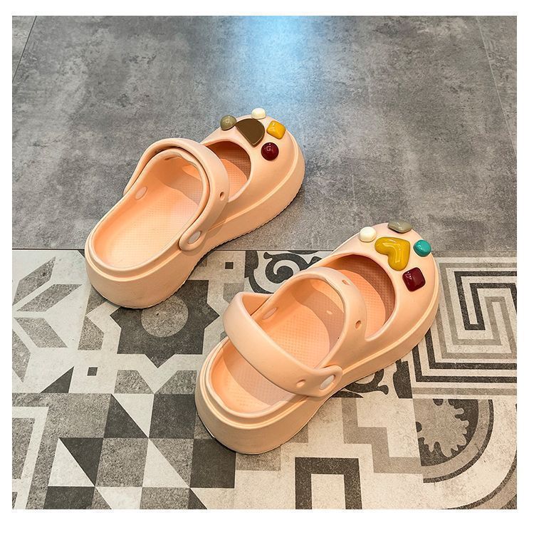 동굴 신발 바오터우 슬리퍼 여성 아우터 달콤한 패션 두꺼운 바닥 홈 미끄럼 방지 메리 제인 비치 슬리퍼 여름
