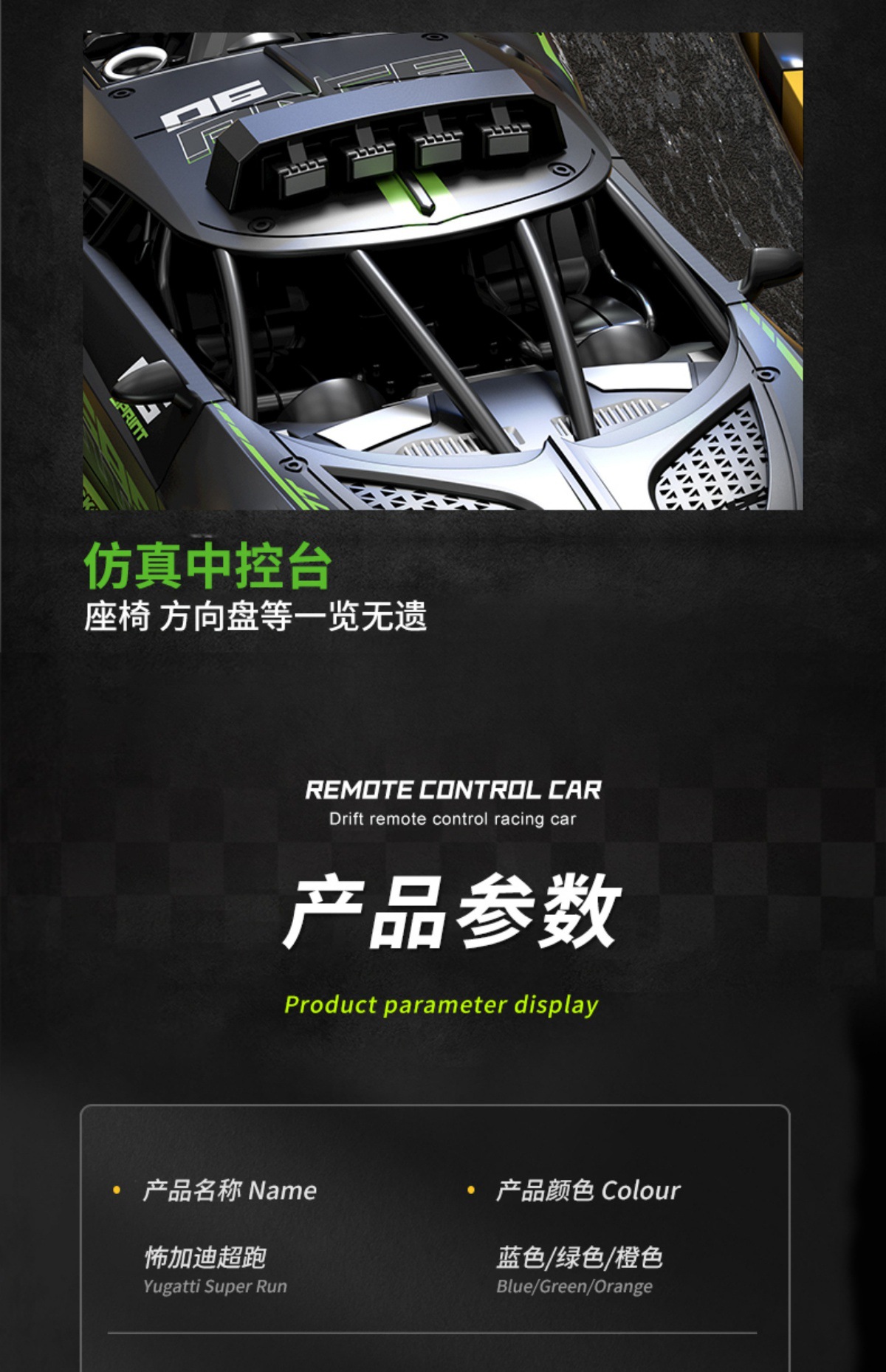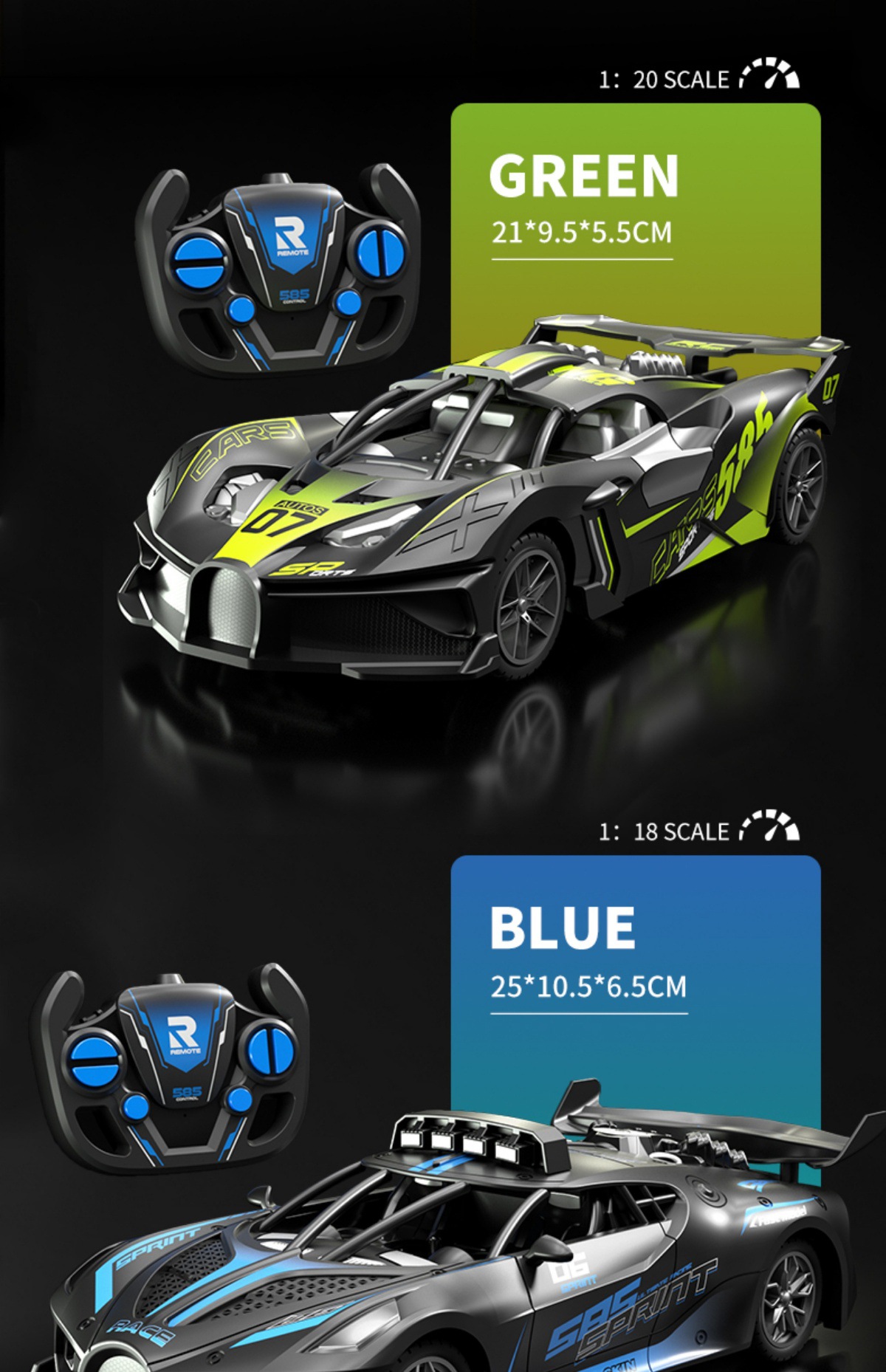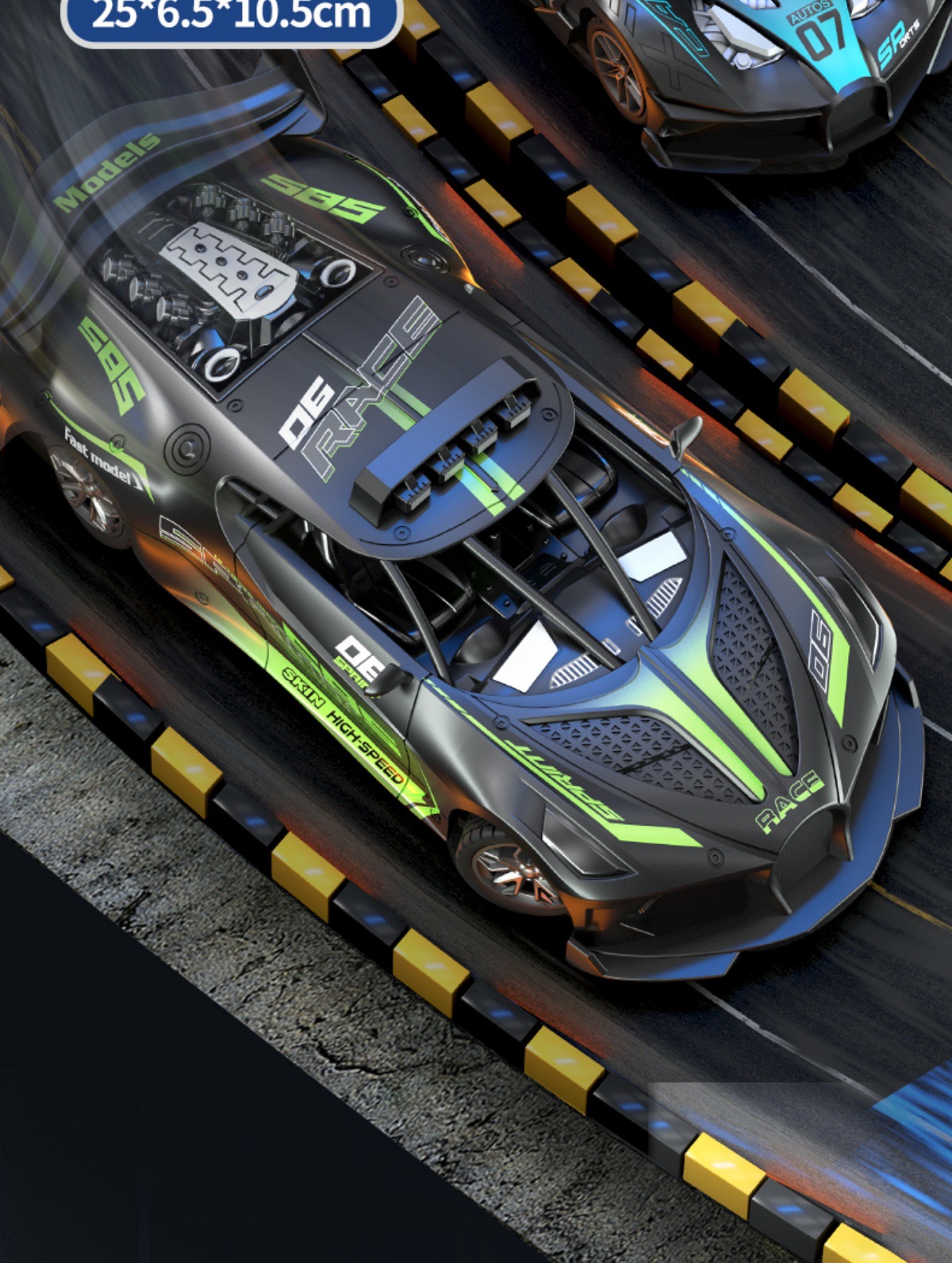 • 초대형 사이즈 25CM- ★ 포르가디 스포츠카-[블랙 앤 그린]