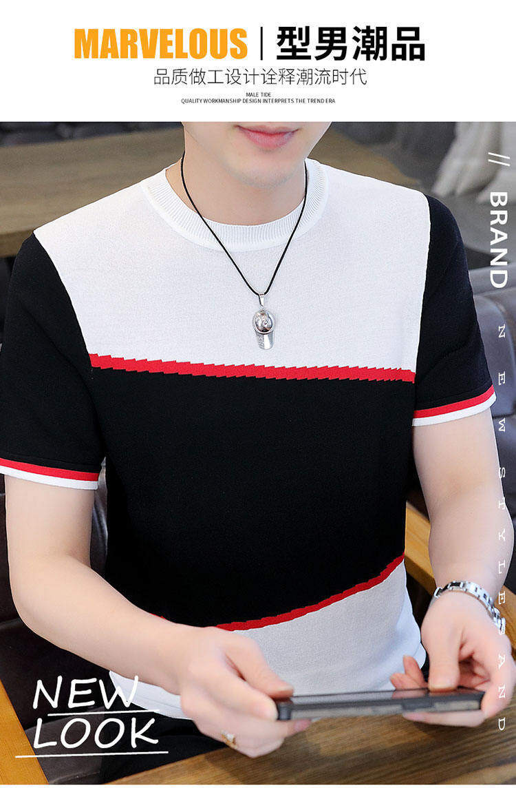 국경 간 대외 무역 AliExpress 새로운 남성 여름 풀오버 티셔츠 남성용 새로운 니트 빙마 반팔 티셔츠