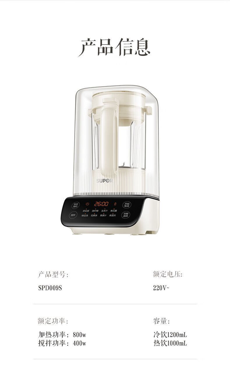 Supor SPD009S 벽 깨는 기계 1.2L 가정용 저음 두유 기계 지능형 난방 자동 과즙스토어 가기