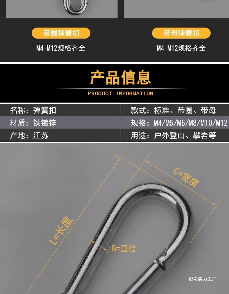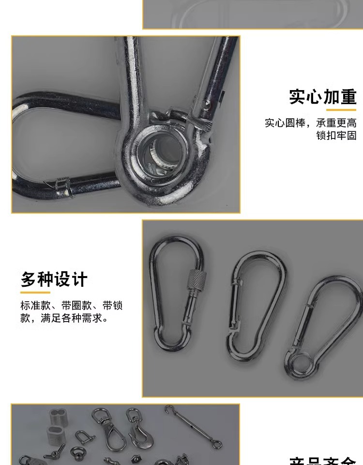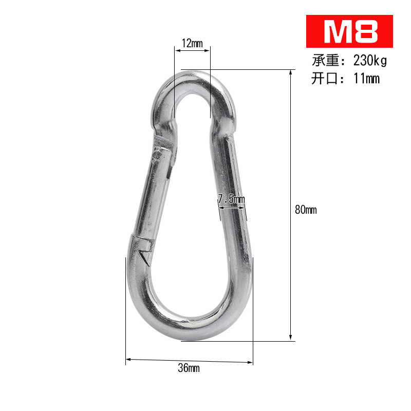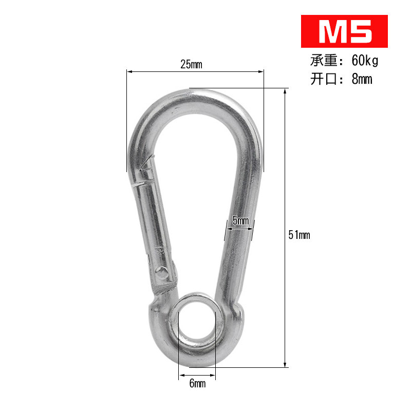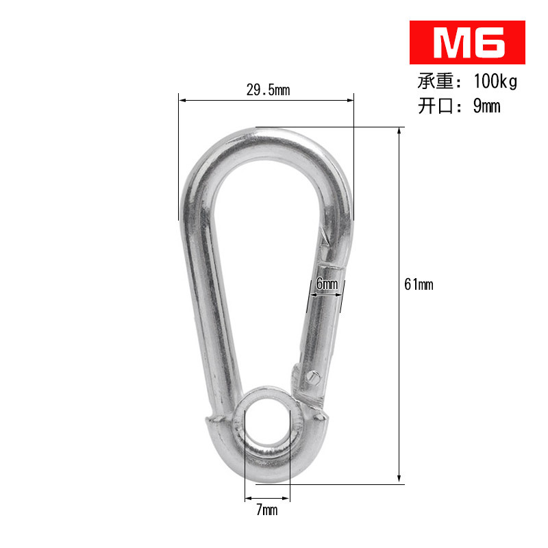 아연 도금 스프링 버클 304 스테인레스 스틸 클라이밍 벨트 잠금 여성 링 교수형 로프 개 체인 잠금 안전 키 링