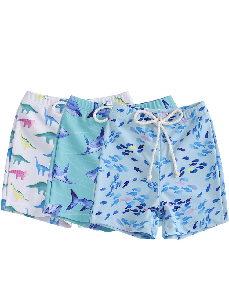 2025 국경 소년 패션 아마존 세련된 허리 밧줄 인쇄 중형 및 대형 어린이 수영 트렁크스토어 가기