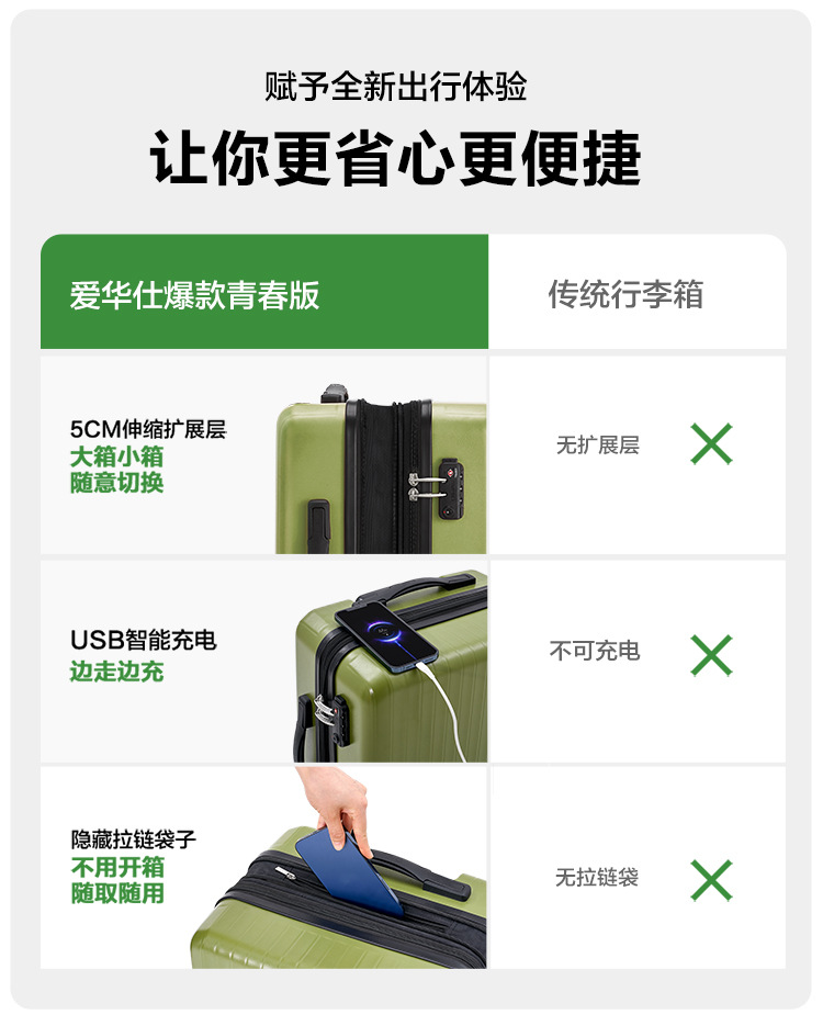 Aihua 숙녀 20 인치 트롤리 케이스 확장 가방 성인 트롤리 케이스 유니버설 휠 보딩 케이스