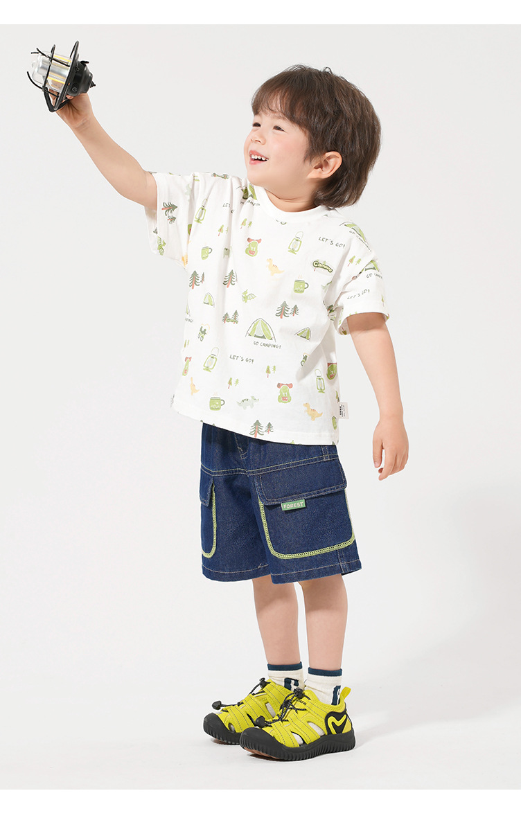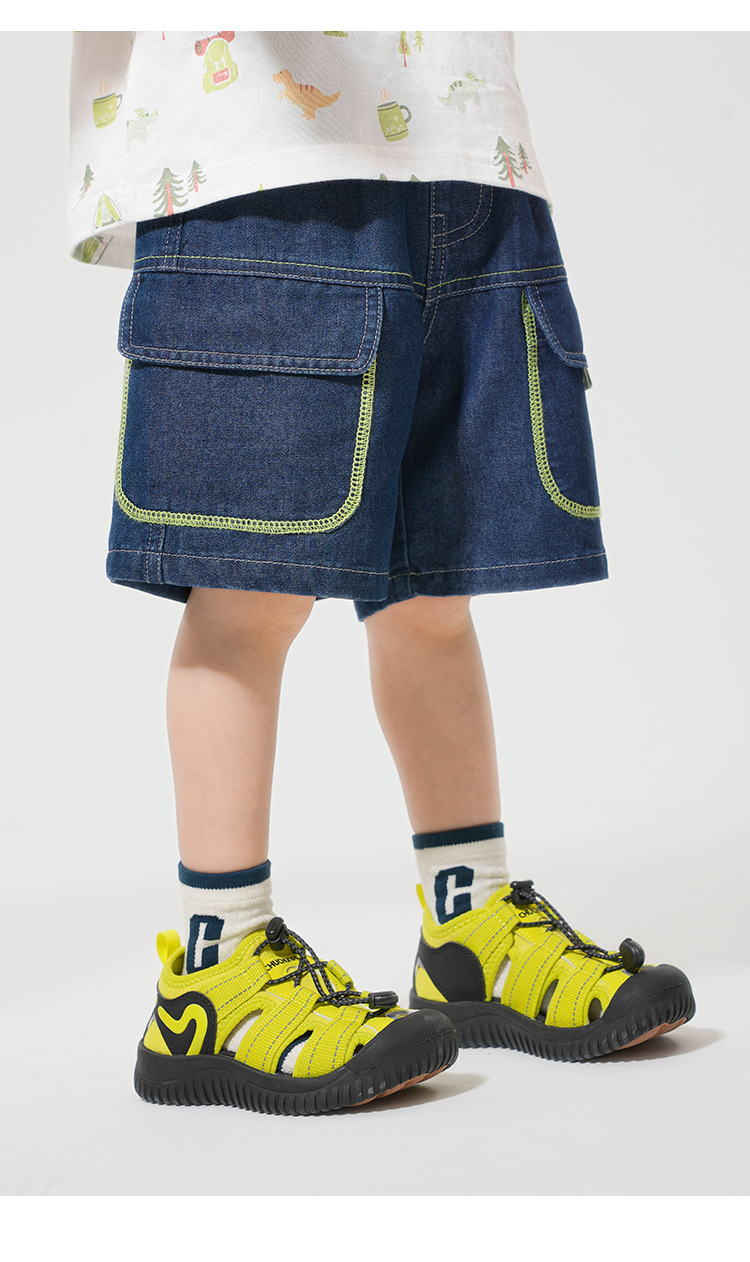 오른쪽 유럽 소년의 데님 짧은 바지 중간 길이 바지 여름 착용 아동복 어린이 아기 작은 소년의 여름 얇은 바지스토어 가기