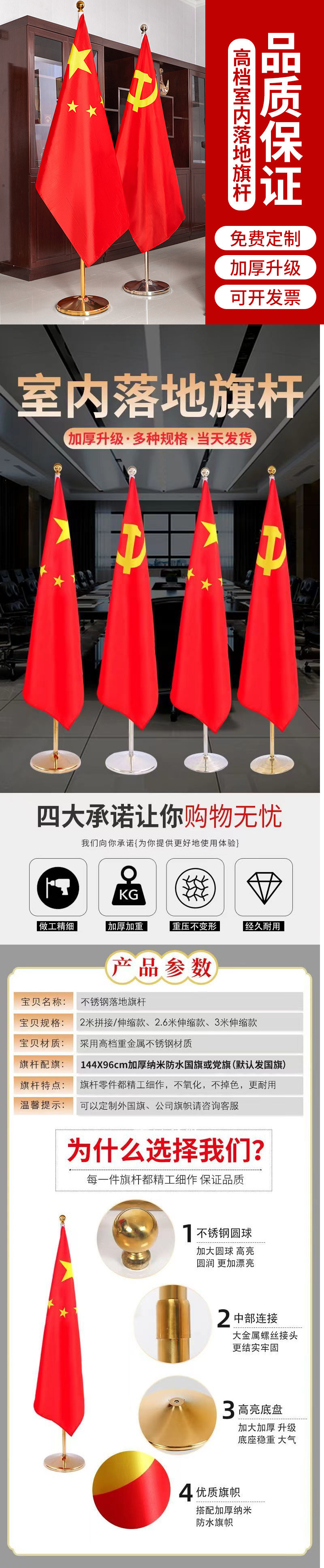 국기 파티 깃발 사무실 실내 바닥 깃대 국기 파티 깃발 5 성급 붉은 깃발 스테인레스 스틸 망원경스토어 가기
