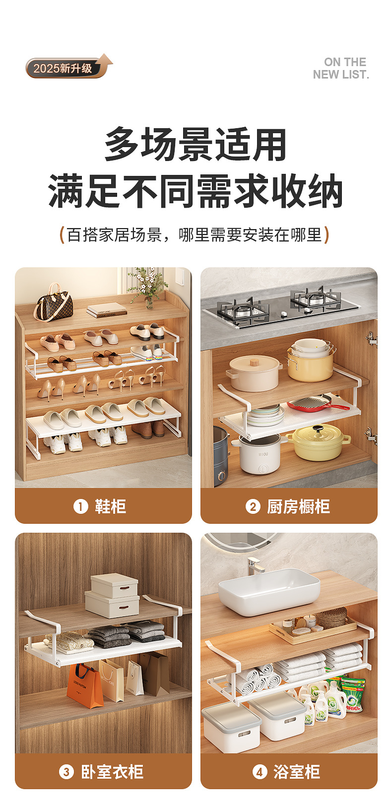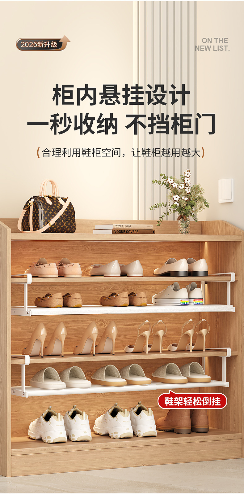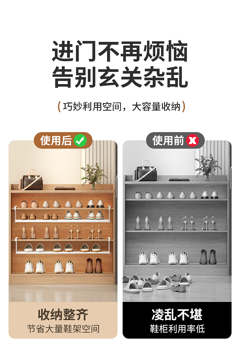 새로운 신발장, 설치 필요 없는 신발 수납 선반, 신발장, 내장형 칸막이, 확장 가능한 하부 걸이형 수납 선반