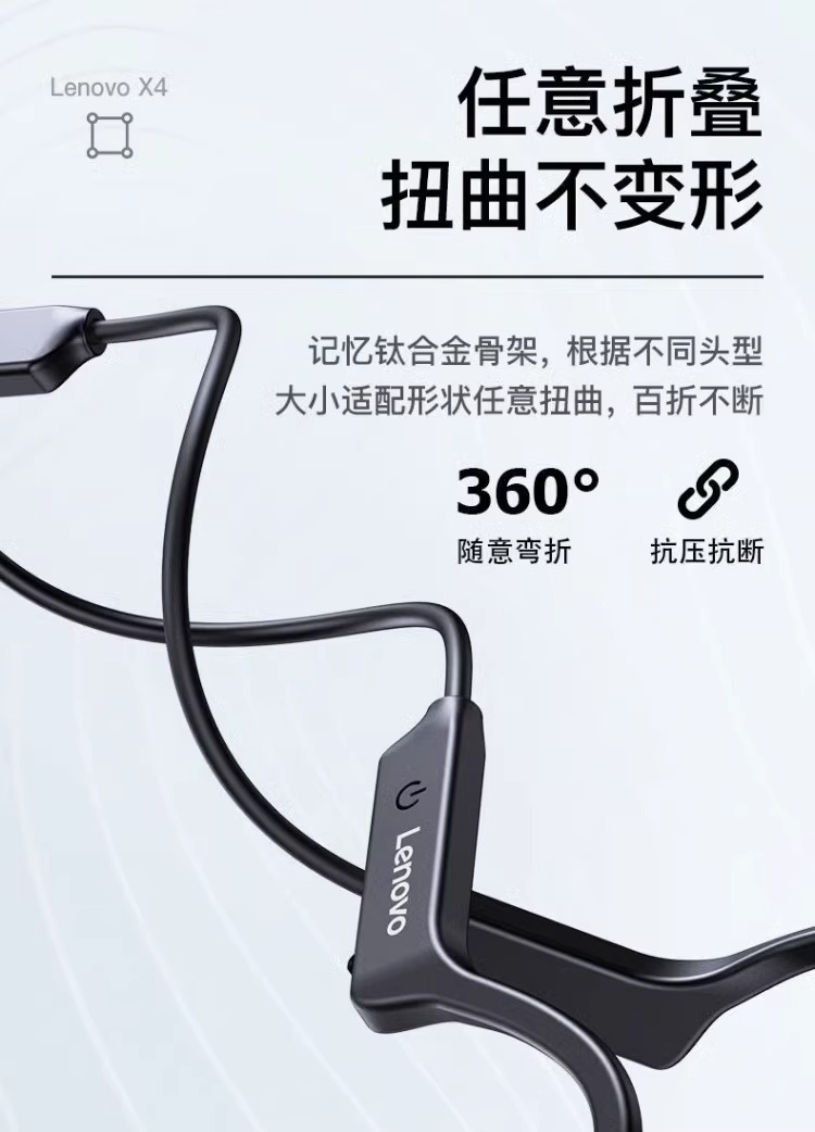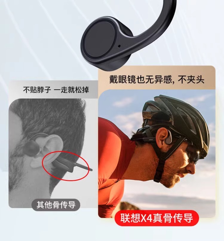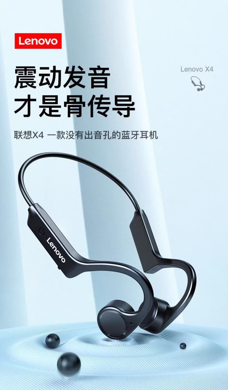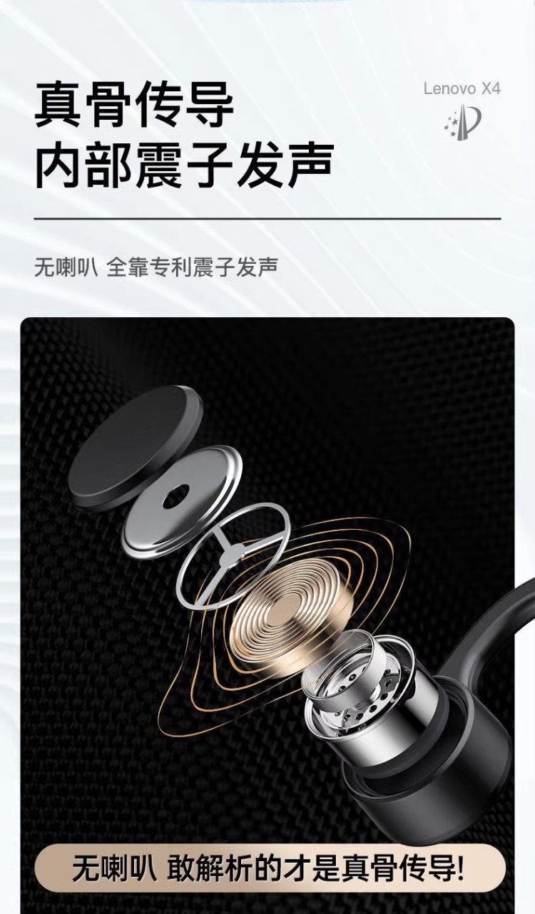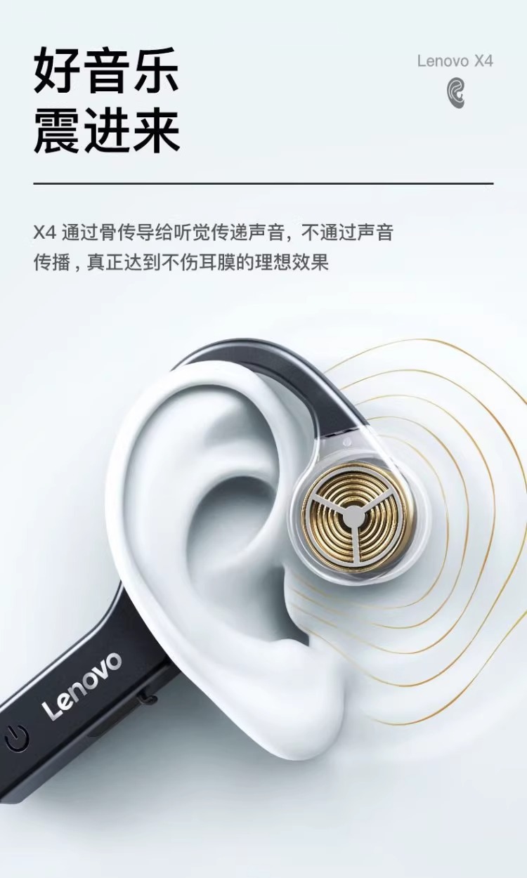레노버 레노버 X4 블루투스 이어폰, 귀걸이형, 초장시간 배터리 수명, 스포츠용 골전도 무선 이어폰, 해외 배송 가능
