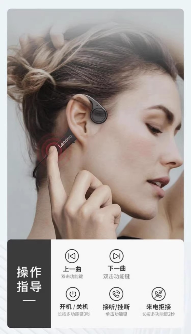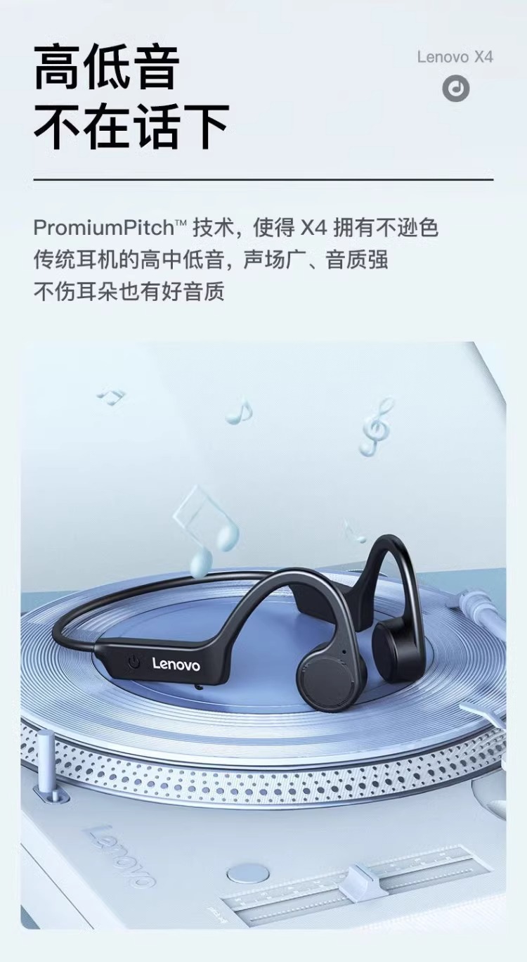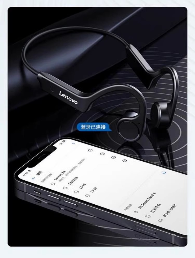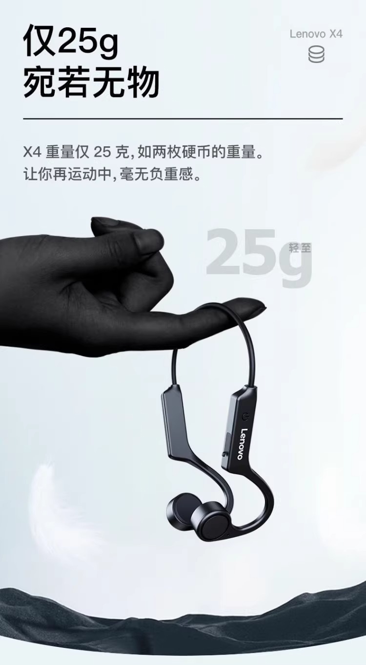 레노버 레노버 X4 블루투스 이어폰, 귀걸이형, 초장시간 배터리 수명, 스포츠용 골전도 무선 이어폰, 해외 배송 가능
