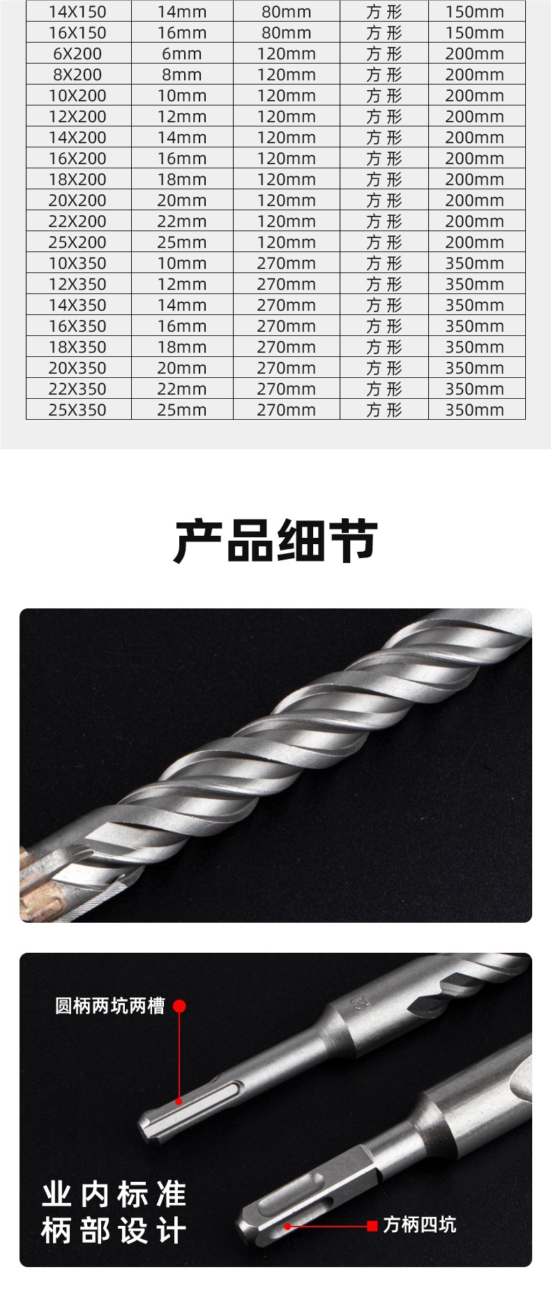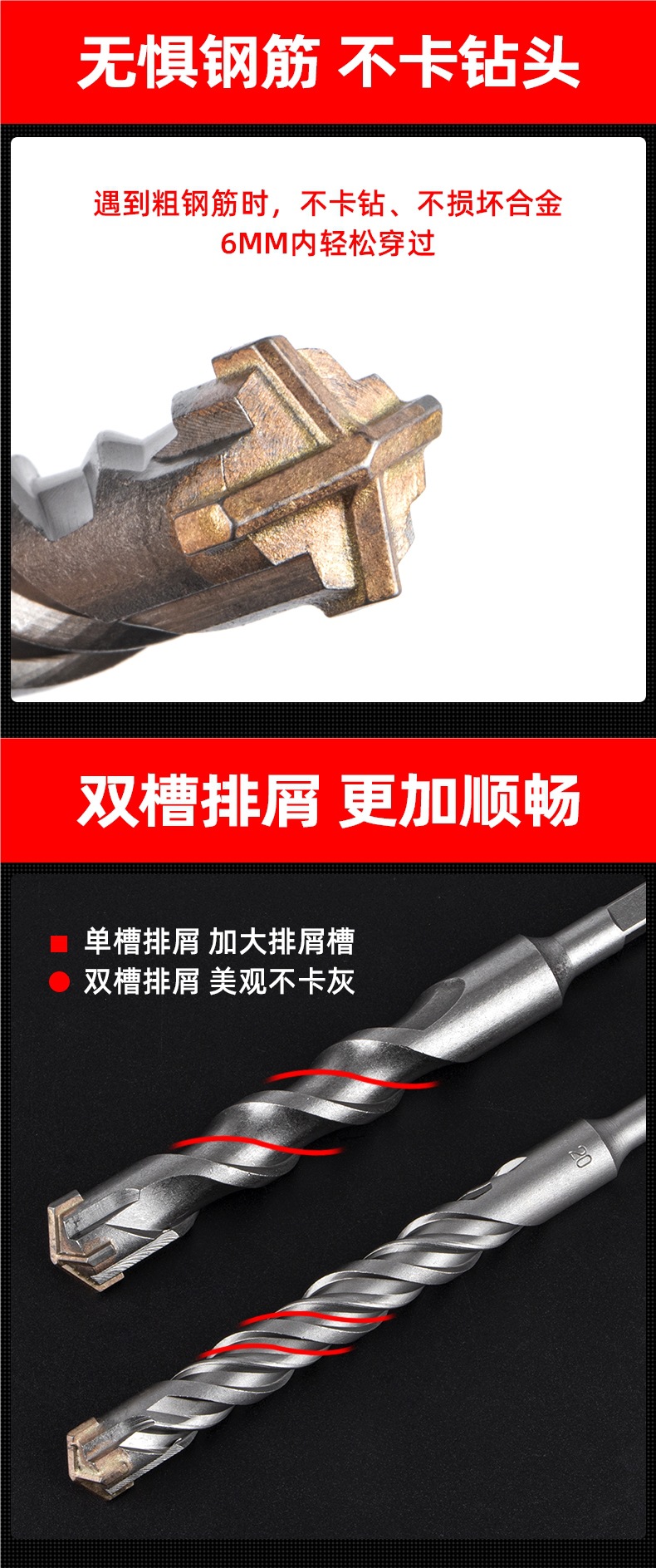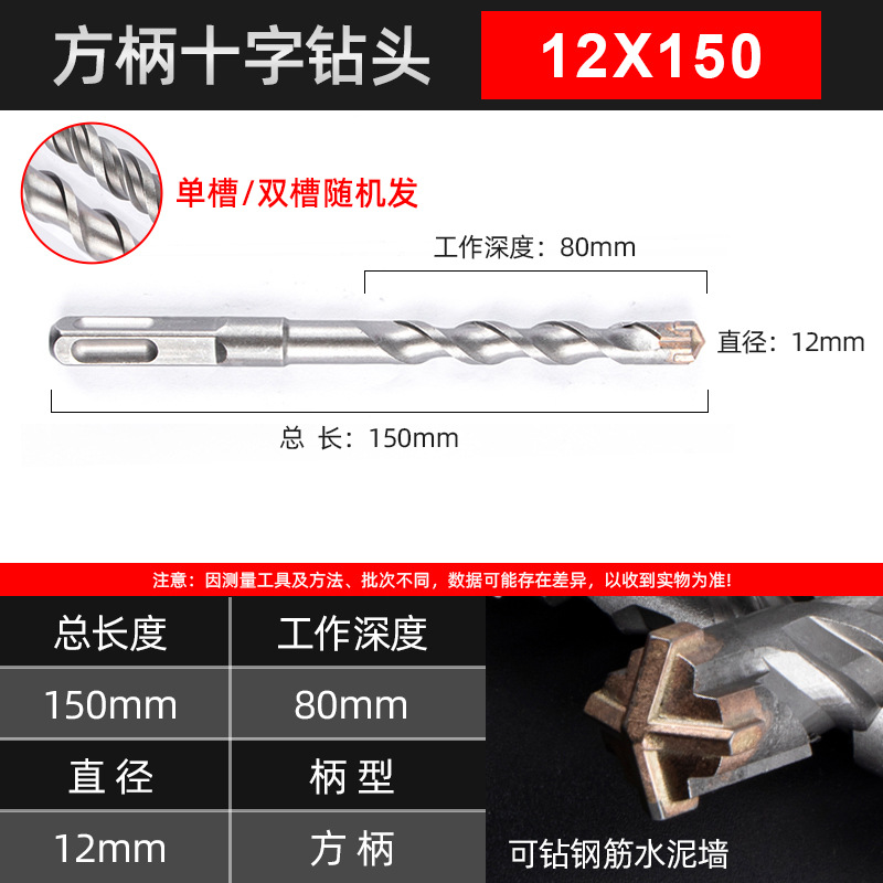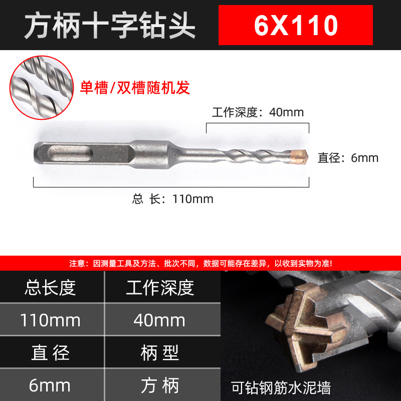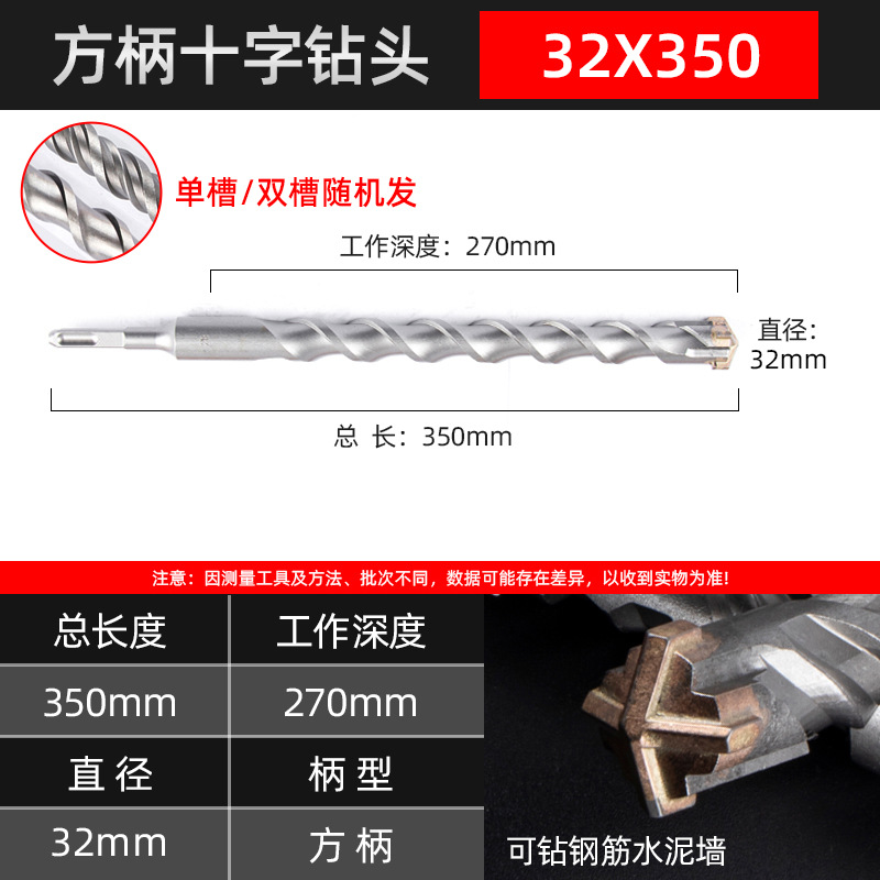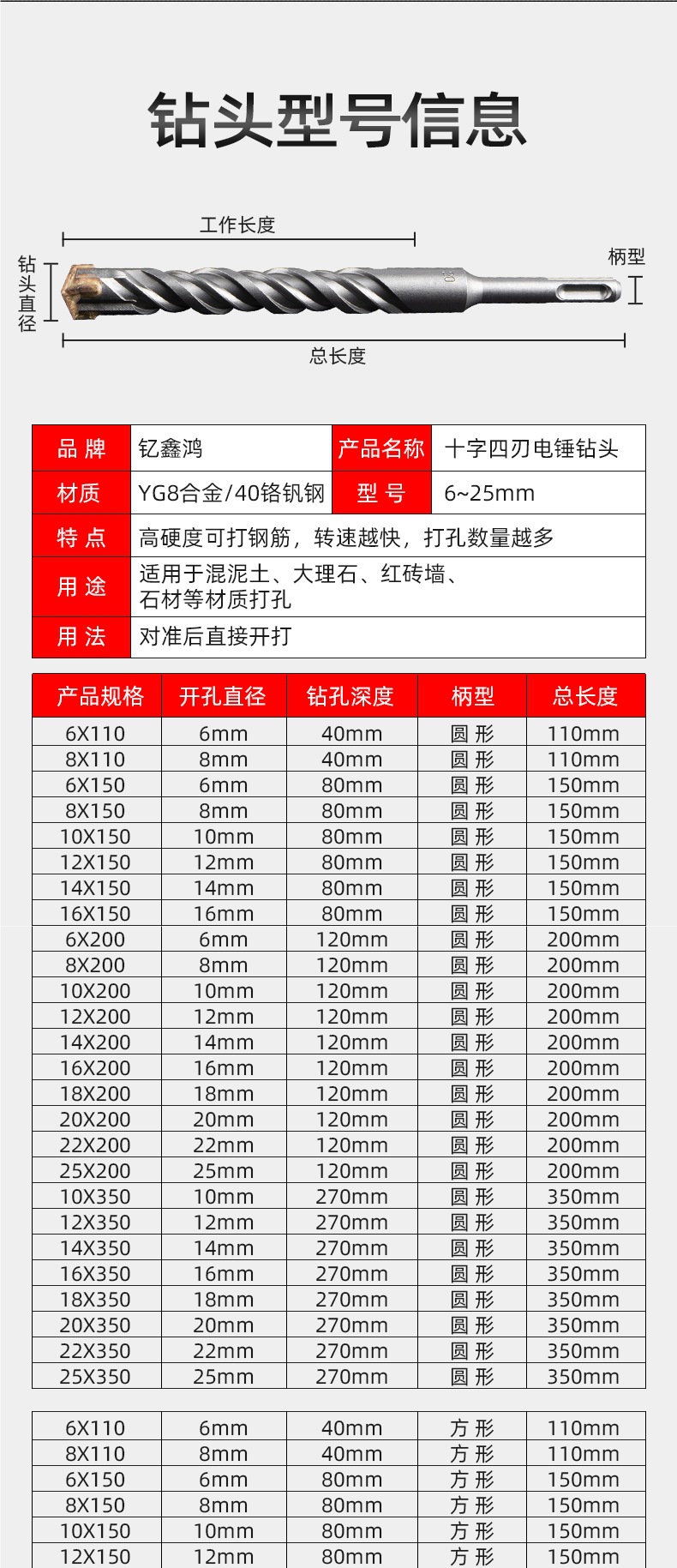 벽 사각형 핸들 4 개의 구덩이를 통해 전기 해머 비트 충격 콘크리트를 교차하십시오.스토어 가기