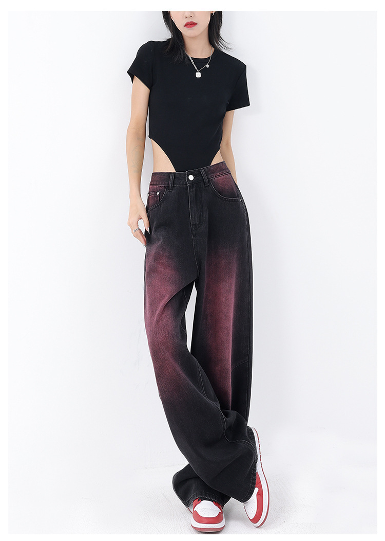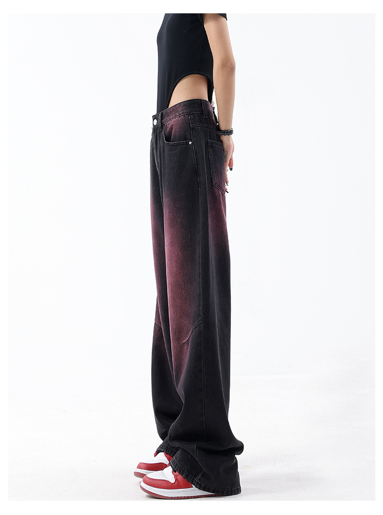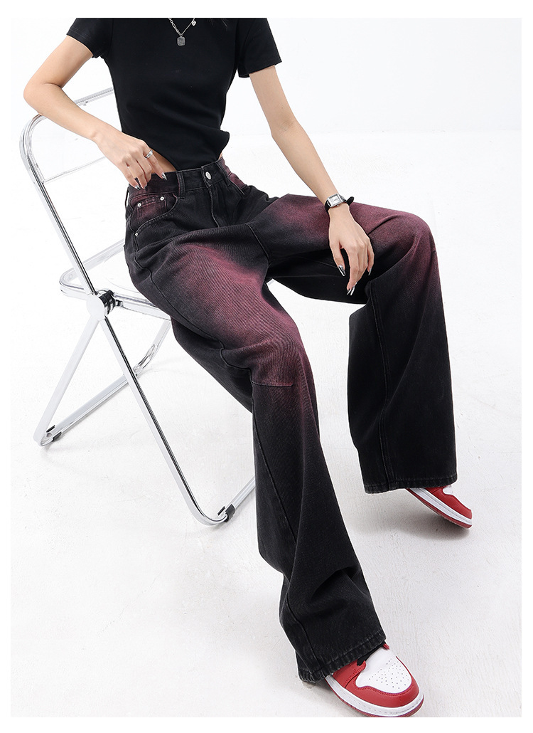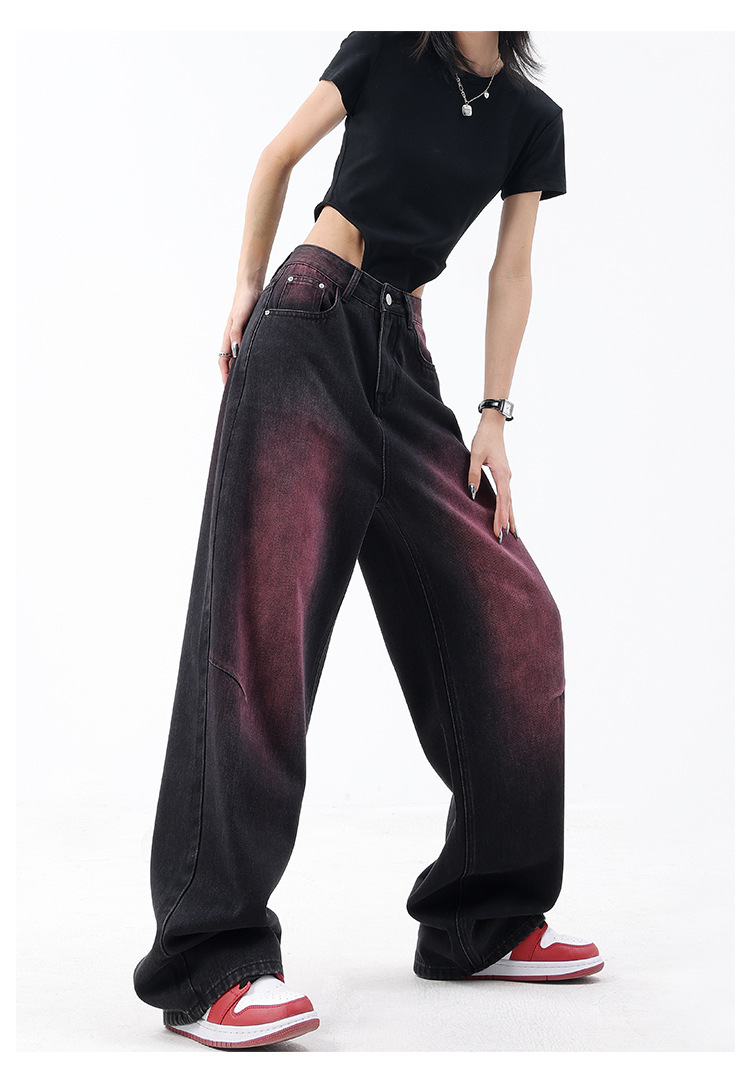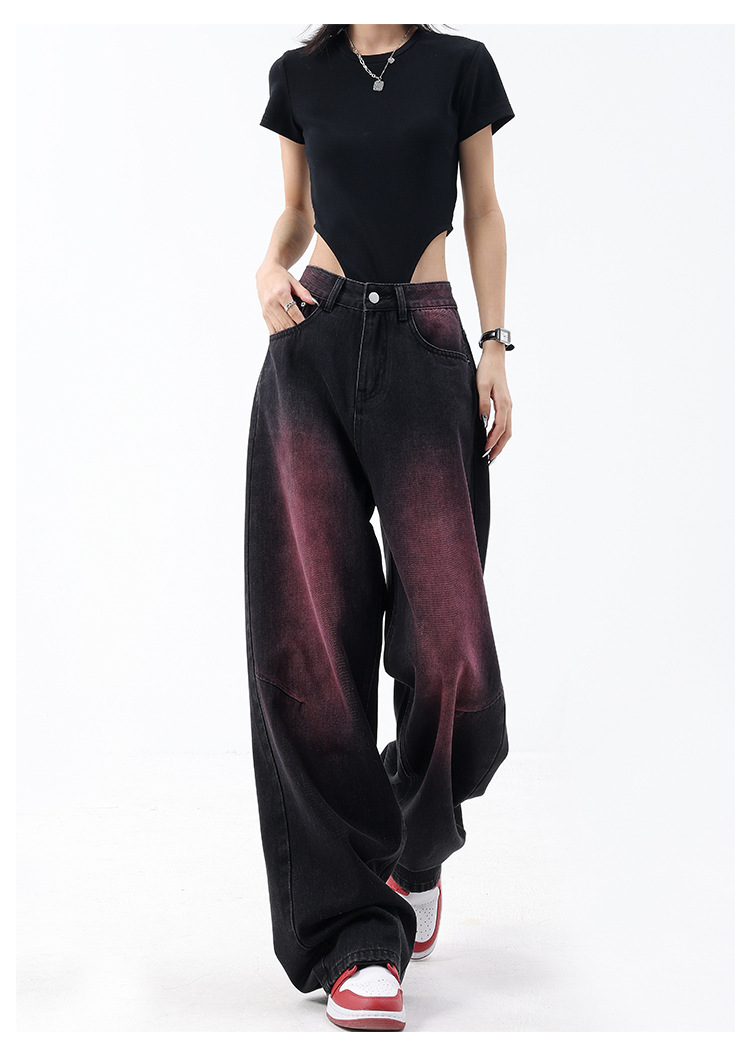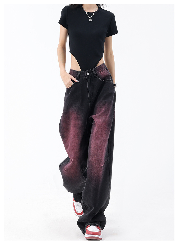 미국 복고풍 봄과 여름 새로운 낙서 워시 워터 청바지 여성 복고풍 디자인 센스 스트레이트 다리 와이드 다리 바지