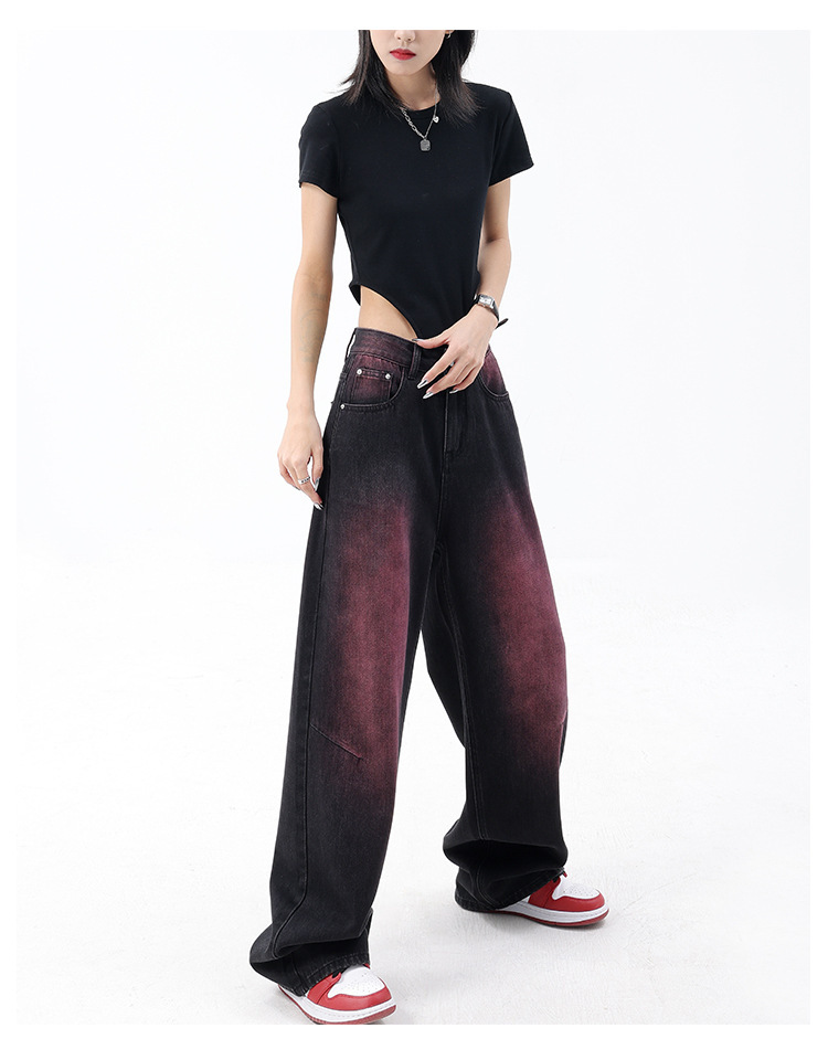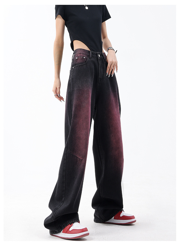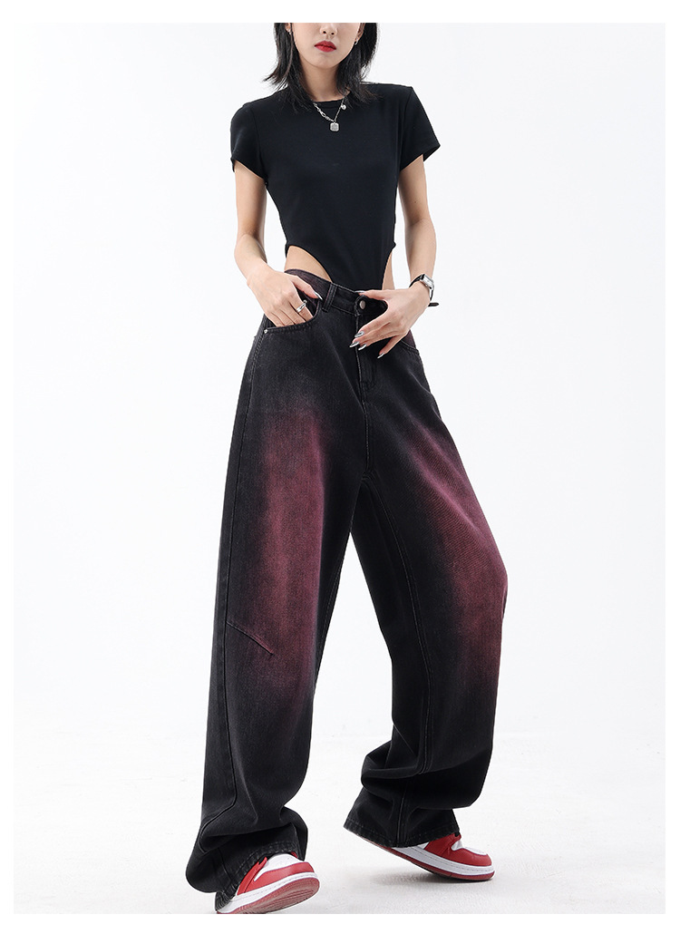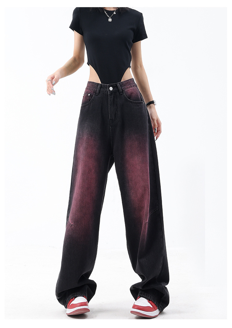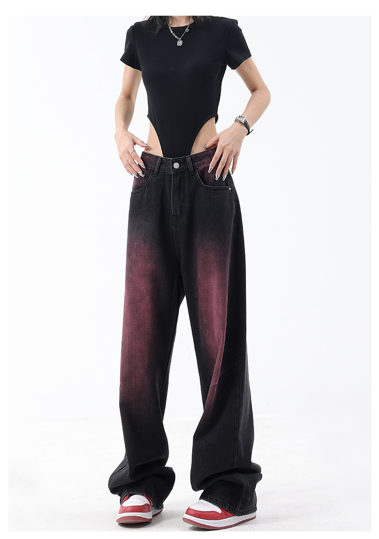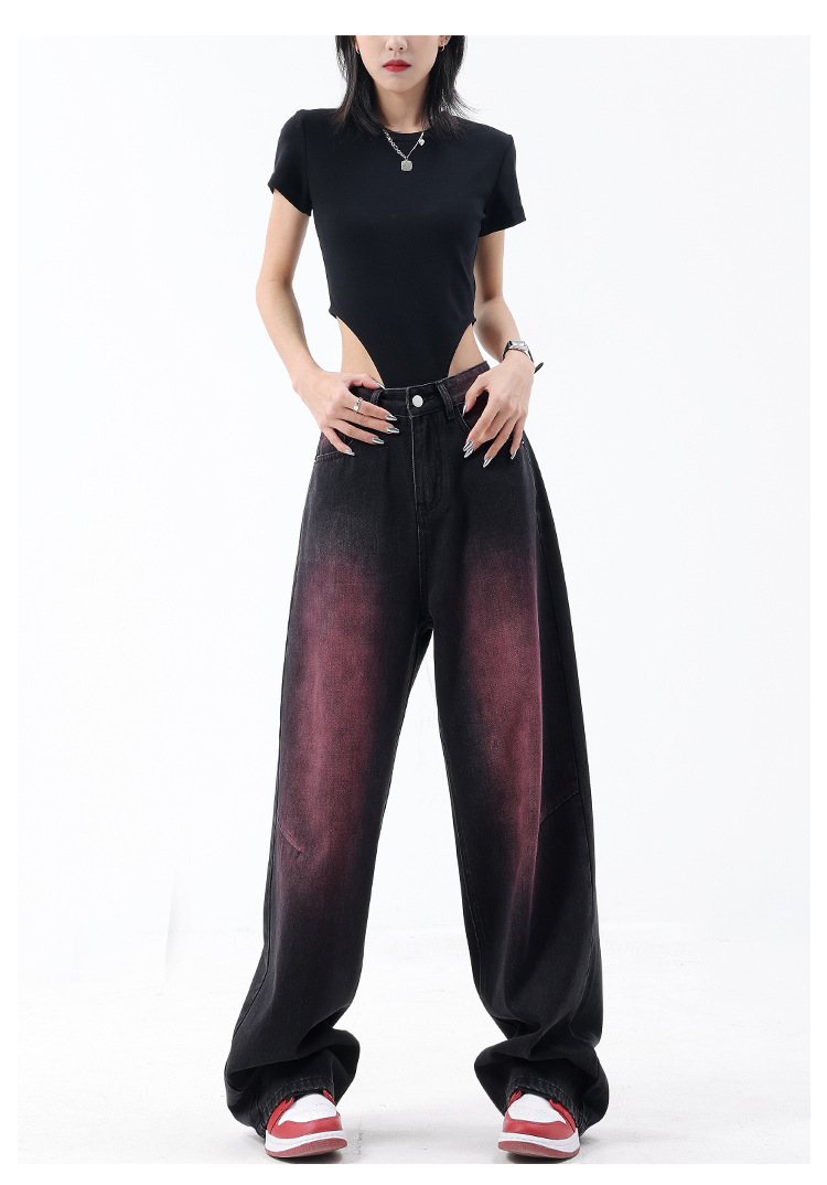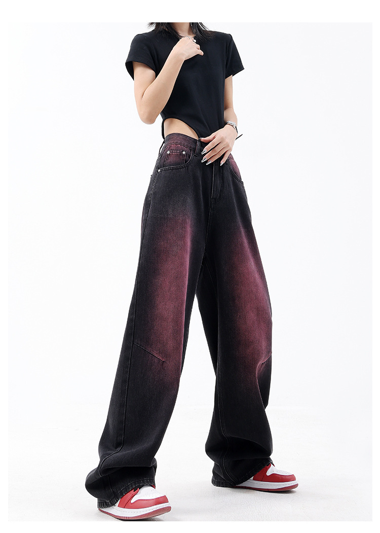 미국 복고풍 봄과 여름 새로운 낙서 워시 워터 청바지 여성 복고풍 디자인 센스 스트레이트 다리 와이드 다리 바지
