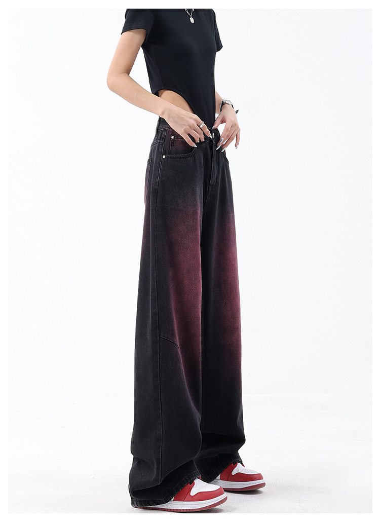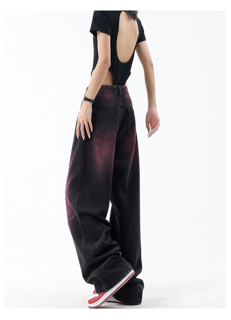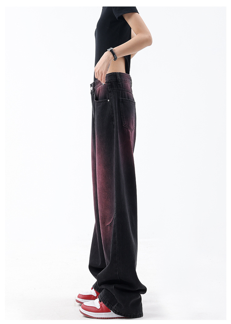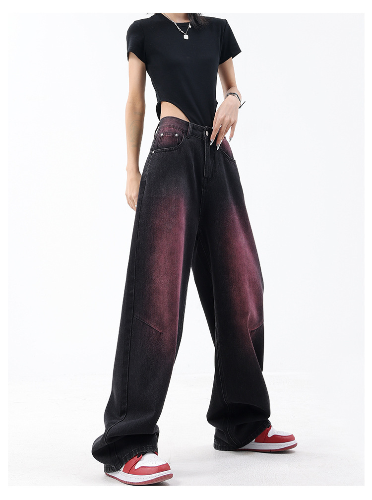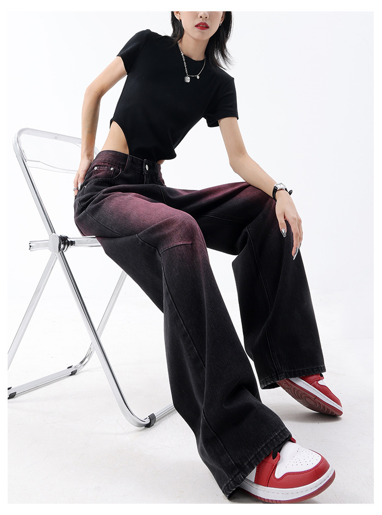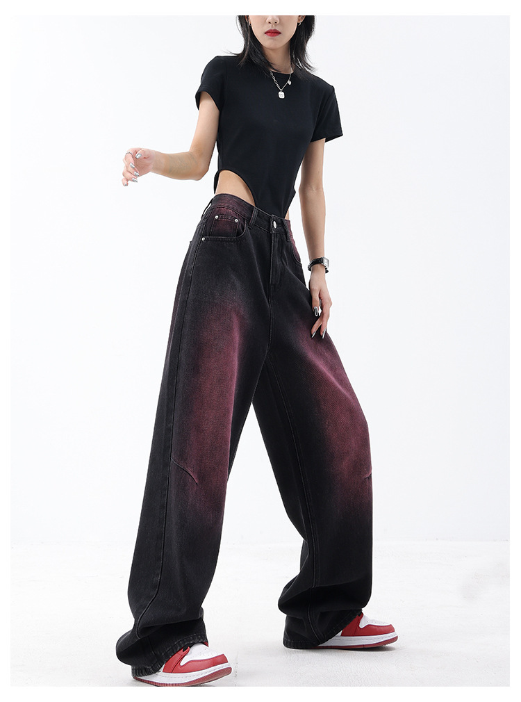 미국 복고풍 봄과 여름 새로운 낙서 워시 워터 청바지 여성 복고풍 디자인 센스 스트레이트 다리 와이드 다리 바지
