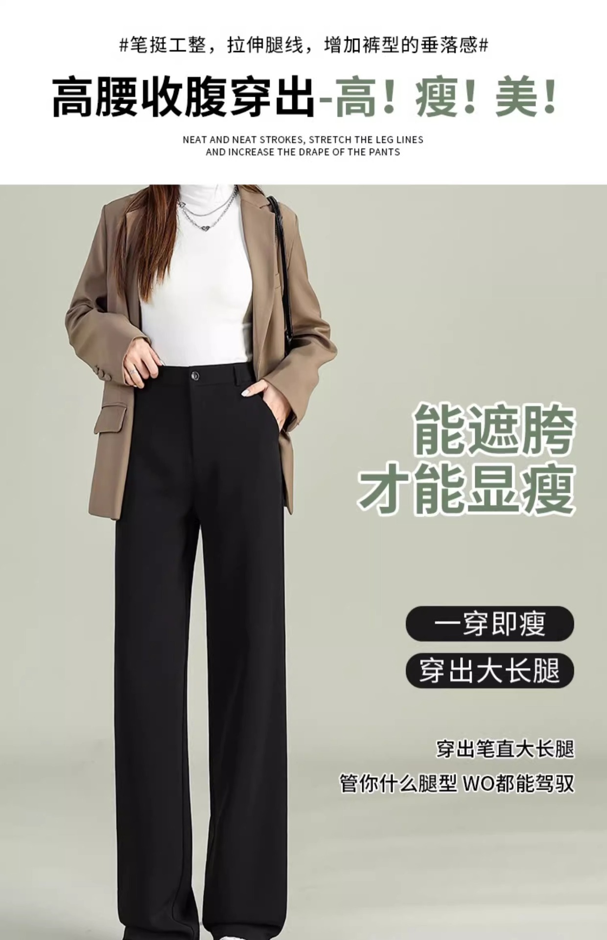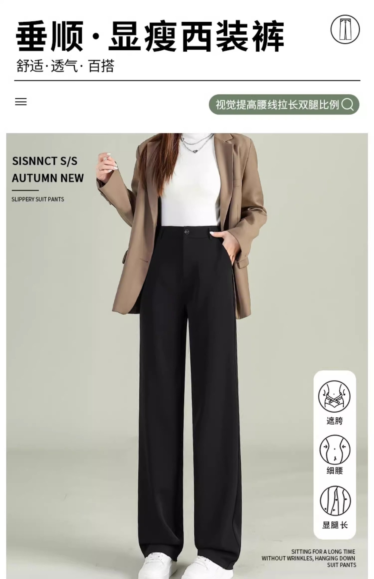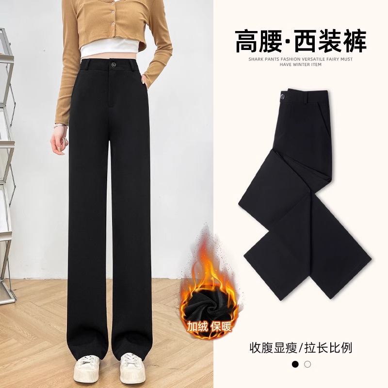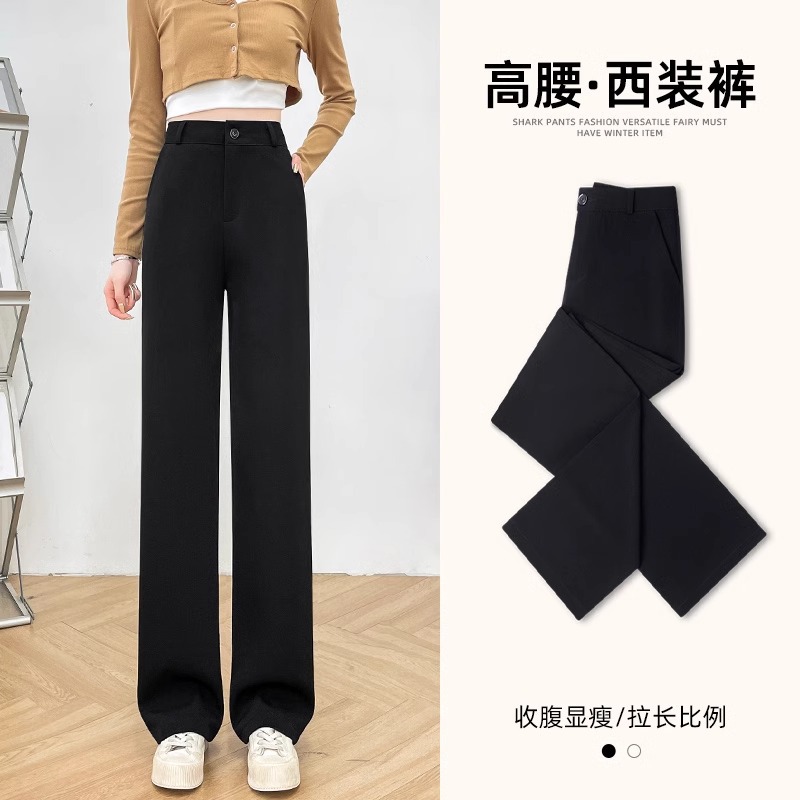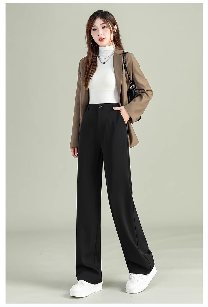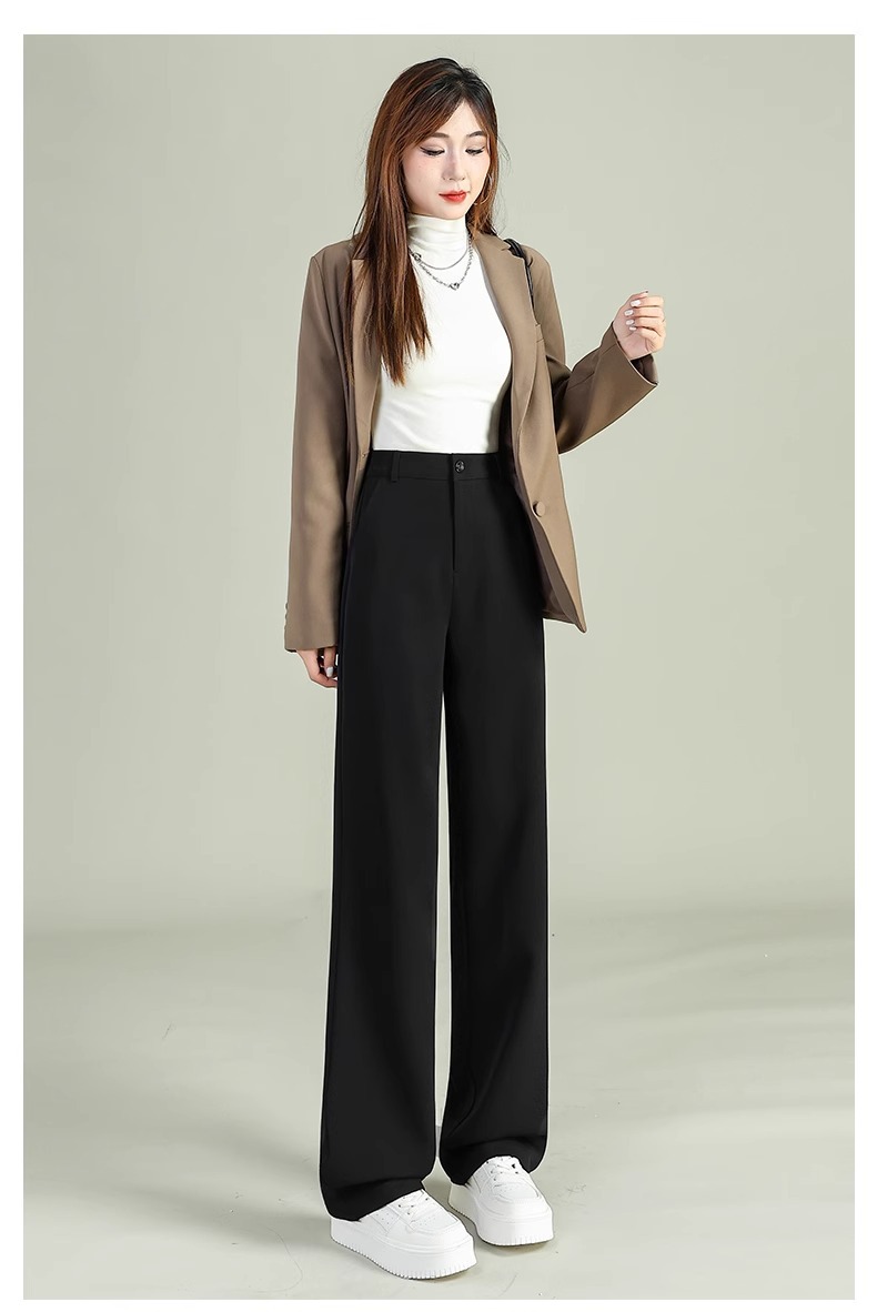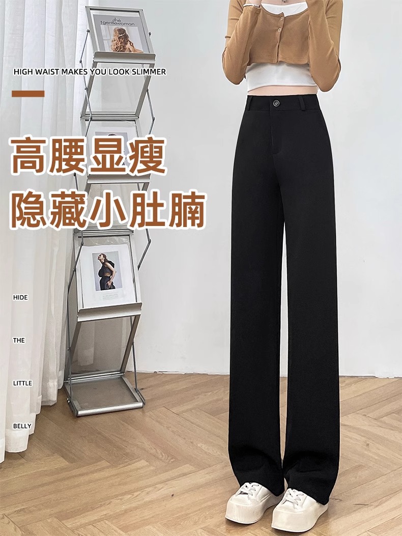 높은 허리 세트 바지 여자 봄 2025 새로운 좁은 검은 넓은 다리 바지 고급 스트레이트 캐주얼 바지스토어 가기