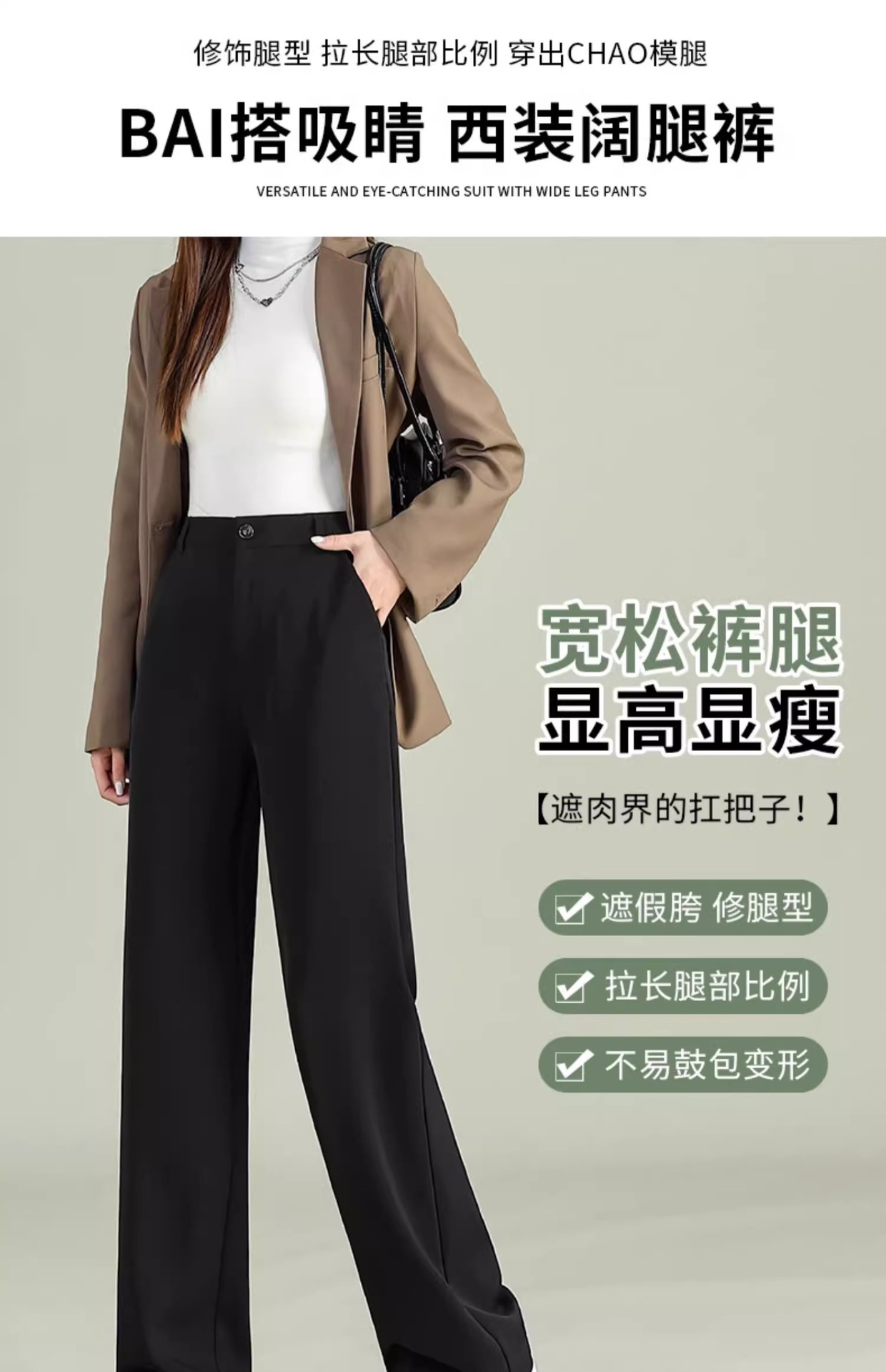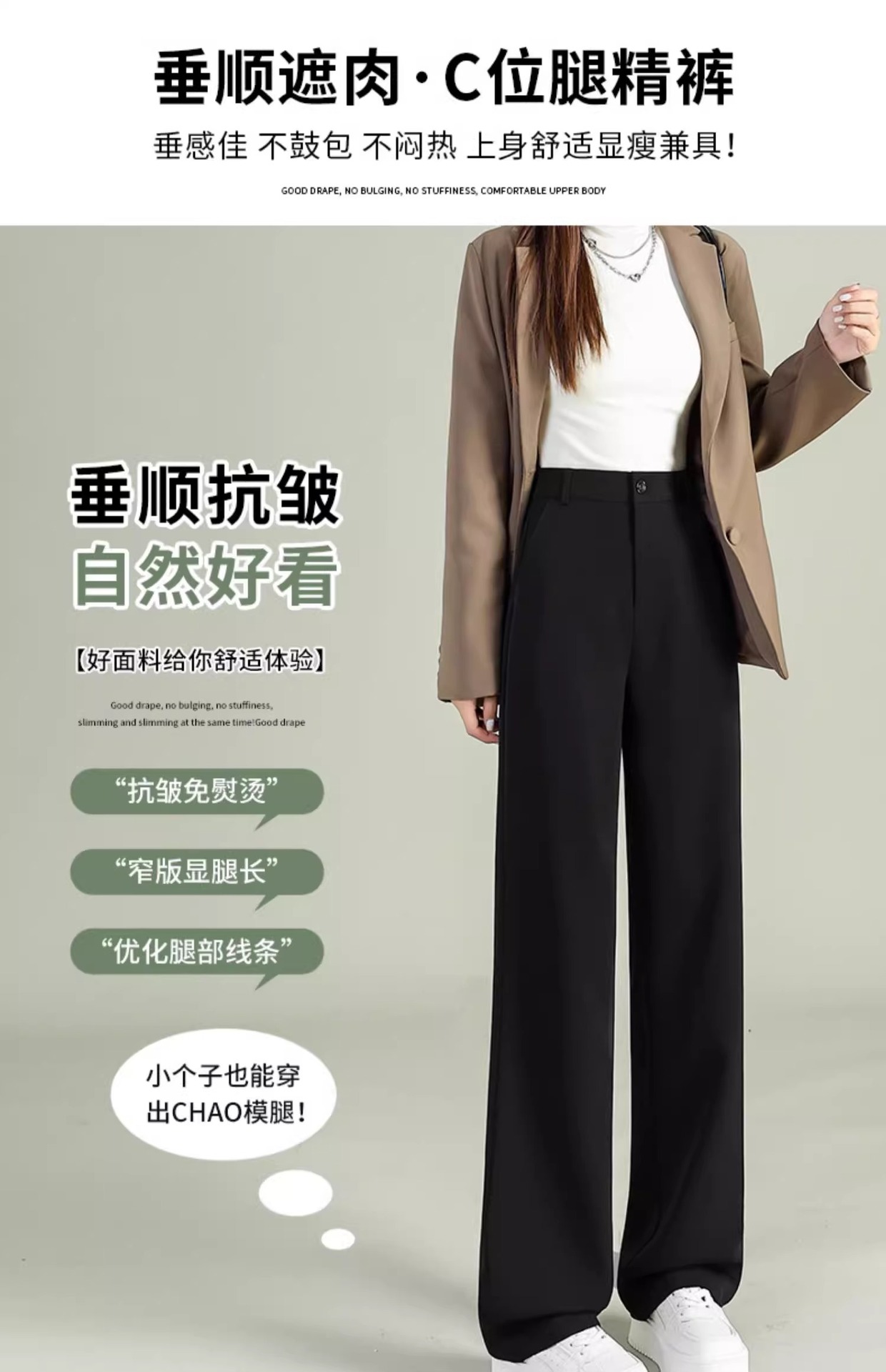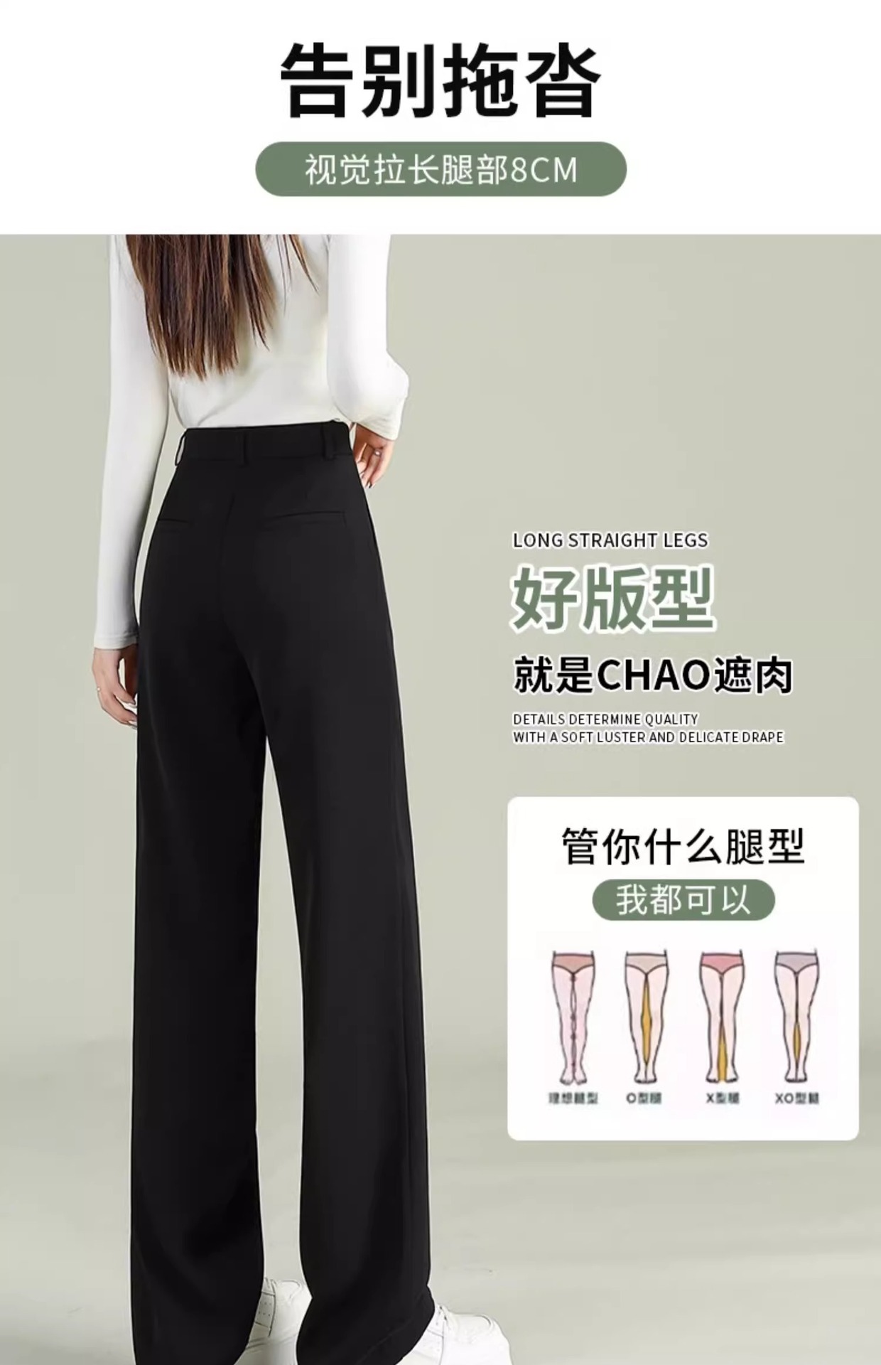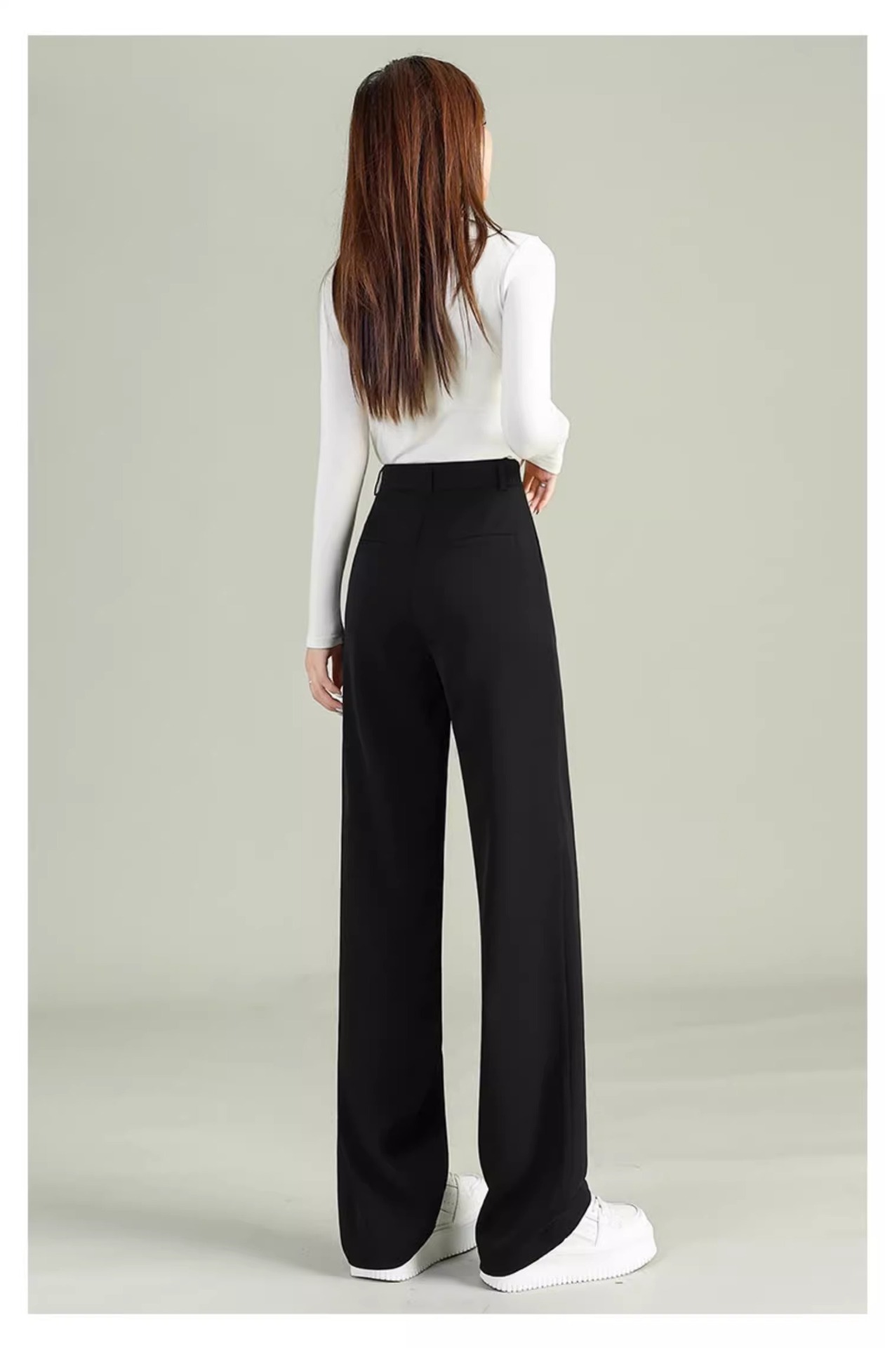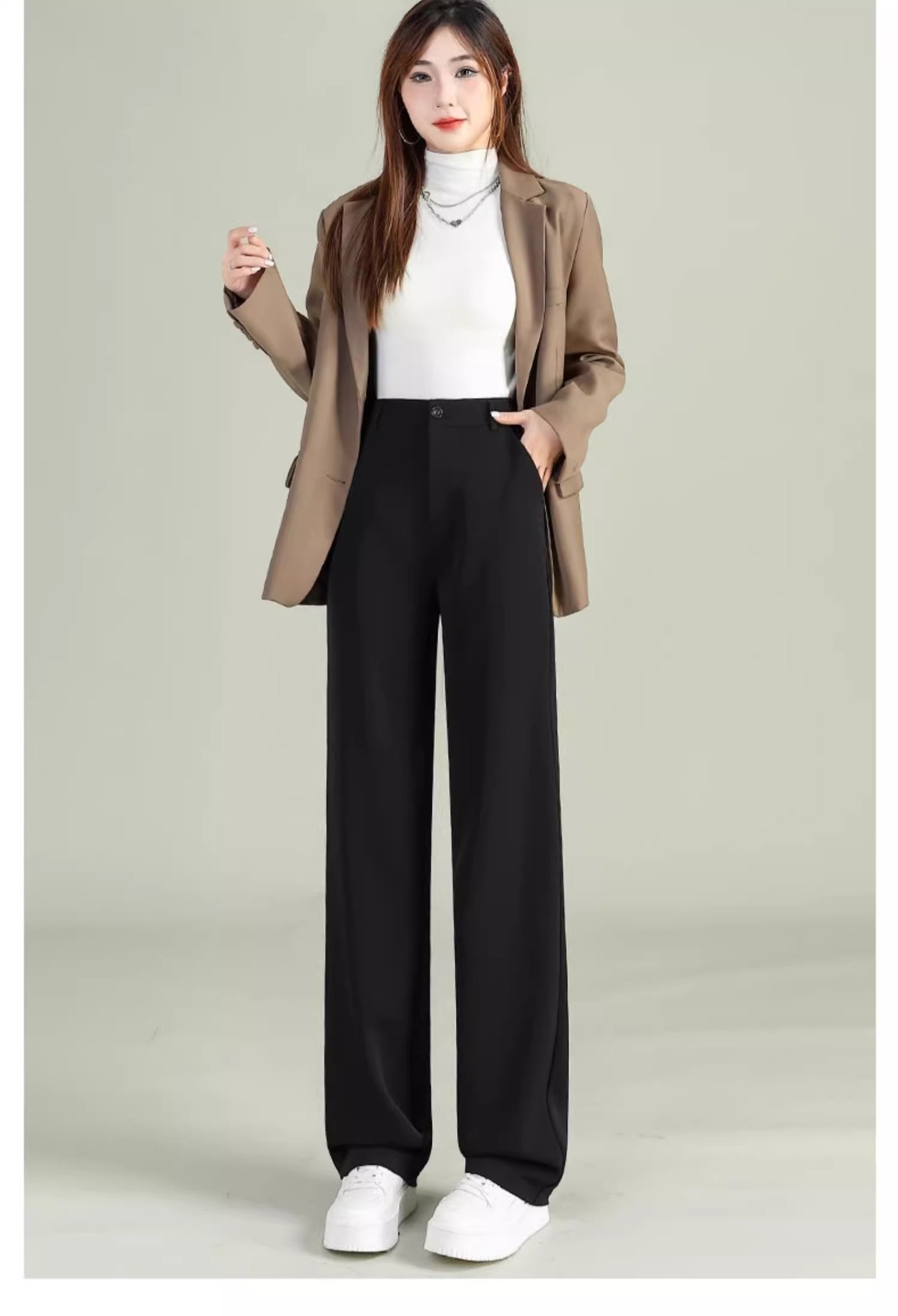 높은 허리 세트 바지 여자 봄 2025 새로운 좁은 검은 넓은 다리 바지 고급 스트레이트 캐주얼 바지스토어 가기