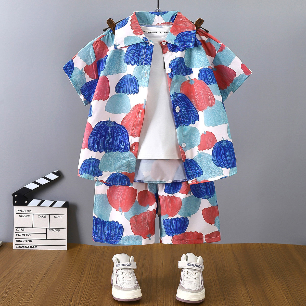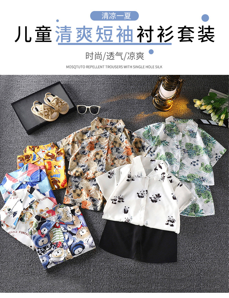 어린이 셔츠 세트 여름 새로운 2025 캐주얼 소년 짧은 소매 반바지 홍콩 스타일 옷 여름 아동복 도매