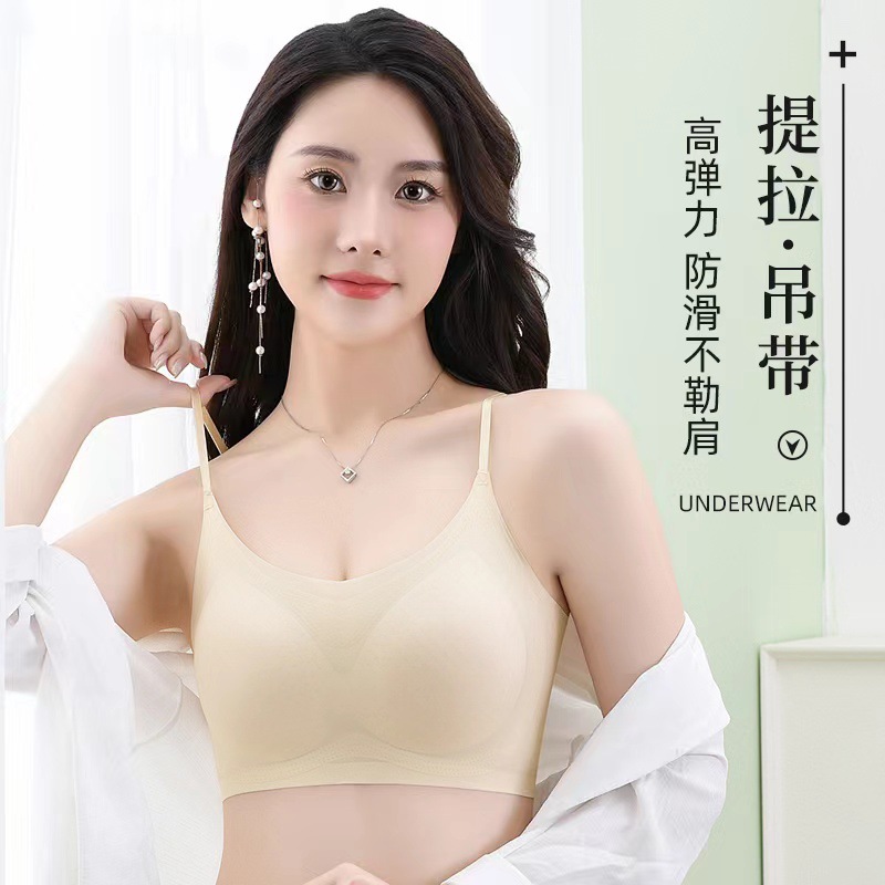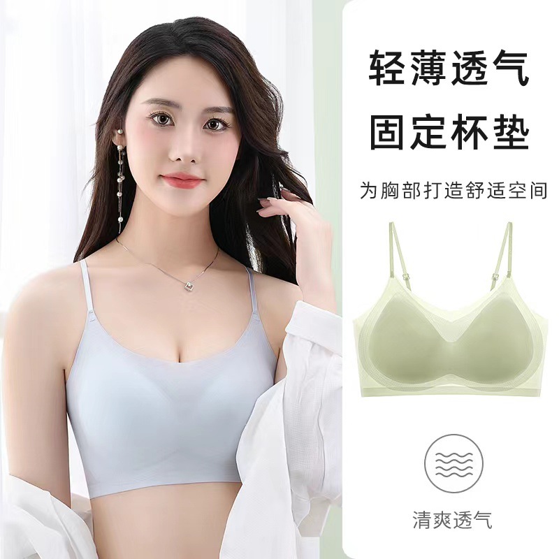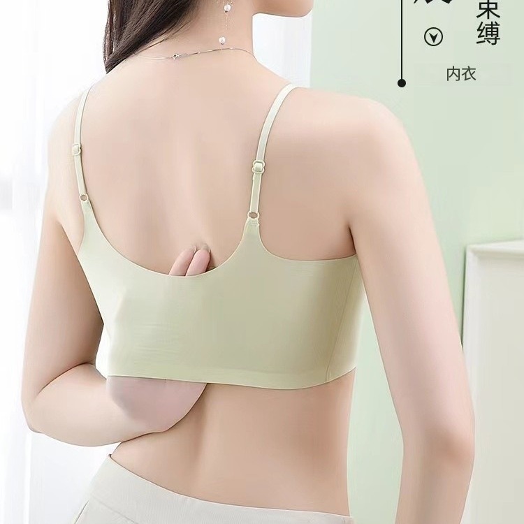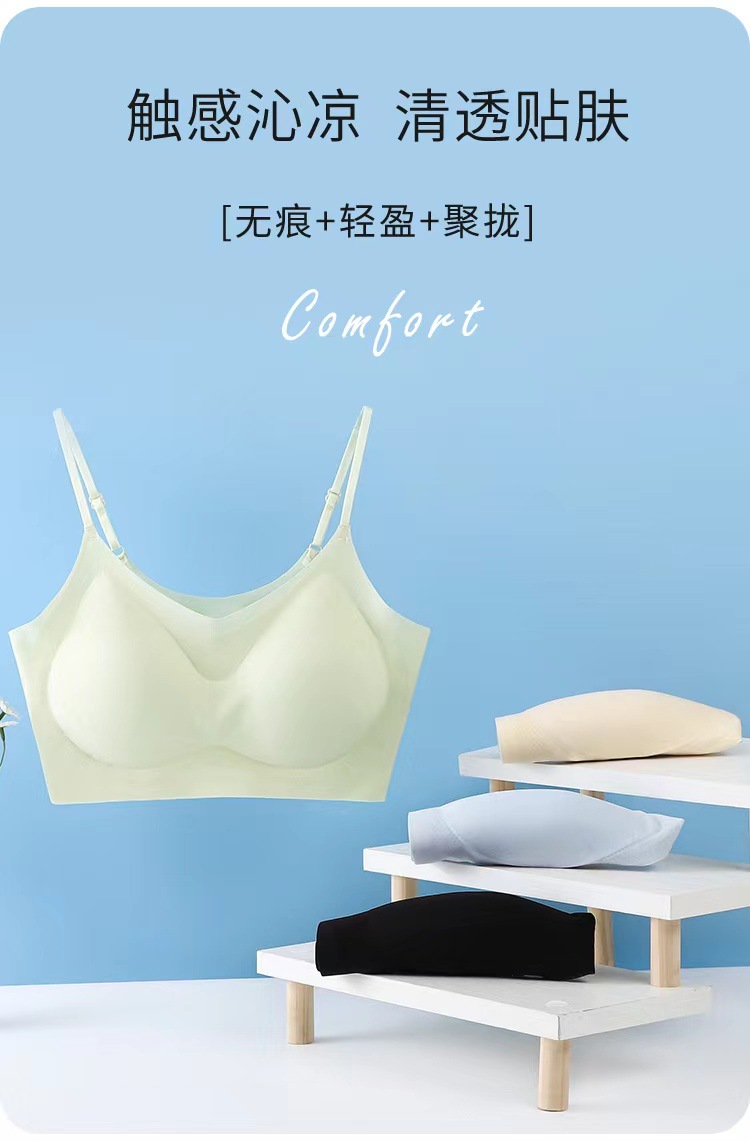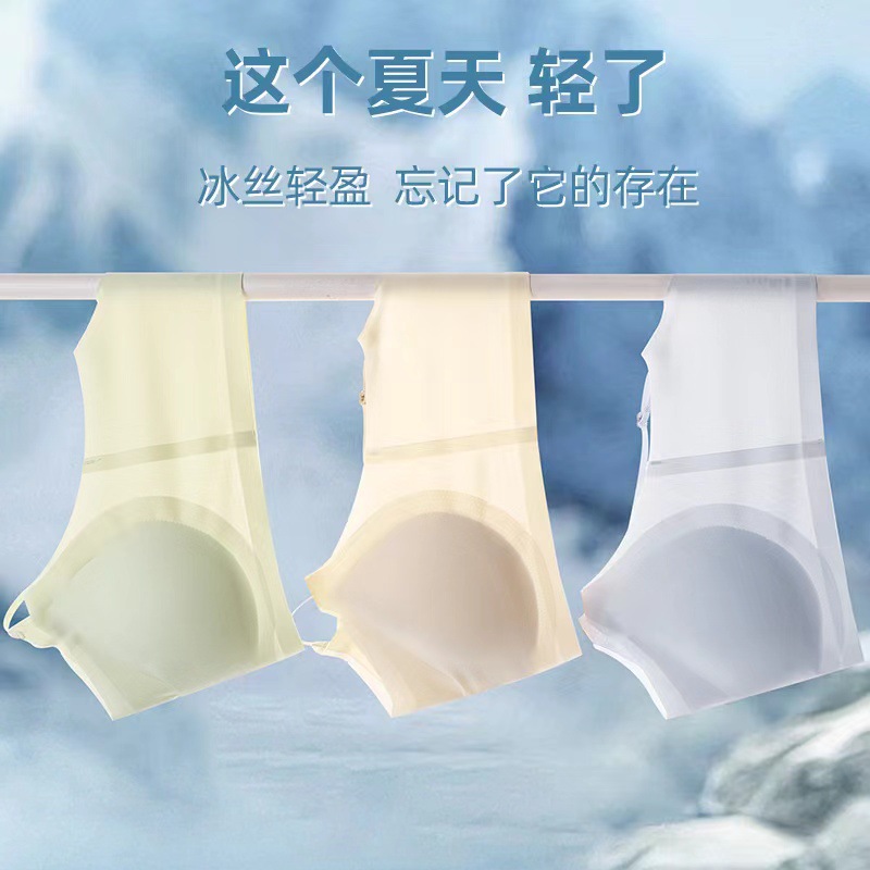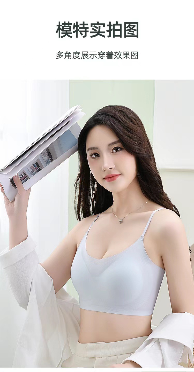 국경 간 추적없는 속옷 아이스 실크 아름다운 등 슬링 포장 가슴 조끼 탑 브라 여름 얇은 여성의 큰 가슴 빛나는스토어 가기