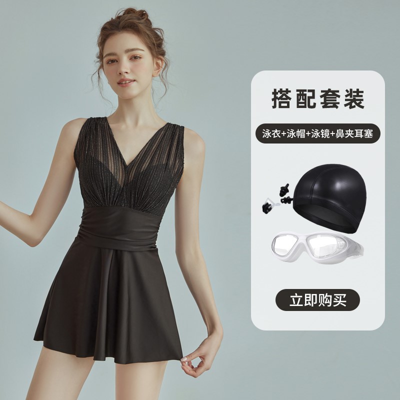• 기질 검정 + PU 모자 + 수영 고글 + 코 클립 귀마개