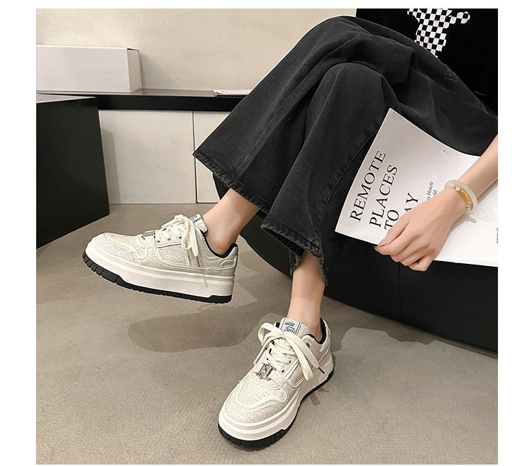 두꺼운 흰색 신발 여자 2025 새로운 여름 유행 올매치 틈새 높이 증가 캐주얼 스포츠 보드 신발 균열