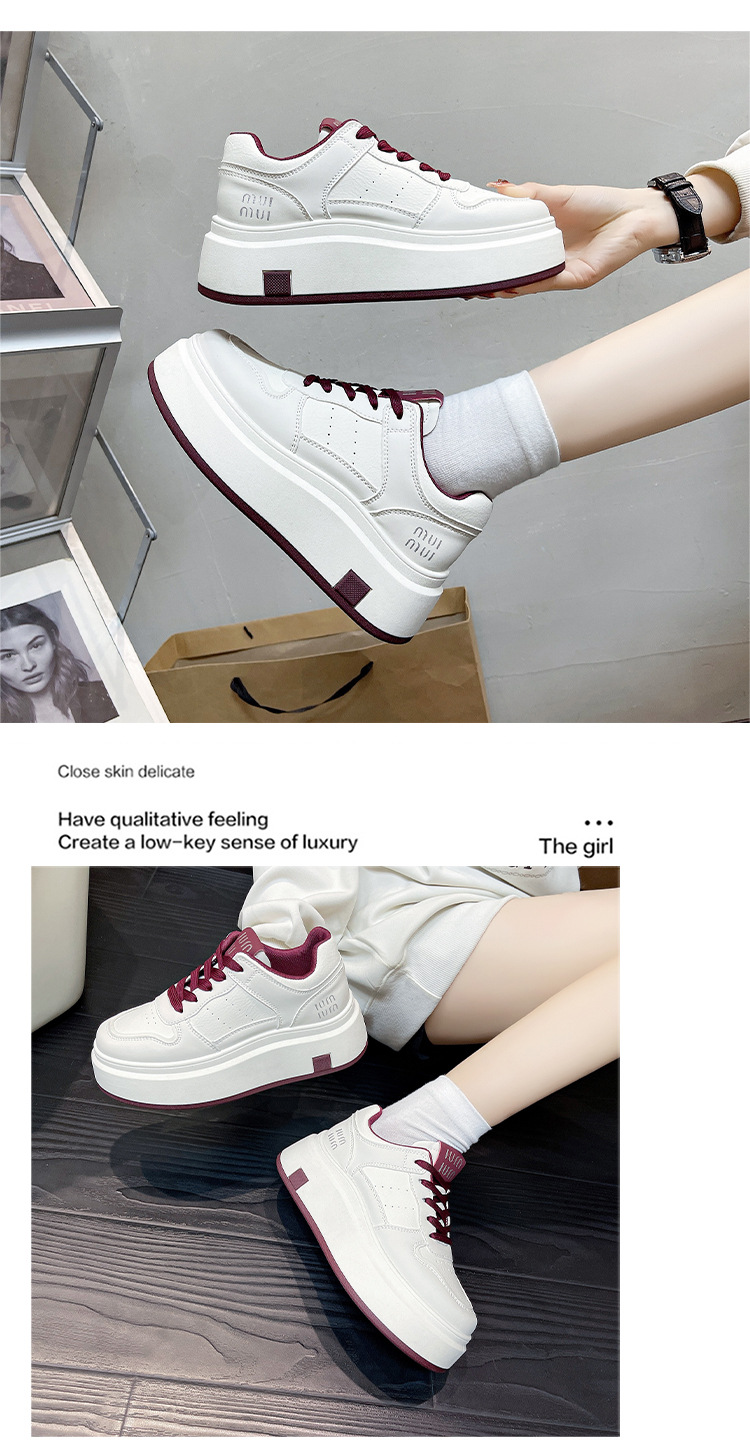 앙골라 붉은 두꺼운 단독 흰색 신발 여성의 가을 2024 새로운 올매치 두꺼운 유일한 발은 작은 레이스 업 캐주얼 신발을 보여줍니다스토어 가기