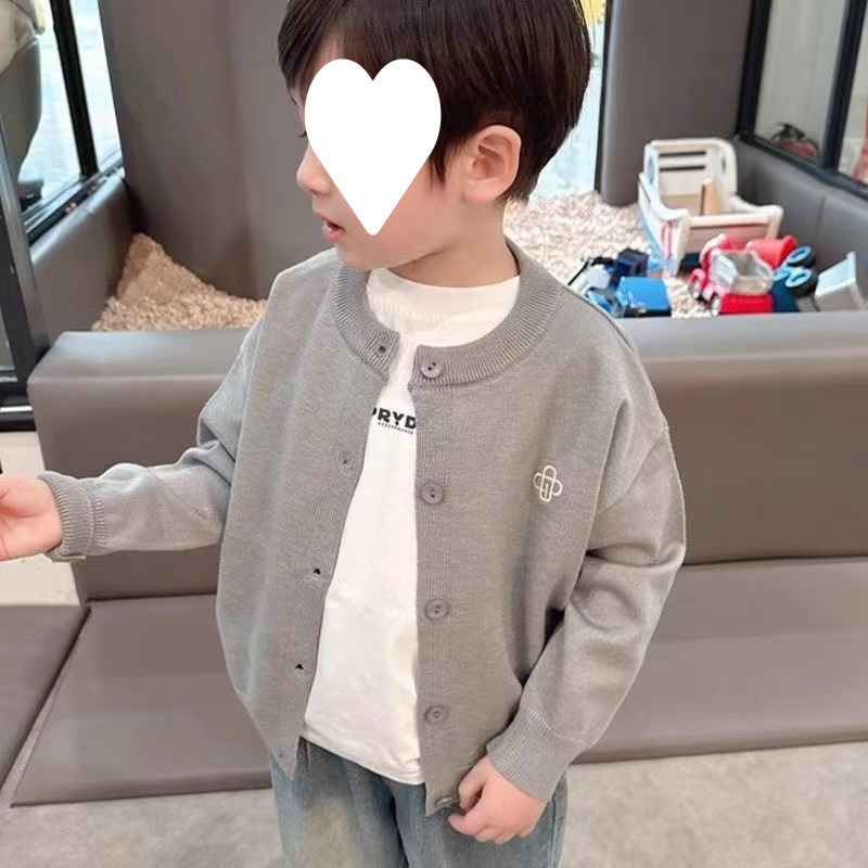 자이언트 소프트 왁스 소년 자수 니트 스웨터 2025 봄과 가을 새 봄과 가을 어린이 스웨터 카디건 재킷
