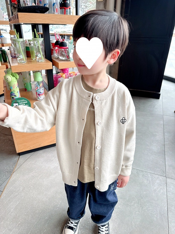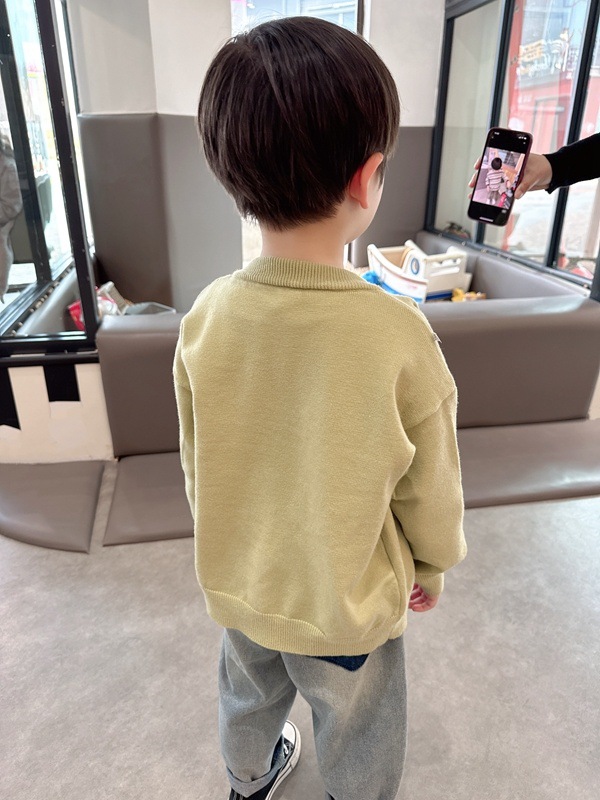 자이언트 소프트 왁스 소년 자수 니트 스웨터 2025 봄과 가을 새 봄과 가을 어린이 스웨터 카디건 재킷스토어 가기