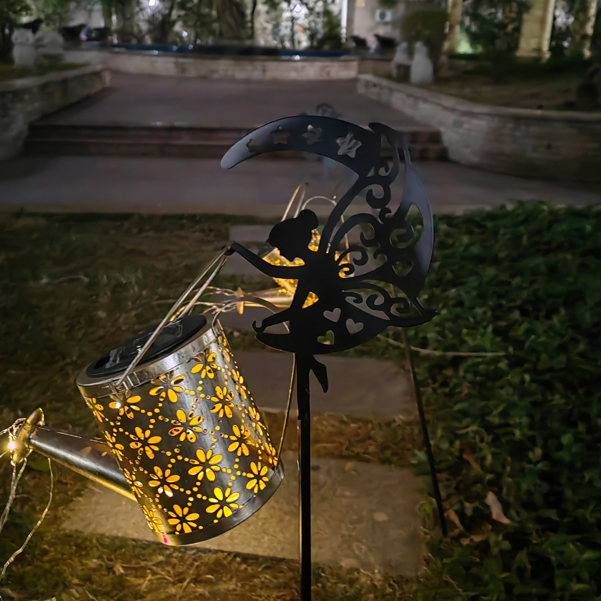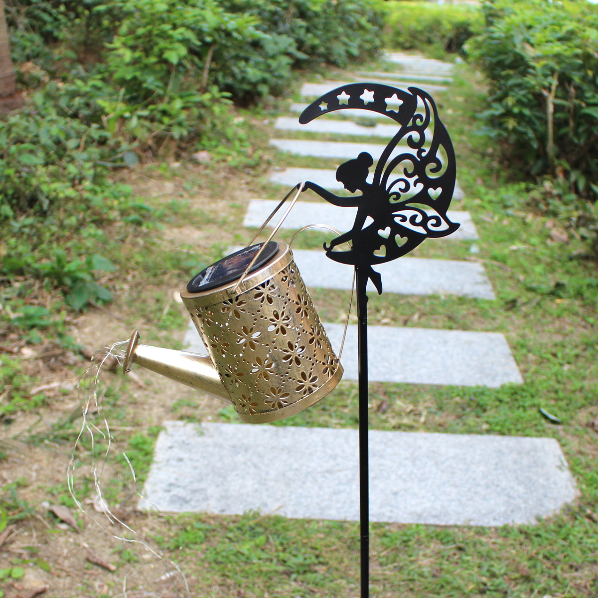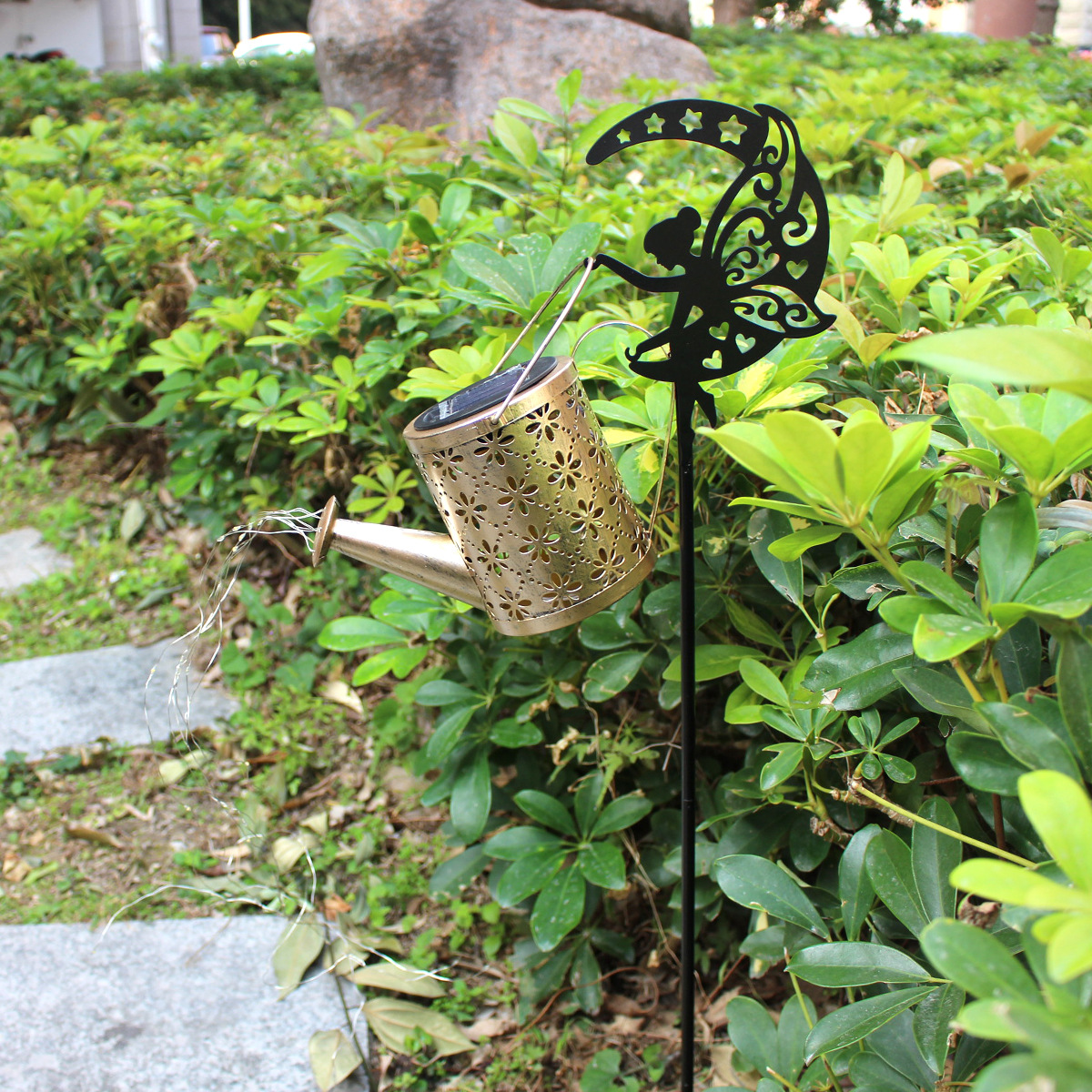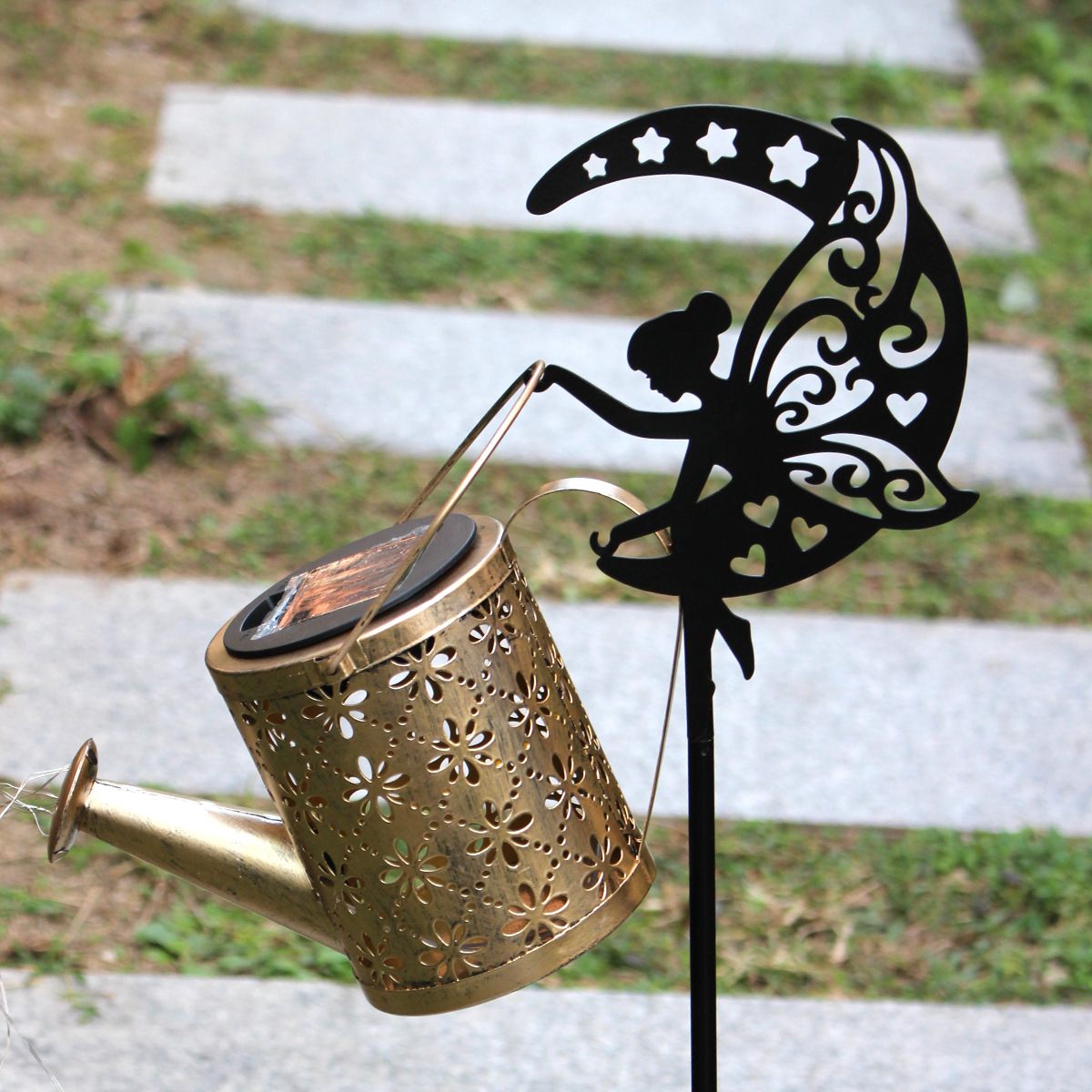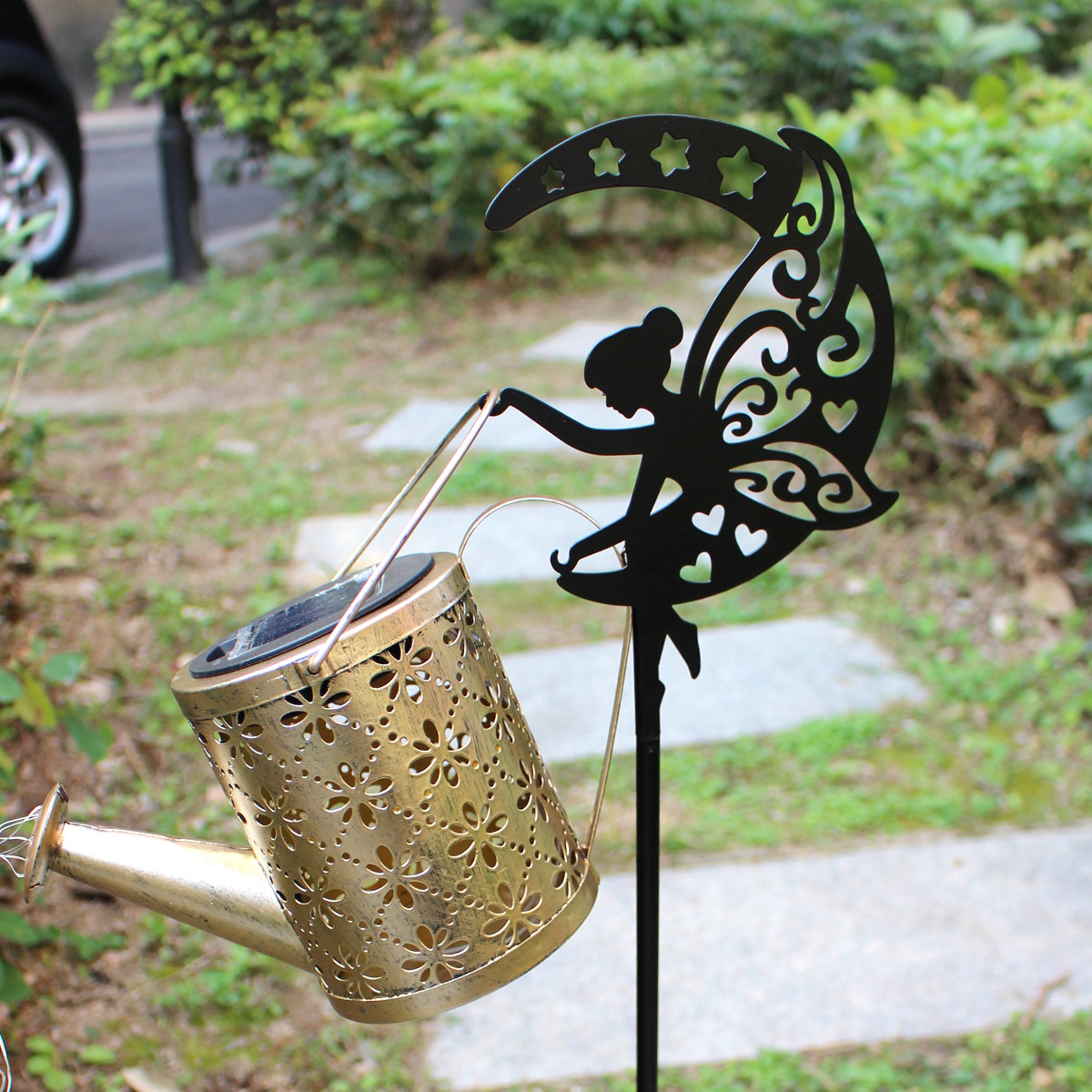 국경 새 달 꽃 요정 철 주전자 태양 광 야외 방수 정원 잔디 장식 조명스토어 가기