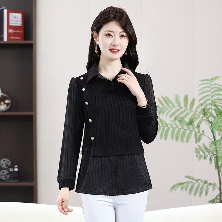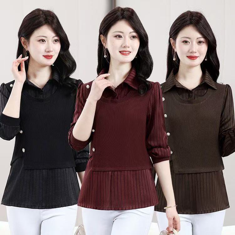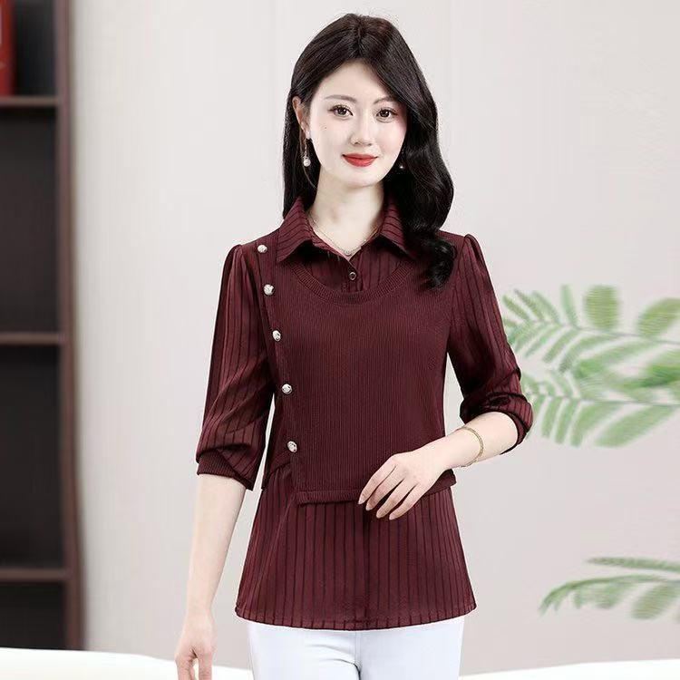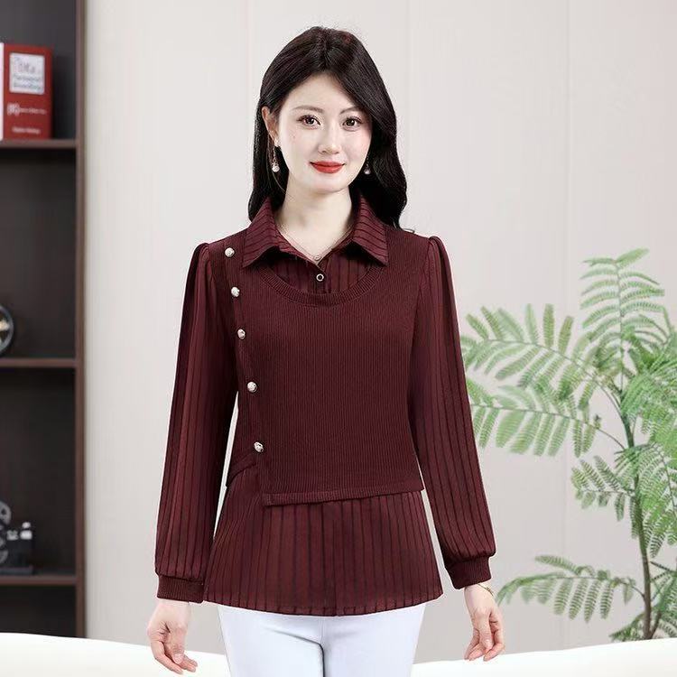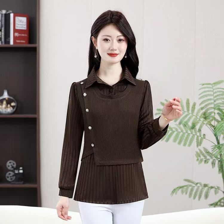 외국 스타일의 슬림 스트라이프 티셔츠 재킷 조수의 패션 가짜 2 개 2025 봄 새로운 디자인 감각스토어 가기