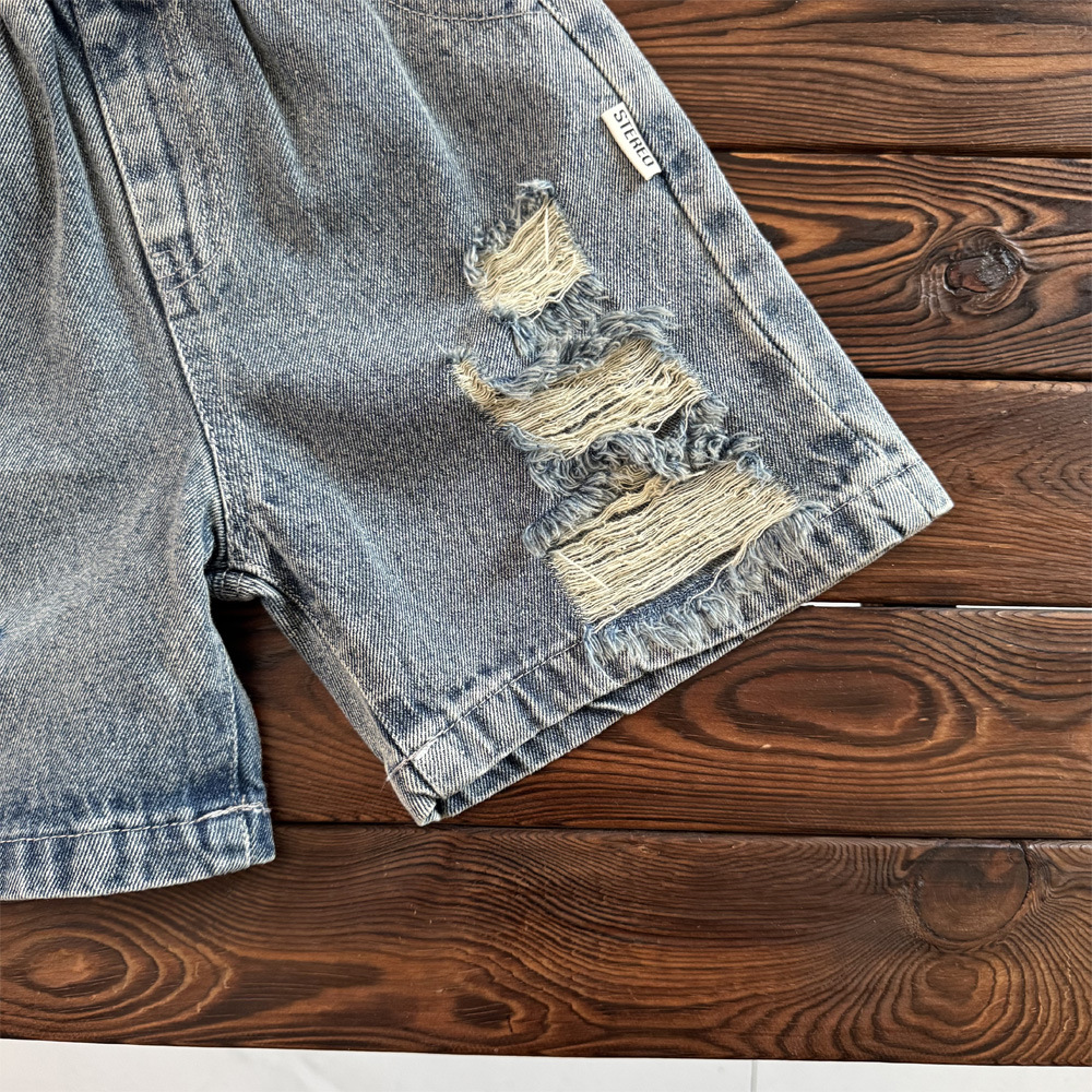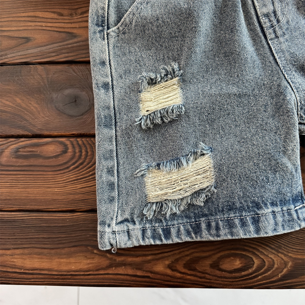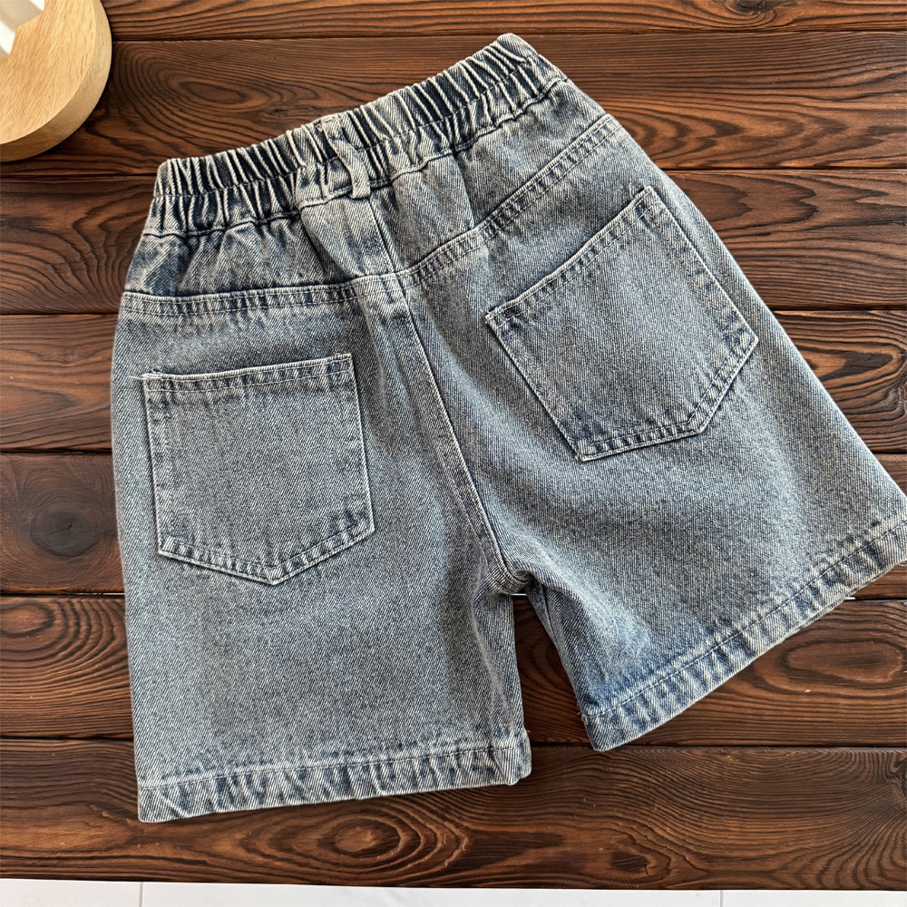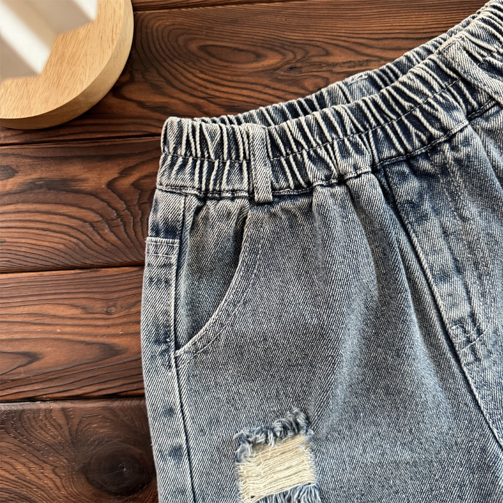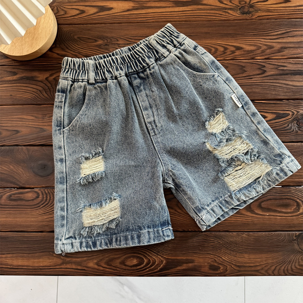 어린이 여름 데님 반바지 2025 소년 소녀를위한 새로운 도착 유행 올 매치 홀 반바지 한국 스타일 여름 반바지 트렌디스토어 가기