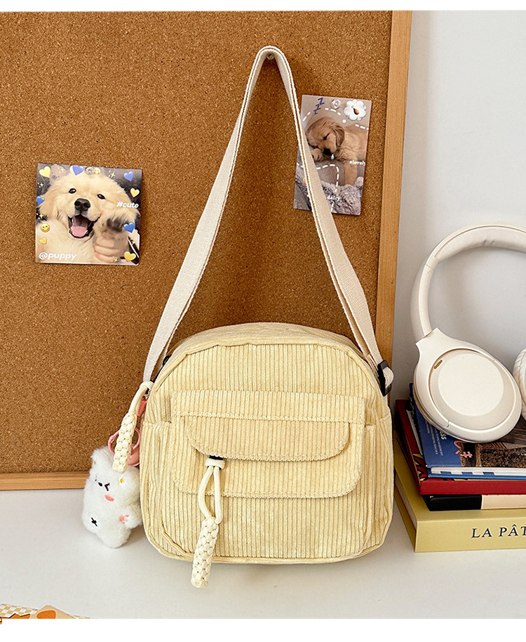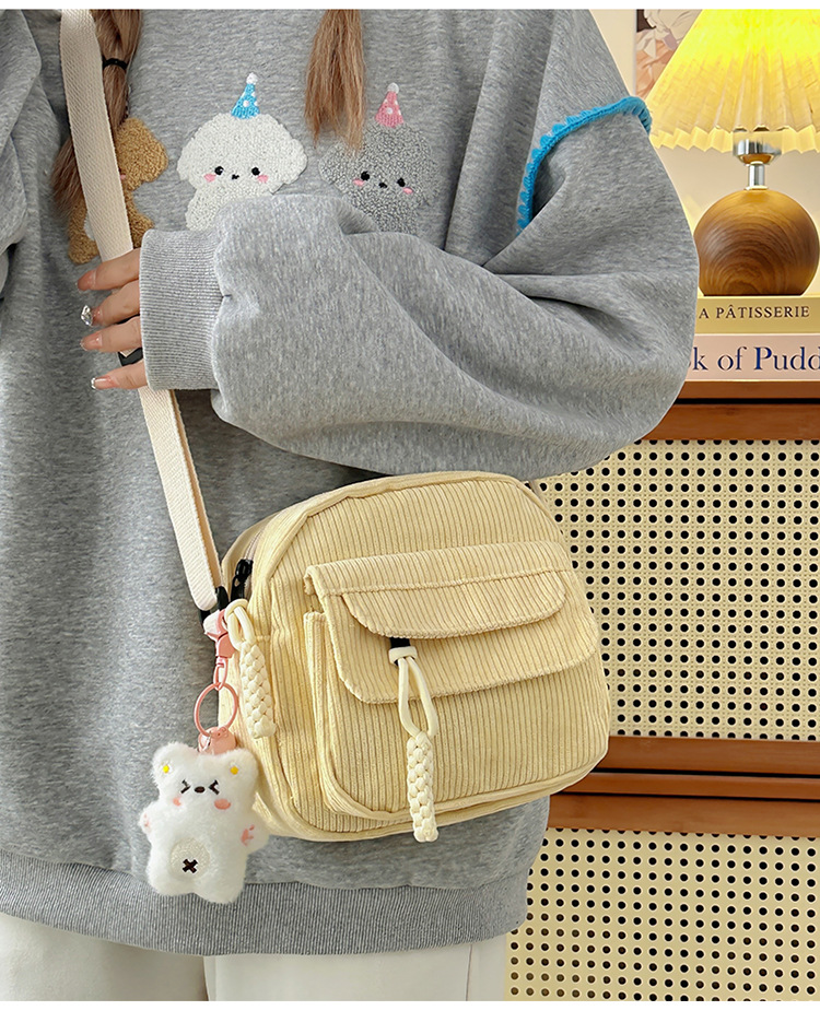 한국 스타일 Ins Corduroy 크로스 바디 백 솔리드 컬러 소녀 패션 캐주얼 어깨 가방 학생 통근 일본 스타일 작은 사첼