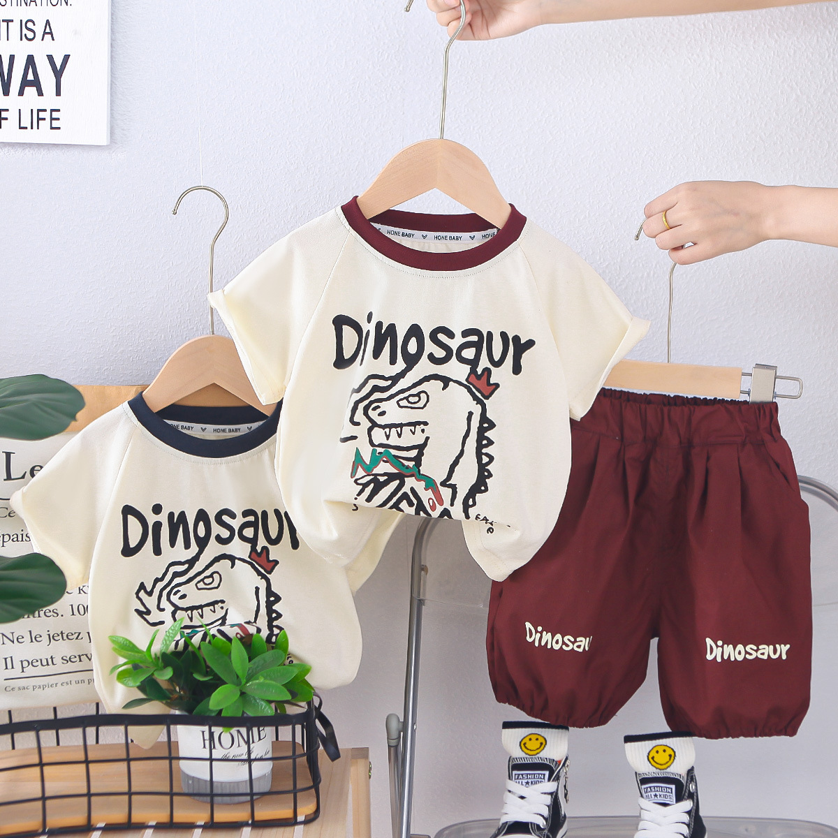 남자들의 여름 서양식 인터넷 인기 반팔 세트 2025 신여름 어린이 왕관 공룡 반팔 세트 유행스토어 가기